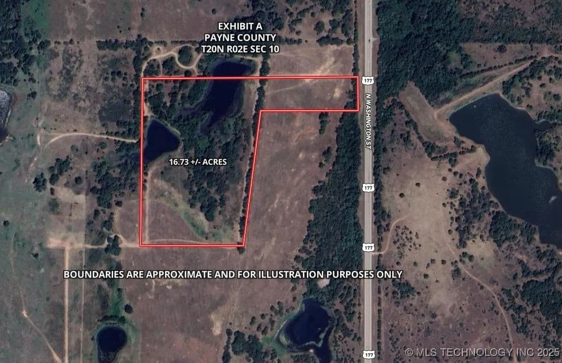 16.73 +/- ACRES WITH MULTIPLE PONDS IN STILLWATER – JUST 6.5 MILES TO OSU AND 7 MILES TO ESKIMO JOE’S, WALMART, CHICK-FIL-A, AND MORE! This property is a great fit for OSU professors, administrators, or students looking to build a forever home or income-producing rental. Whether you’re planning a farmhouse, a modern build, or a weekend cabin, the open space, mature trees, and natural landscape give you the room and setting to do it. Two ponds add real value and flexibility to the land. Whether you're into fishing, livestock, or just want water access on your own property, these established ponds give you built-in water sources—ideal for livestock, fishing, or wildlife. The layout offers a strong setup for small-scale ag operations, hobby farming, or recreational use. Whether you're running cattle, setting up food plots, or building out rental cabins, the groundwork is here. The property has direct road frontage on US-177, just 2 miles to the Cimarron Turnpike, under 5 miles to US-64, 7 miles to US-412, 8 miles to HWY 51, and 14 miles to I-35. That means easy access for equipment, materials, or tenants. You’re also close to Boomer Lake (4.5 miles), Lake McMurtry (8 miles), and Carl Blackwell Lake (9 miles), making this land a great base for hunting, fishing, or weekend use. Positioned between OKC (51 miles) and Tulsa (60 miles), making it easy to tap into both markets for work, services, or entertainment. This property is in a growing area with long-term potential. Whether you're building for yourself or investing with an eye on future growth, this land checks all the boxes. Call today to schedule your showing! Additional land available. Agent is partial owner. Buyer’s agents welcome!