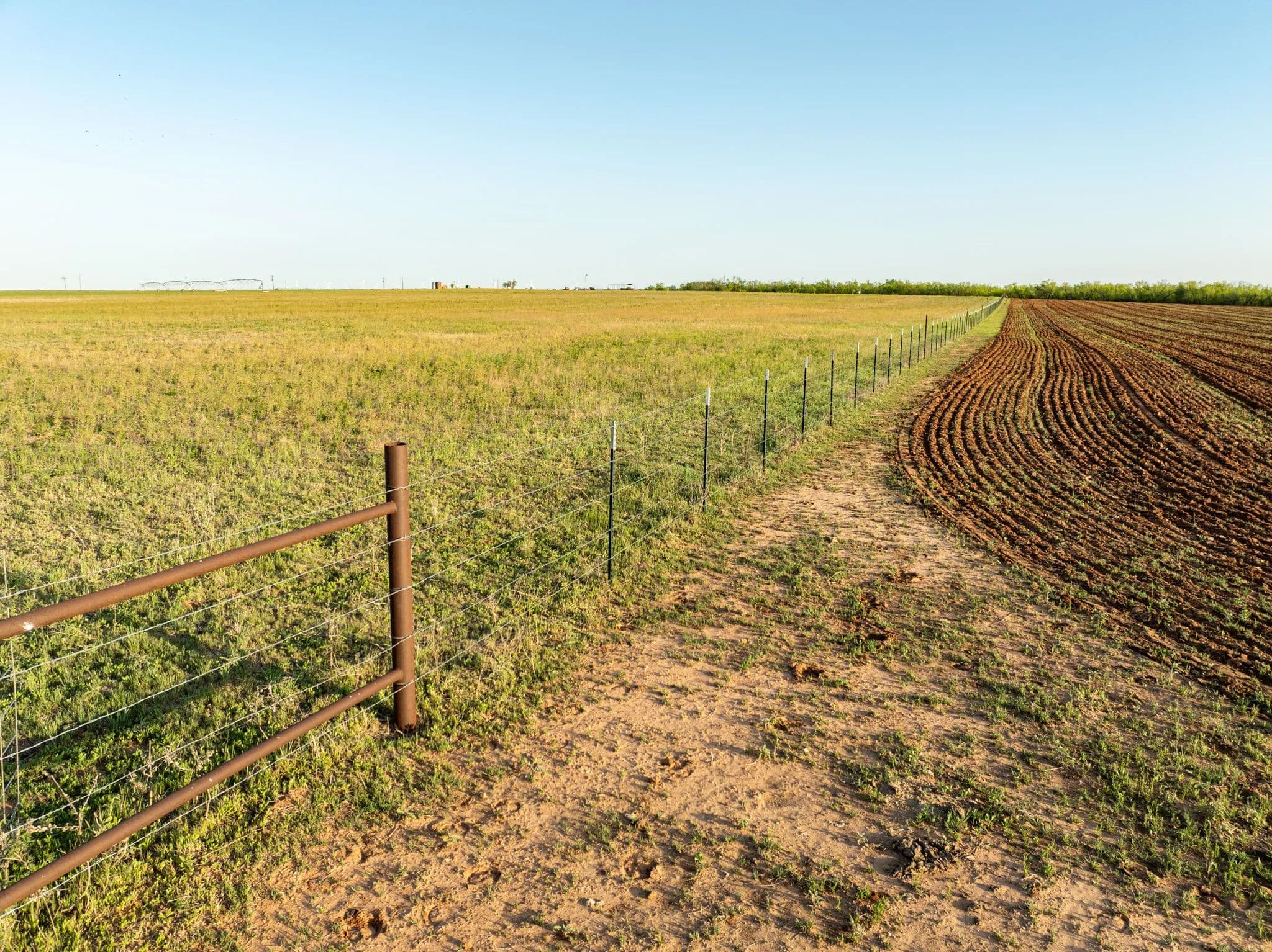 This Property has 5 strand barb wire fences around the entire perimeter that are in good condition.