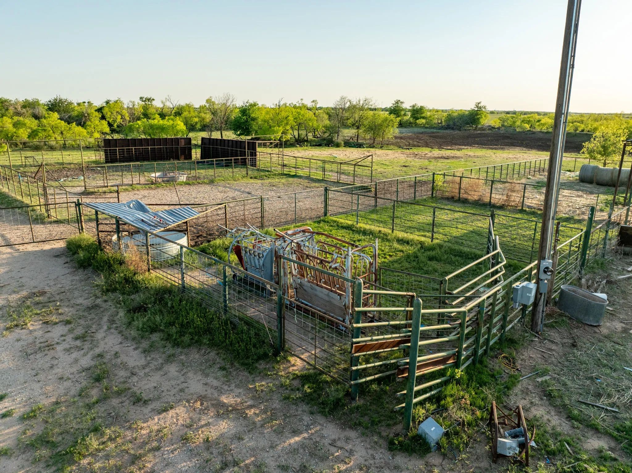 A good set of pens that can be used for sorting or working calves, a load out chute, squeeze chute and water troughs inside these pens.