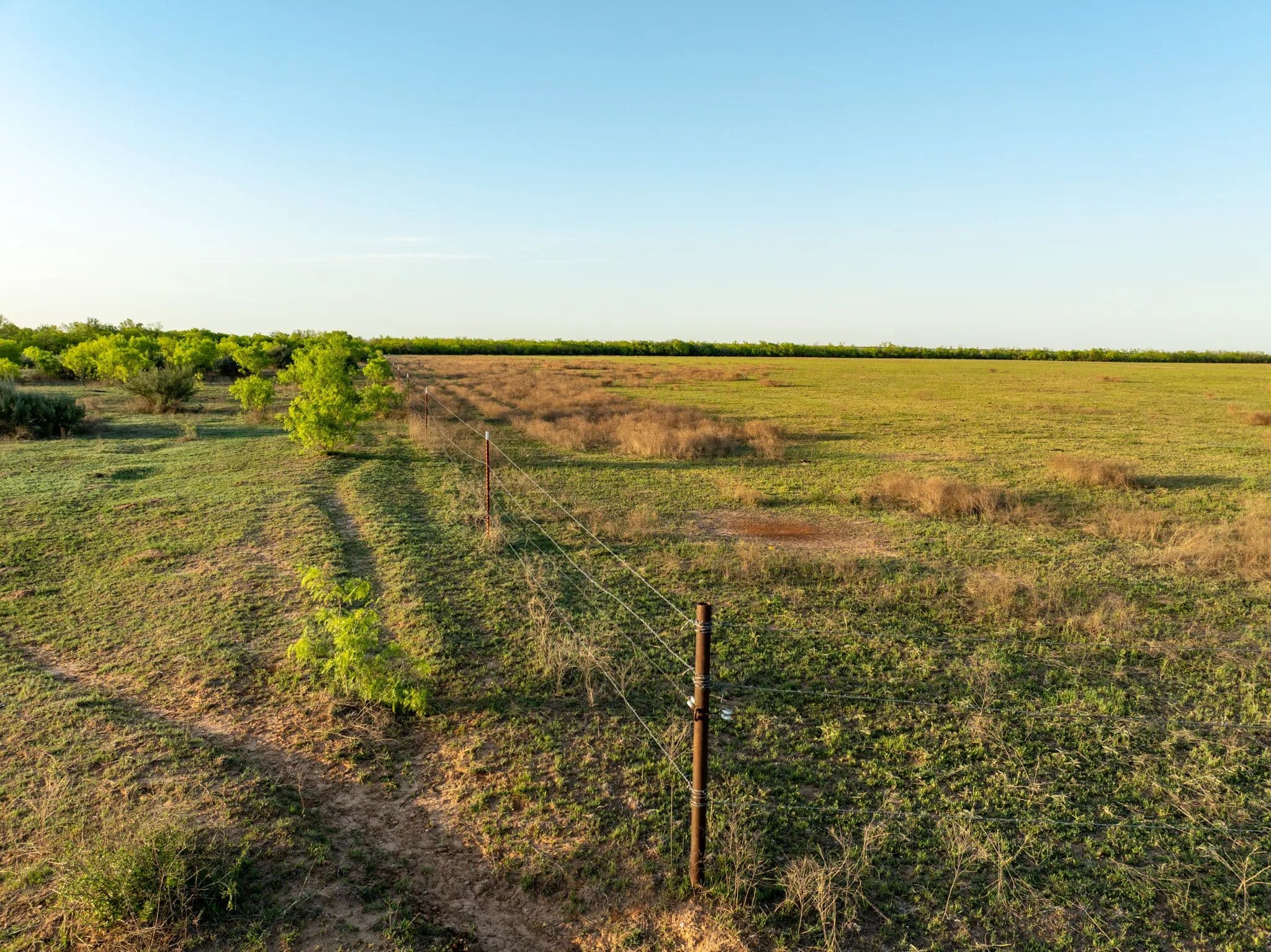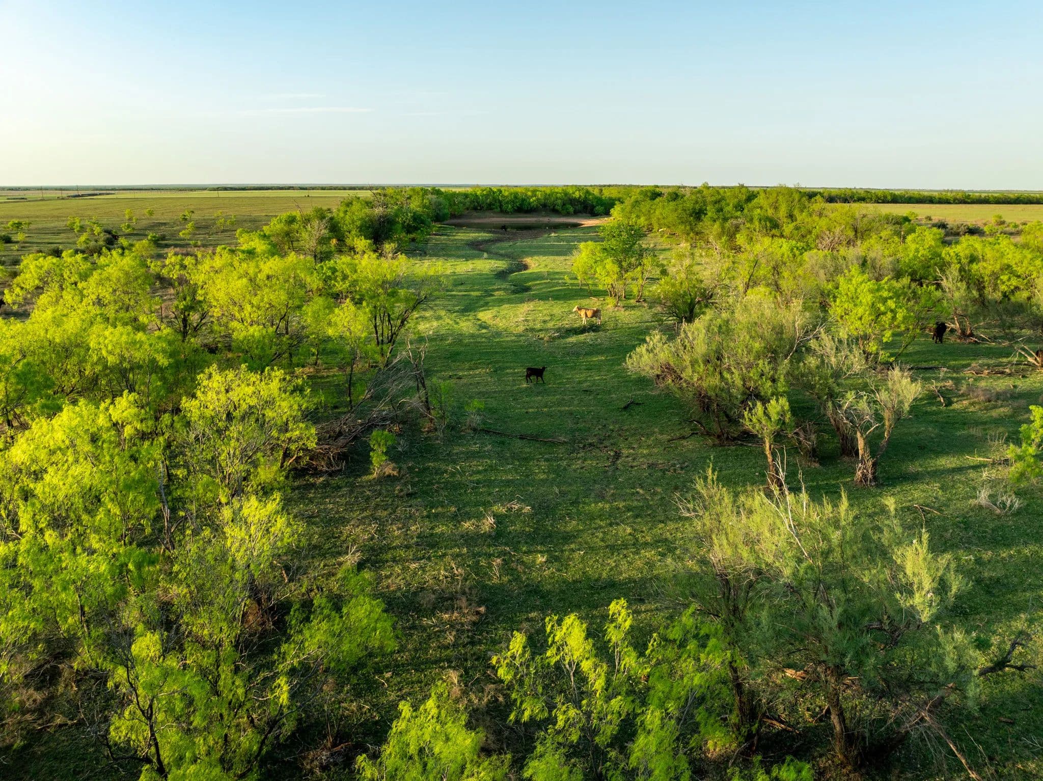 The native trees and Shrubs you can see in the pastures are Bull mesquites, Soap berry trees, Hackberry trees, Lote bush and a few willow trees along the creek.