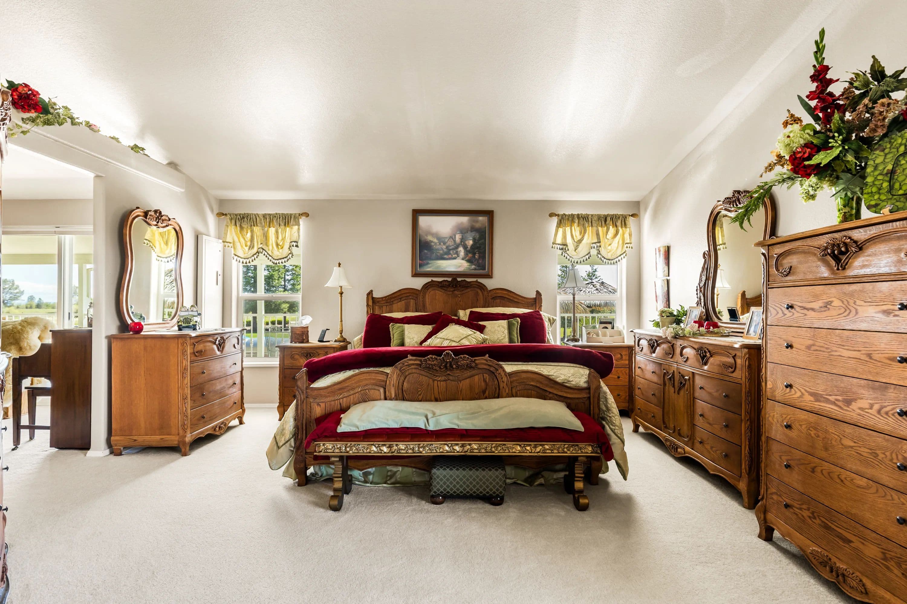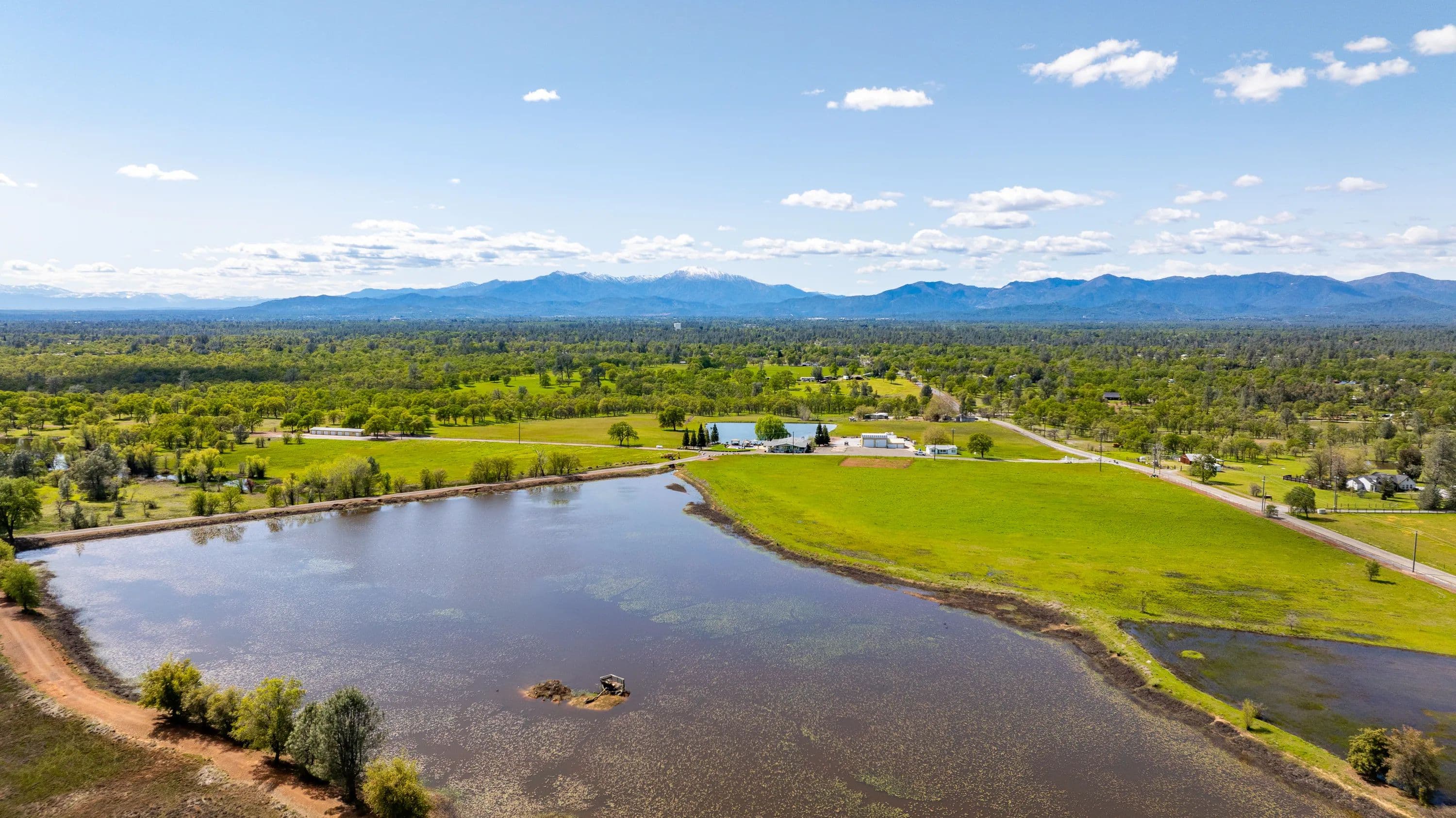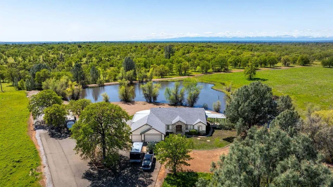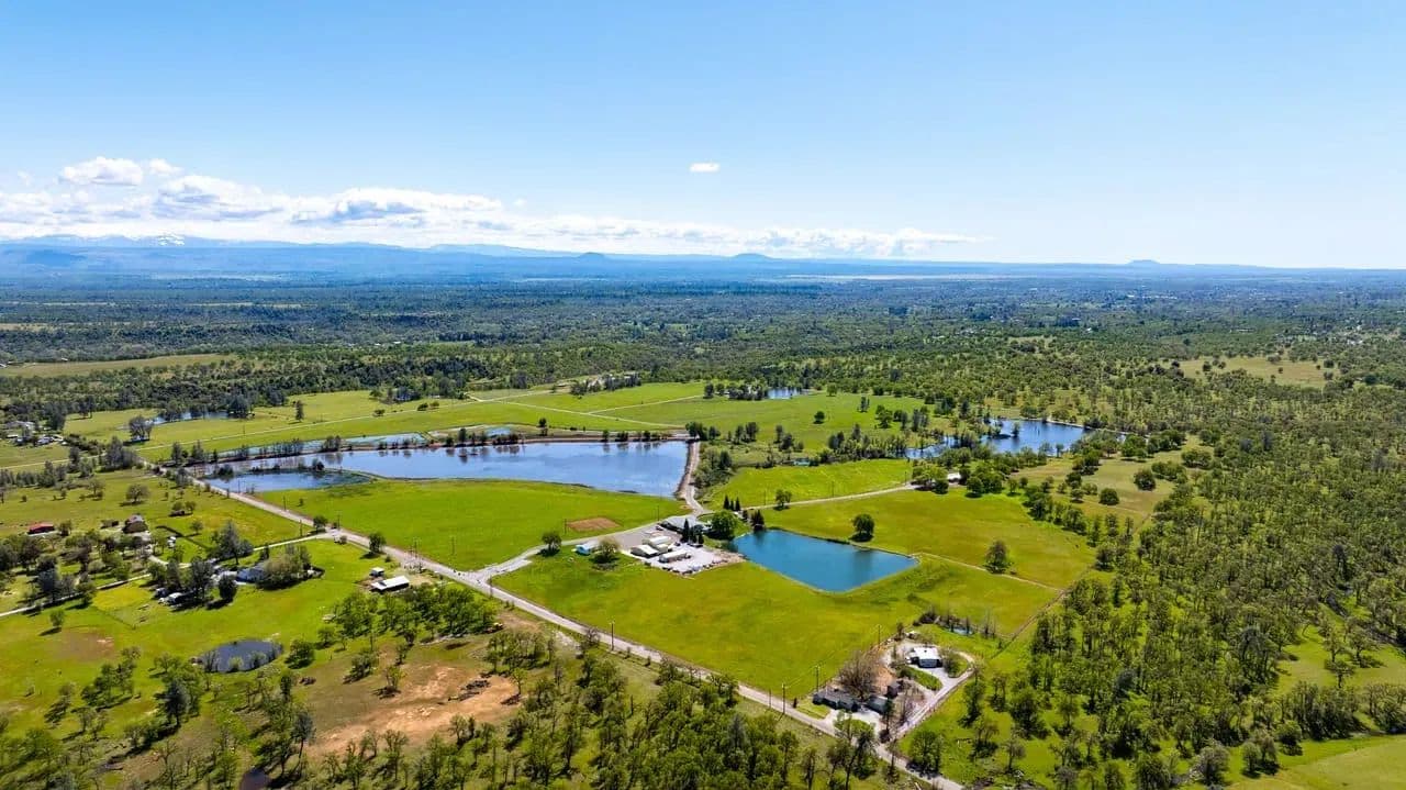Just ten minutes east of Redding, California, lies the 160-acre Seven Lakes Ranch in Shasta County – a true hunting and fishing paradise. The property’s landscape is characterized by its expanse of beautiful lakes that offer both a refreshing retreat during Redding’s warm summers and endless recreational opportunities. Seven Lakes Ranch offers a unique blend of remote privacy and convenient access to town. A defining feature of this ranch is its exceptional water resource, boasting four substantial lakes. This abundance of water affords excellent outdoor recreational opportunities such as hunting waterfowl and upland birds, bass fishing, horseback riding, paddleboarding, canoeing, and leisurely strolls, as well as providing irrigation for livestock or other uses. There is an underground irrigation infrastructure and two wells. There are three homes on the ranch offering a range of living options for friends/family or potential rental income. Escape to a serene paradise with the main 2,595 SF three-bedroom, two bathroom manufactured home with a wrap-around covered deck overlooking one of the lakes. The entirety of the home from the bedrooms, kitchen, living/dining room, and bathrooms are filled with natural light throughout. There is a large kitchen with an island, gas range, and all the necessary household kitchen appliances. The primary bathroom features a sunken tub, shower, and dual sinks. The additional homes are a custom-built 1,994 SF three-bedroom, two-bathroom home that also enjoys a lake view and a 1,023 SF two-bedroom, one-bathroom home. The landscaping and custom-built-in pool at Seven Lakes Ranch are a dream. With a sunken wet bar with in-pool bar stools, fountain, multiple gazebos, outdoor shower, and complete outdoor kitchen with built-in grill, it’s ideal space for entertaining family and friends. The property is easily accessible with paved roads throughout. There are multiple garages with RV roll-up doors, barns, shop, and an owned solar system. A ranch with plenty of space for ranch equipment, recreational toys, tools, and vehicles. Come discover the pristine natural beauty of Seven Lakes Ranch!