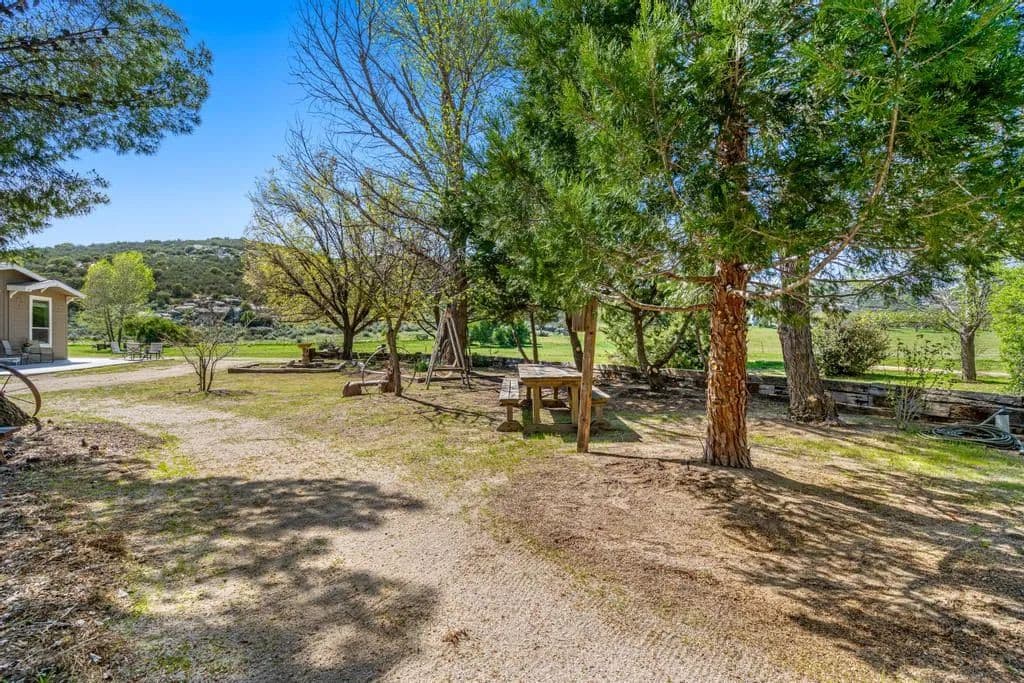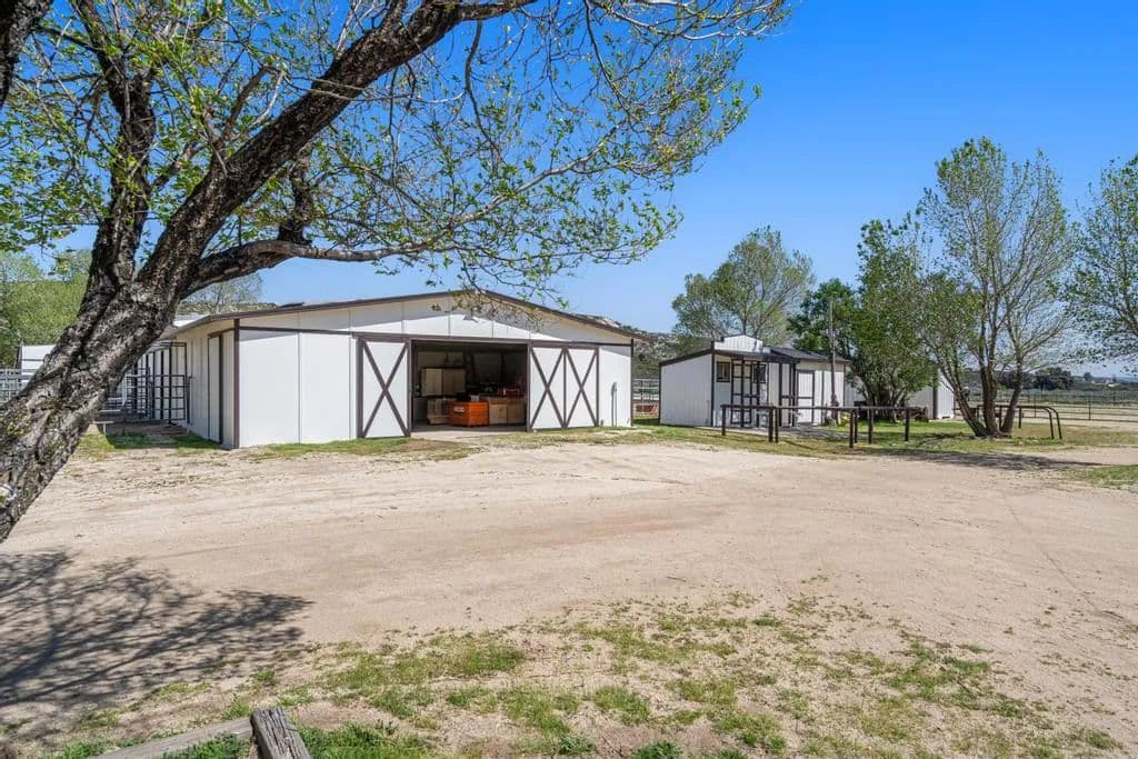 CW Ranch is fully fenced and cross-fenced, with meandering walking paths, and shaded nooks that invite relaxation. A seasonal creek winds through the landscape, while mature trees and abundant wildlife—including quail and deer—create a peaceful, park-like setting. The property is ideal for horse lovers, with a 6-stall barn and an attached large workshop with dedicated 100A service, irrigated paddocks, working cattle pens, and two arenas. Newly painted outbuildings include a tack room, several multi-purpose sheds and two metal cargo containers providing ample space for storage.