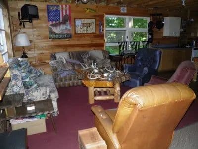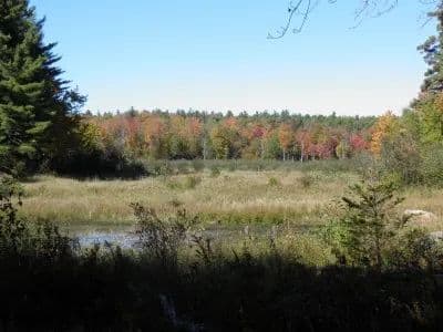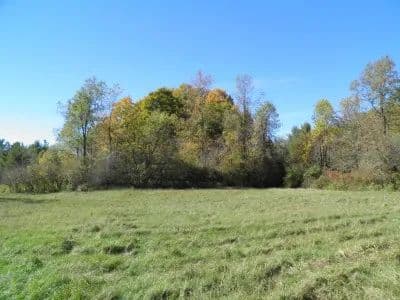 NYS Hunting Property with camp adjacent to Wolf Lake State Forest for Sale: The wood framed, seasonal hunting camp on this property was built in 1999 atop of treated power pole piers using full dimension, rough cut lumber. It is a sturdy, two story structure with ~1,426 sf of living space. Both levels have open floor plans. The exterior is sided with pine board and batten and the roofing is painted steel. The walls and roof are well insulated but the floor is not. A large porch allows family and friends to gather outdoors when the weather is fair to enjoy the sounds and sites of the hardwood forest that surrounds them. It is off the grid and in the woods. Propane gas lanterns provide light at night, however modern conveniences can be 'plugged in' as it is wired for a 120 volt generator. There is no water or septic and there is an outhouse. A roof rain water collection and storage system provides an ample amount of water for dishes, cleaning and showers during the camping or hunting season. Heat is provided by a local, Amish made wood stove. Vehicular access is from the seasonally maintained portion of the Ames Road, ~150 yards past the plow turn around location, through a gate and across a 1 acre field and food plot, where deer are commonly sighted.The property is mostly covered with hardwood forest. It was last harvested about 25 years ago. It is predominately in a pole stage of development, but hundreds of small and medium size sawtimber trees are scattered throughout the property. Major tree species include sugar and red maple, basswood, black cherry, red and white oak, elm, beech, ash, yellow and gray birch and hickory. A small, year ‘round stream flows diagonally across the property from northeast to southwest, through beaver ponds and meadows, on its journey to the Oswegatchie River. Granite ridges define the terrain and seem to present the biggest challenge to traversing the property by atv. I grew up hunting mostly deer, grouse and waterfowl in this region and have always been fascinated by the 'untamed' character of this area. Deer, bear, coyote, bobcat, turkey, grouse and snowshoe hare are all native to these woods and the annual deer hunt is usually successful.The bonus of owning this property is its proximity to the 4,316 acre Wolf Lake State Forest which virtually expands your recreational acreage by this amount. The State borders the parcel on the northern and western boundaries. Not only does it expand the owners hunting range, with 3 good size lakes (Huckleberry, Wolf and Moon) it offers some great hiking, snowshoeing, trapping, primitive camping and bass fishing opportunities. Another option for fishing and boating would be the Oswegatchie River which is visible south of the Ames Road near the property’s entrance. The mineral talc was first discovered in this area in the 1870's and two or three exploratory pits, a mine shaft and portion of a quarry can be found on the property just west of the driveway to the camp. As a precaution to unknowing parties that may be inspecting the property, the mine shaft has been identified with orange flagging. The owner currently owns and pays property taxes on the mineral rights for the larger parcel (148.4 acres) and the current holder of those rights on the smaller parcel (21.4 acres) is unknown. It may take the average hunter or outdoor enthusiast a lifetime to explore all the back country available to them from this location…but can you imagine the stories they would tell and how much fun it would be?