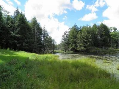 New York wooded land with turn-key off grid cabin, outbuildings, stream, trails, pond and adjoins NY State Forest for Sale. The ‘Pine Cone Lodge’ property, with its white marble stone driveway bordered by a cedar split rail fence, bountiful fruit orchard and vegetable garden, adjacent to the well-maintained and neatly landscaped main cabin, garage and guest cabin, initially struck me as a modern-day version of an Adirondack Great Camp. This 119-acre property and the 1,732 square foot, off-grid home (built in 2009) was originally intended to serve as a seasonal recreational/hunting camp for the Christopher’s family and friends. As the years passed and improvements continued, they decided to make this ‘oasis in the woods’ their three-season home.The one story, 3-bedroom, 2 bath, main cabin and 3-bay garage were constructed using 2” x 6” framing lumber with fiberglass insulation and exterior log siding, resulting in the cabin style look they desired with a higher insulating value. The major source of heat is the woodstove located in the open concept design great room. A propane wall mounted heater is a reliable backup when only a slight chill is in the air. Propane is used for refrigeration, hot water, clothes drying, cooking and backup power generation. In addition, propane wall lamps are located in every room. A 15-kilowatt solar system, with State-of-the-Art controls, provides more than enough power to meet current electric needs. A 385’ deep well provides cold, crystal clear water, not requiring any form of treatment. The open, covered, front porch and partially shaded rear deck with barbecue, are handy for entertaining friends and family. Interior finishes are a combination of hardwood and ceramic floors, tongue and groove pine cathedral ceiling in the great room and painted sheetrock walls and ceilings throughout the remainder of the interior. This cabin is being sold fully furnished with the existing furniture and appliances (except for one bedroom set in bedroom two). The 288 square foot guest cabin with loft features solid log construction. It is fully wired for electric, has no plumbing or heat, and the interior is partially finished. The owners plan to continue working on the cabin interior. All of the machinery and implements required to maintain the property is included with the sale and conveniently stored in a 3-bay, 1,200 square foot utility and storage building found within sight of the cabin. This includes all of the equipment to cultivate food plots used to attract additional wildlife. A description of this equipment is found under ‘Machinery & Accessories’ in this listing. Pictures of these items are available upon request. The property was previously a sugar bush and is completely wooded except for a few beaver meadows along Kimball Creek where many wonders of nature are witnessed from a screened-in gazebo. It is a popular gathering place for family and friends to play cards, visit and barbecue. A timber harvest was conducted about 15 years ago by the previous owner which removed the majority of the mature timber. The predominant species found on the property include: sugar and red maple, black cherry, yellow birch, white ash, beech and hemlock. Most of the residual trees present are in the sapling, pole and small sawtimber size classes and appear to be doing well. Many of the skid trails created during the harvest are in great shape and make excellent x-country skiing, snow-shoeing, snowmobiling, hunting, hiking and ATV trails. This property is very productive for big game hunting. Seven food plots were developed across the parcel as a result of the owner’s appreciation for deer hunting, especially by bow. Forage crops planted include; clover, chicory, soybean, burnet and brassica. Based on the abundance of both native and planted food resources, water, cover, and physical evidence, whitetail deer, black bear, snowshoe rabbit, ruffed grouse, turkey, fisher, bobcats, coyotes and a mixed bag of waterfowl either live on or frequent the property. Family and friends that hunt venture to the back side of the property adjacent to State land and ‘rough it’ in the small hunting camp located there. Access to the property is via Powerline Drive, a private deeded R-O-W, approximately .7 miles in length from the French Settlement Road. A neighboring year ‘round resident currently plows this portion of the road, as well as the owner’s driveway during the winter months. The 20,412-acre Jadwin Memorial State Forest borders the property on the western boundary along Kimball Creek, greatly expanding the recreational area available to the owner. Kimball is a year ‘round trout stream which flows through the southwestern portion of the property. The owner installed a bridge to cross the stream in that area for ease of access to the State land. Access to both snowmobile and ATV trails is just minutes away. The French Settlement Road is open to both ATV and Snowmobile traffic. Last but not least, the owners prepare for their winter sport of Shuffleboard on their own personal court, complete with pergolas, located behind the car garage. This uniquely private, off-grid homestead offers all the amenities needed for new owners to remotely work and play on the same property, or possibly just enjoy a ‘living off the land’ sustainable lifestyle. It would be an ideal property for a family or group that are captivated by nature and have been searching for the perfect location to safely enjoy a variety of outdoor activities. It is central to numerous popular destinations including; Canada, the St. Lawrence River/Thousand Islands, and the Adirondacks including the High Peaks region. The City of Watertown and its International Airport are roughly 35 and 45 minutes west respectively. This is a great opportunity to purchase an exceptional piece of recreational land with turn key home in Northern New York at a reasonable price!