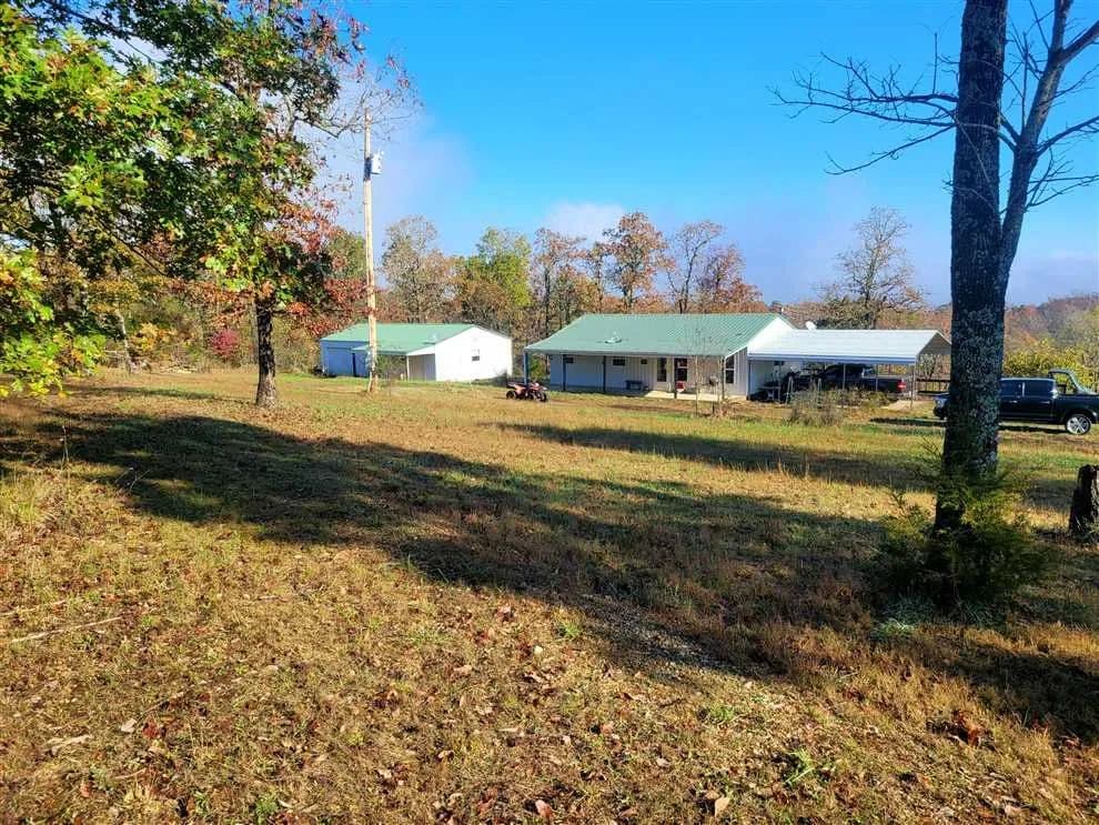 The hunt is over! Quiet secluded home with hunting land, or a nice getaway retreat close to the lake. This home sets back off the main road on a mostly wooded 139+/- acres. There's a few acres of open pasture in the back of the property, which is currently set up for hunting. You can do some trail riding or spend a day fishing on Bull Shoals Lake, with public access just over 2 miles down the road. Be nice and cozy inside or enjoy one of many activities to chose from outside. The main home is a 1 bed and 1 bath with open living space, all totaling 804 sqft. Included is a shop that features a living space with bathroom, plus room to park a vehicle or two. Don't forget to checkout the drone video. Let's schedule your tour today!