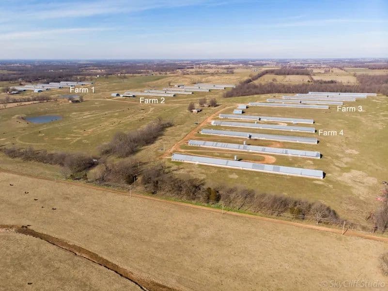 Cargill Big Tom turkey enterprise on 200 acres in Barry County Mo. (20) 50 X 500 'houses. The farm is complete with four very nice brick dwelling /caretaker homes, approximately 1493 Sq' ea. Farm converted to ''All In / All Out'' process in 2018. Birds are 18-20 weeks and each farm is rotated 30 days apart. All houses were originally constructed within an 18-24 month period and were updated considerably in 2017. $40,000 - $60,000 has been invested annually in additional maintenance and upgrades. The integrator delivers 2.2 flocks per house and pay is per bird. The farms are currently on the Cargill antibiotic-free-Avian 'A' plan for18 week birds.