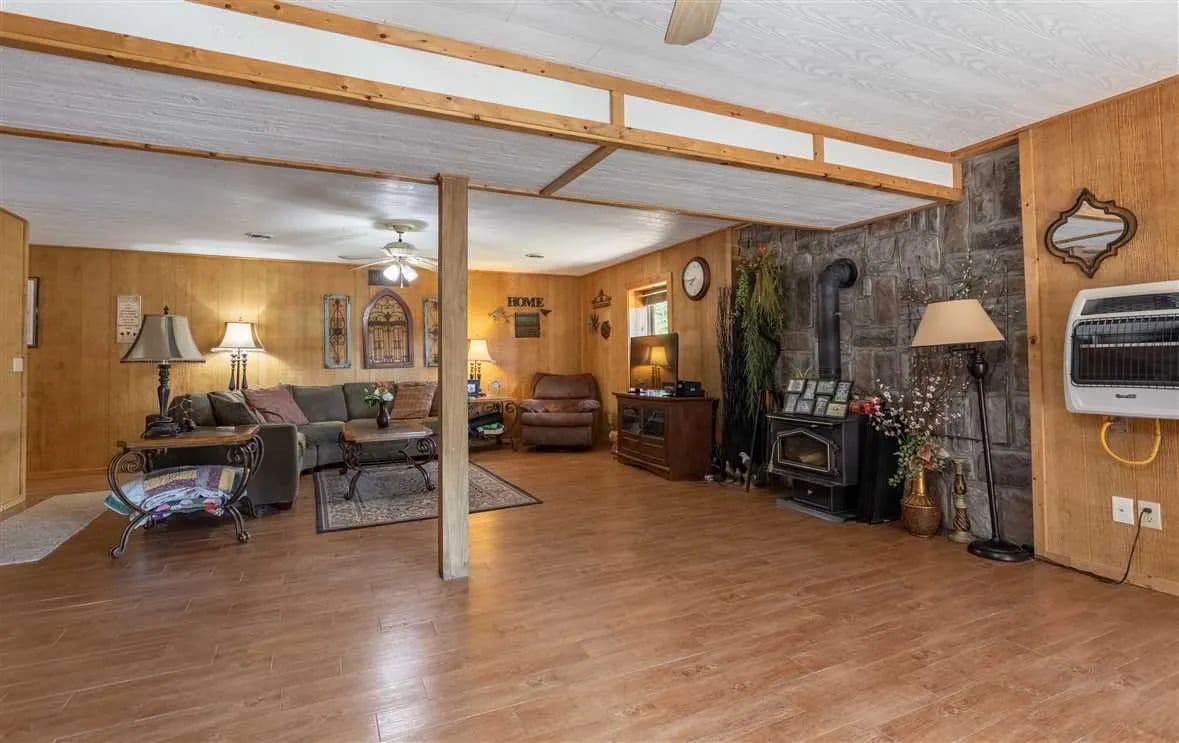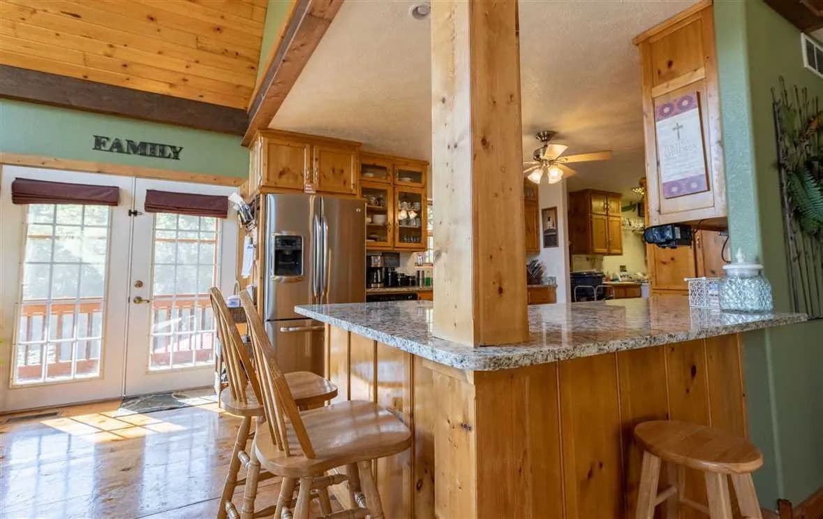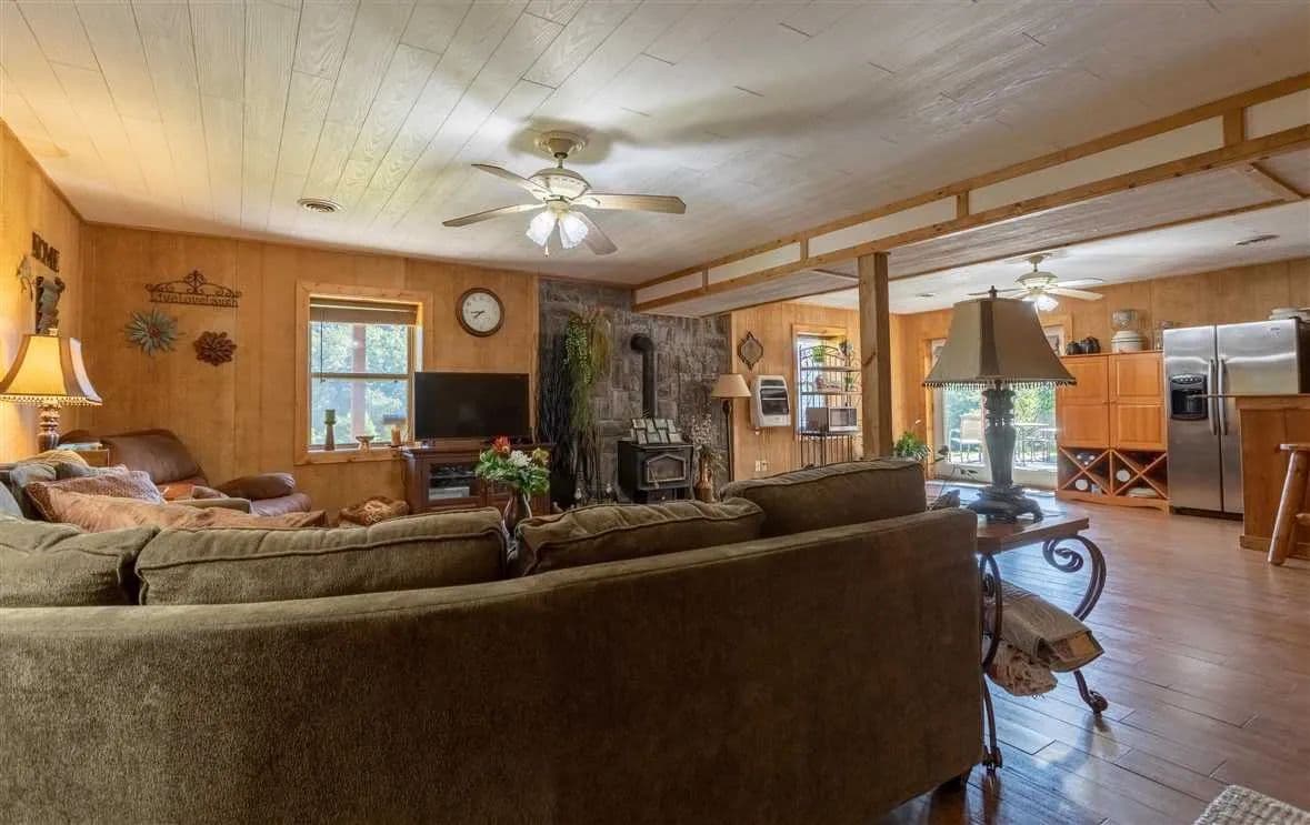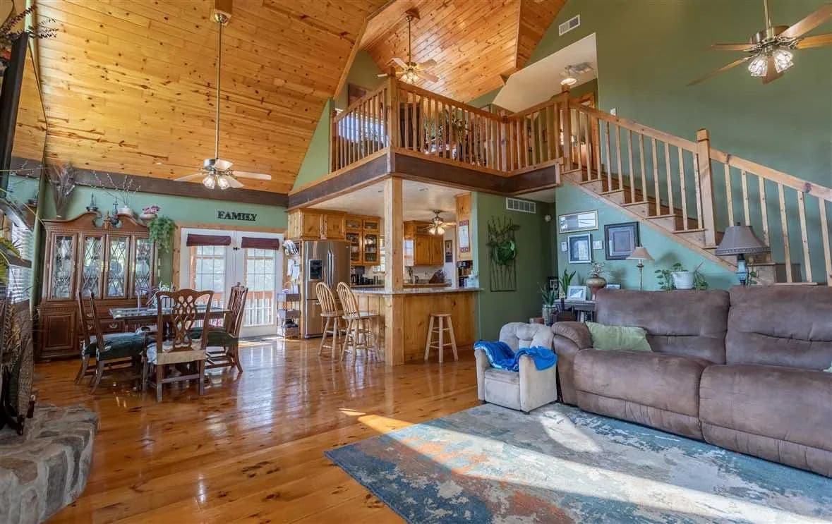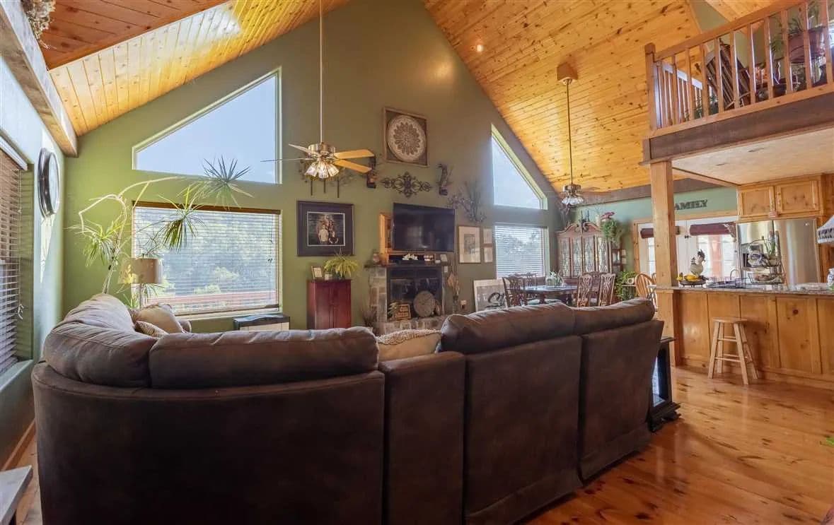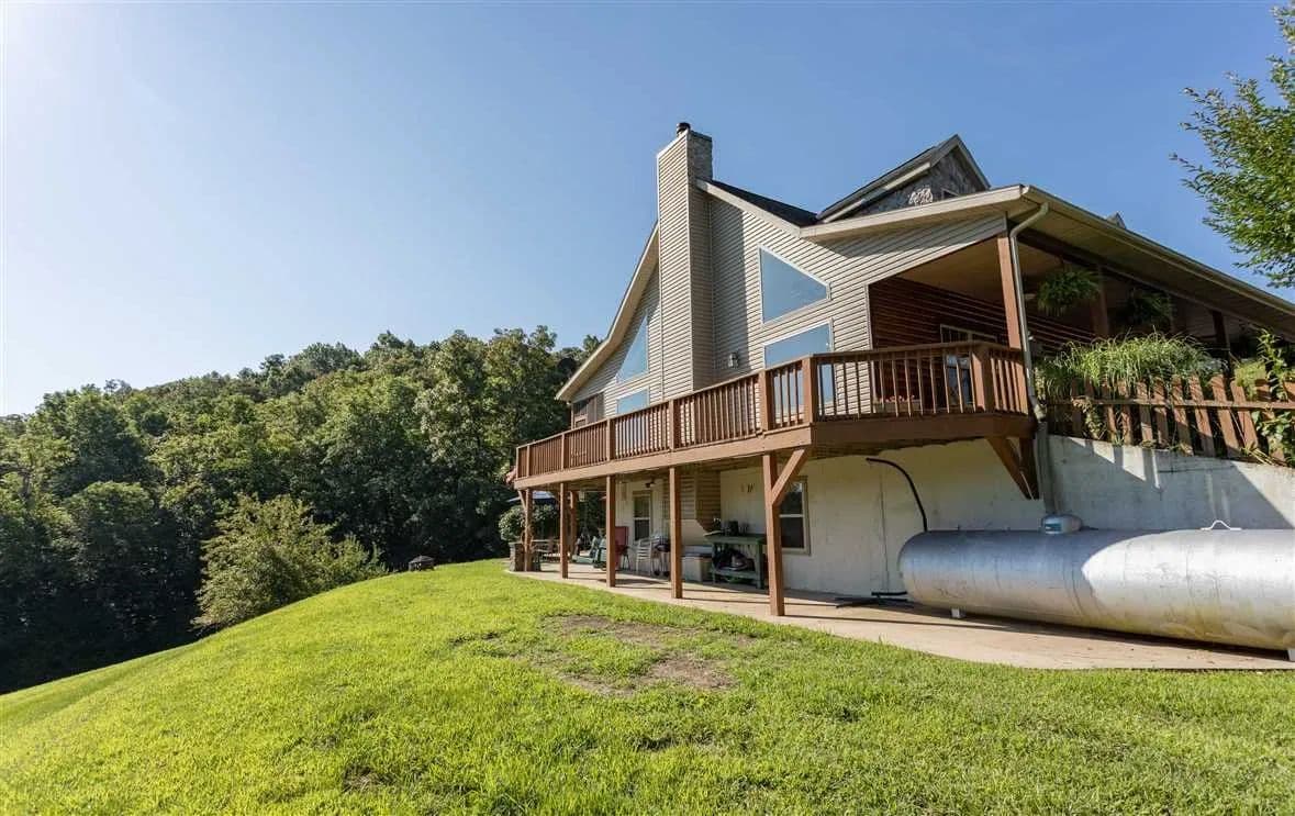 Enjoy country living at it's finest on 94 rolling acres. This stunning property has two year around springs, a stocked spring fed pond, and no shortage of wildlife for the avid hunter. Tucked away in some of the Ozark's most beautiful hills is a cabin styled home that showcases a wraparound deck, cathedral ceiling, and recently updated granite countertops. It has 4 bedrooms and 3 bathrooms, plus a 30 x 50 insulated shop gives you plenty of room for storage or working space. This country estate is nothing short of your own piece of paradise. Fourth bedroom is nonconforming. Better hurry and get your showing scheduled.