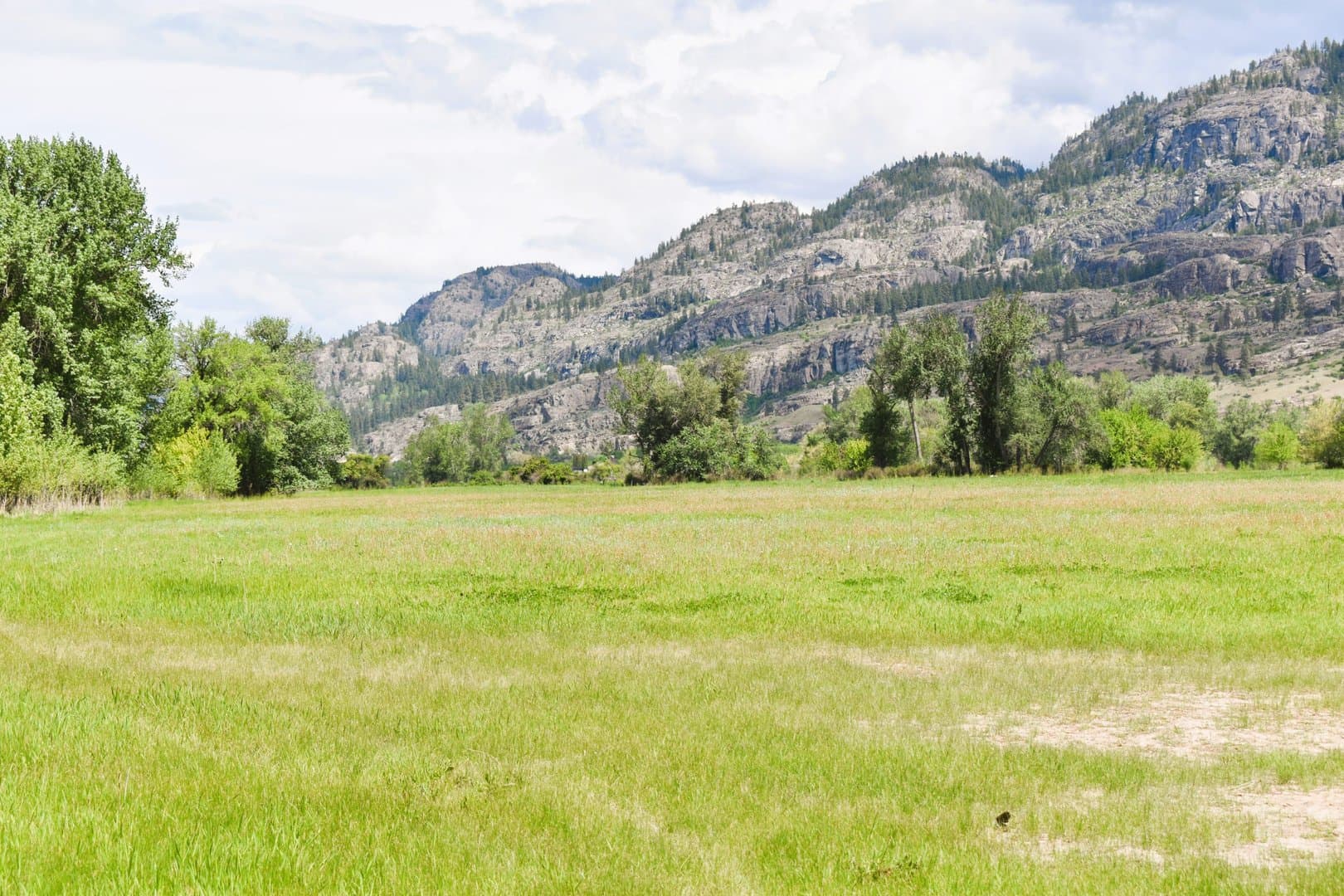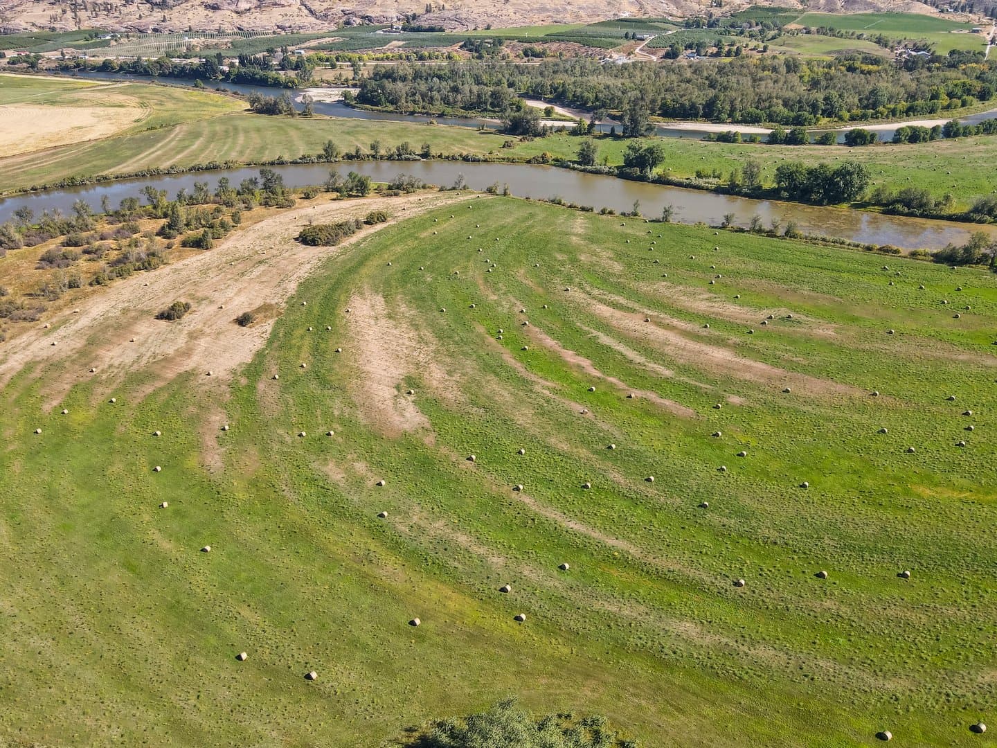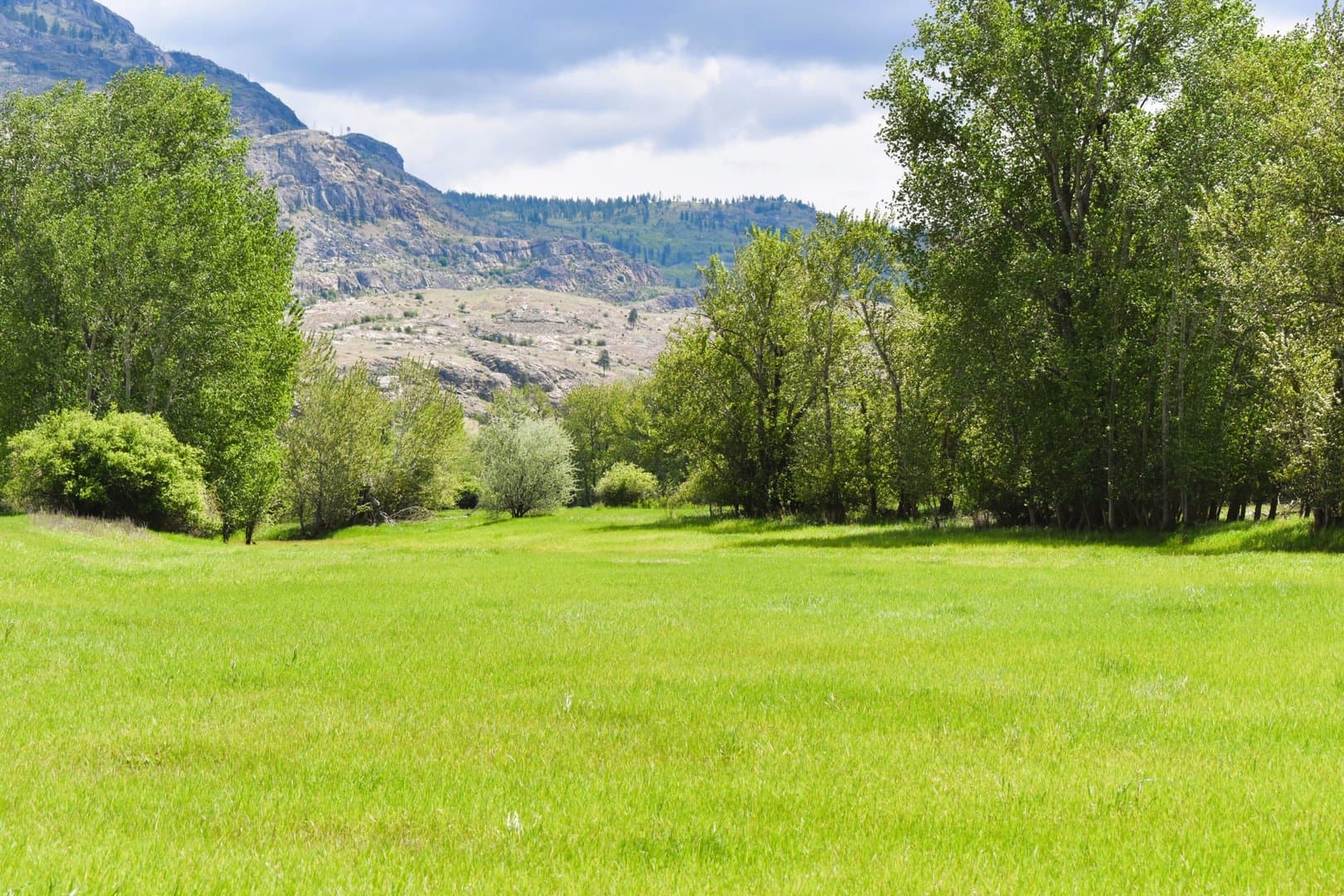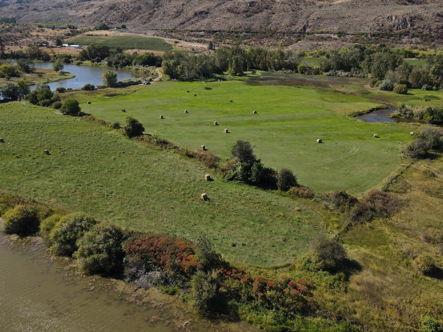 The Lower Ranch around Horseshoe Lake and the Okanagan River is approximately 175 acres of fertile sandy soils, about 60 acres in non-irrigated hay production. Cattle are often pastured after the hay is cut. There is also a large number of trees in the lowlands. Irrigation water is available through the irrigation district.