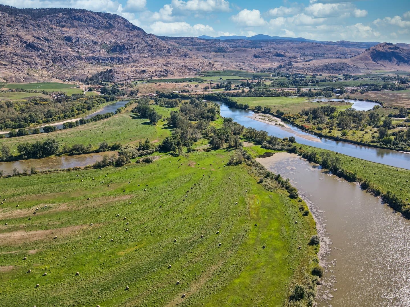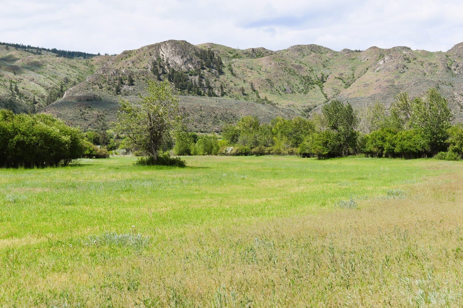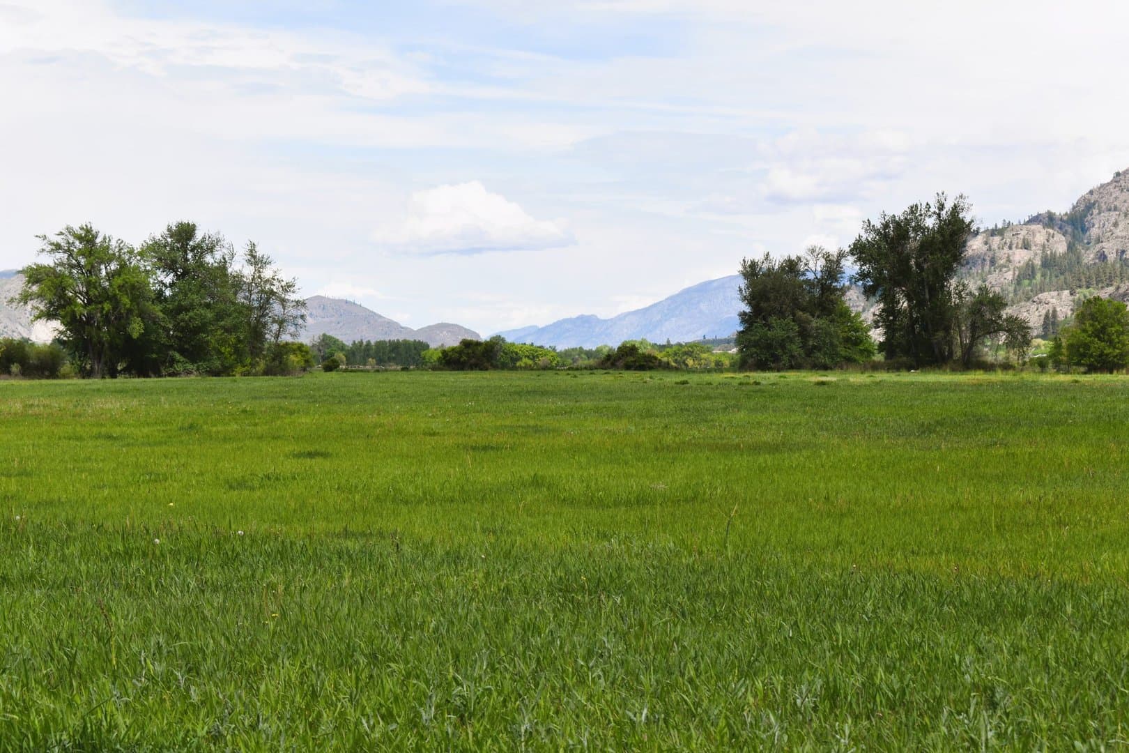 The Lower Ranch around Horseshoe Lake and the Okanagan River is approximately 175 acres of fertile sandy soils, about 60 acres in non-irrigated hay production. Cattle are often pastured after the hay is cut. There is also a large number of trees in the lowlands. Irrigation water is available through the irrigation district.
