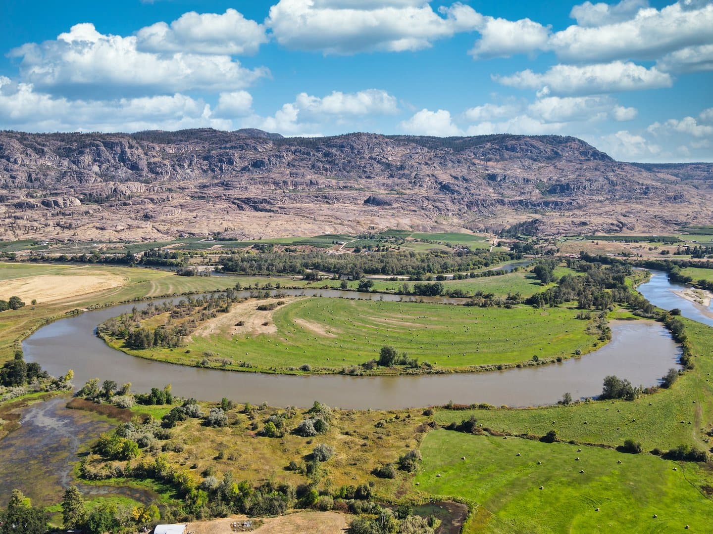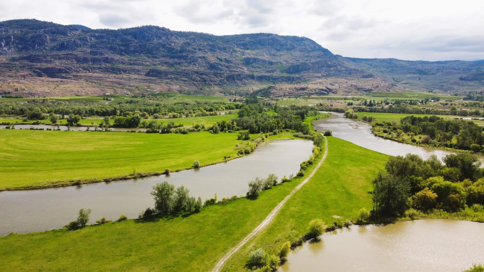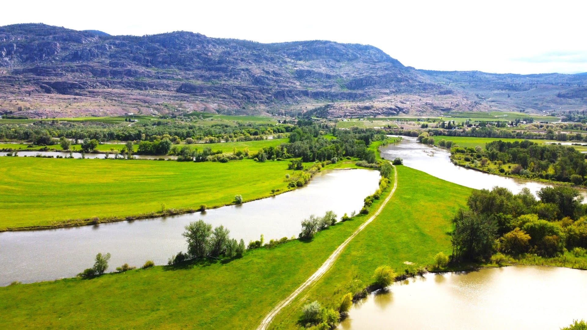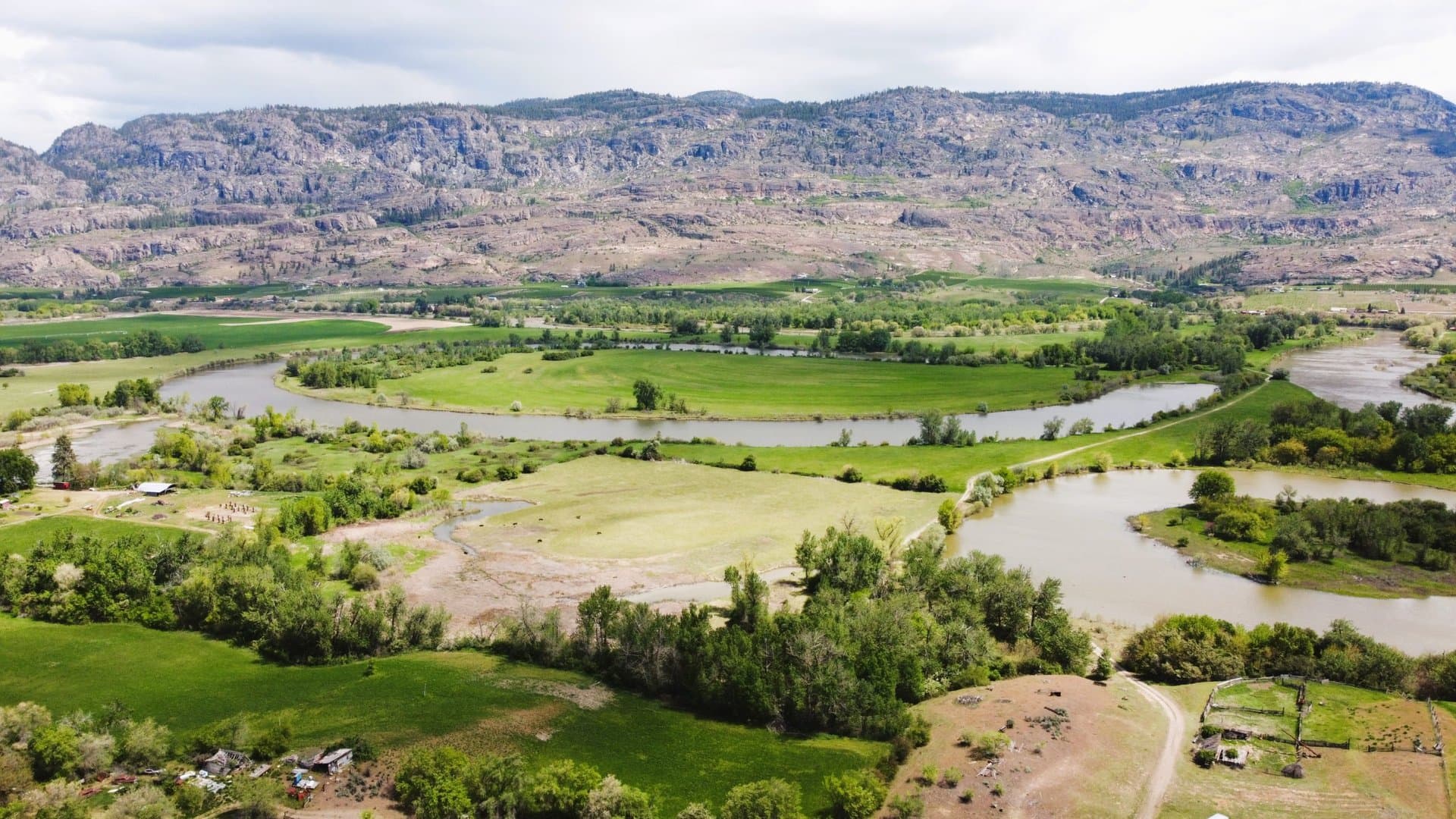 The Lower Ranch around Horseshoe Lake and the Okanagan River is approximately 175 acres of fertile sandy soils, about 60 acres in non-irrigated hay production. Cattle are often pastured after the hay is cut. There is also a large number of trees in the lowlands. Irrigation water is available through the irrigation district.