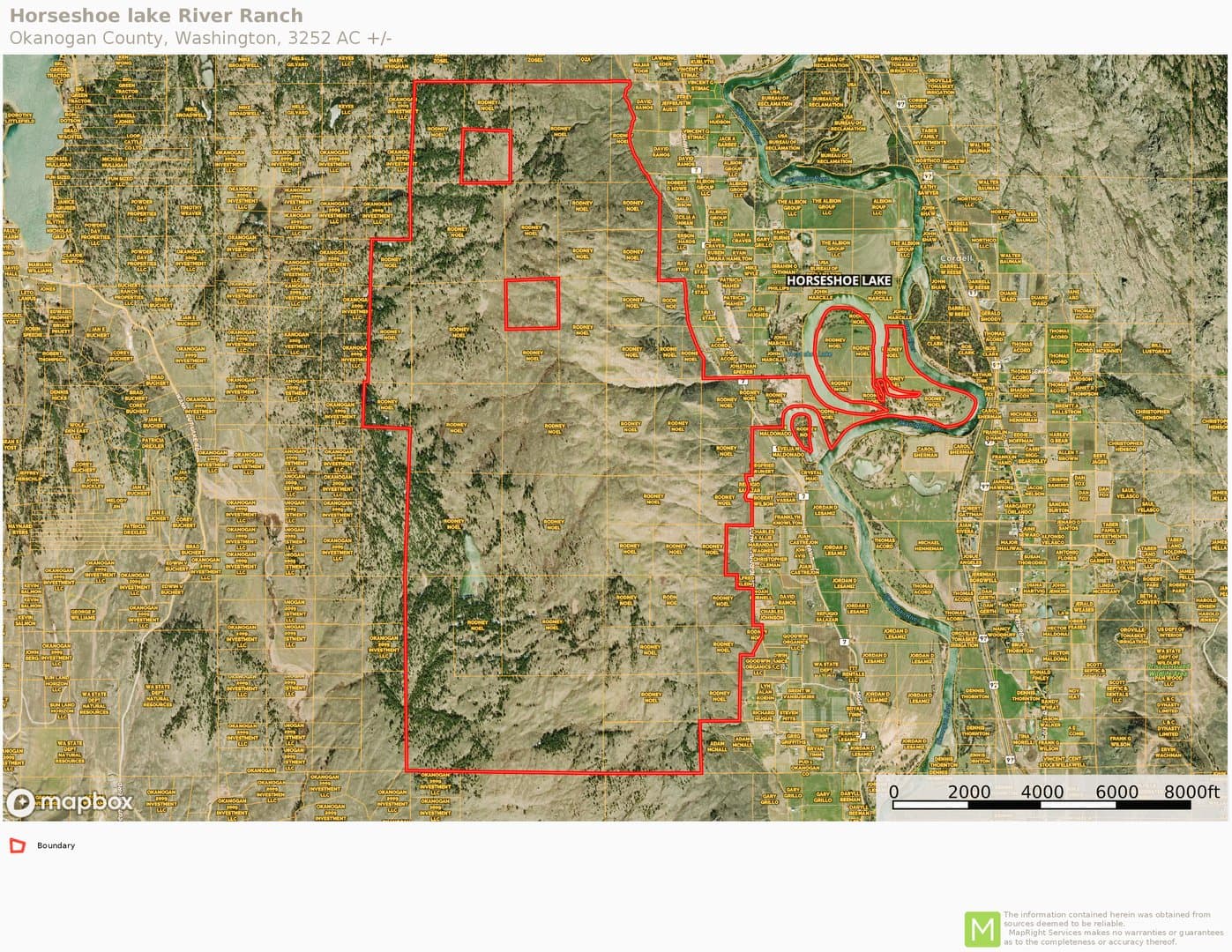 Horseshoe lake River Ranch. .Five named lakes & two miles of river frontage on the Okanogan River . Great fishing Sockeye & Chinook salmon, Small-mouth Bass, and Rainbow Trout, to name a few. A good variety of mature timber, Pine, Red Fir, and Quaking Aspen groves allow for some excellent wildlife habitat. Irrigation water available. Topography is flat with grassy meadows to rolling sage & timber ground with many level benches Land 3252 Acres 175 Acres Farmed 60 acres in hay and 6.5 acres with irrigation, Five named lakes on the property, the most significant being Horseshoe Lake. The lower meadows are lush and grassy and border the Okanogan River and Horseshoe Lake with excellent soils for growing. The upper ranch is a variety of rolling hills and numerous flat benches covered in sagebrush and mature Timber; The cattle can graze from May until October, depending on the moisture in the soil