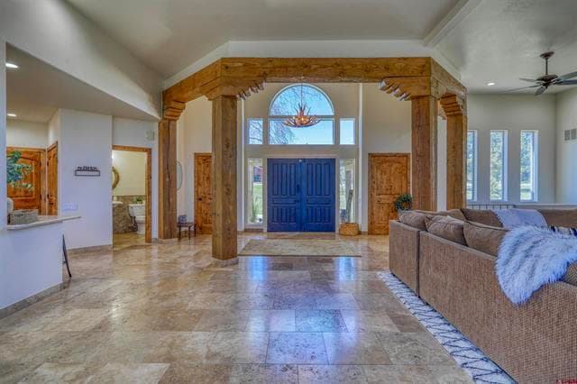 Rustic Mountain and Southwest Flavor Fusion On just under One Acre with Endless Mountain Views. Located in the epitome of Colorado mountain towns-Pagosa Springs, this Gorgeous home has 3 Bedrooms 2 Full Baths and 2 Half Baths plus 2 Media/Living Spaces and comes 100% Fully Furnished Turn Key. A hard to come by combination of luxury, size and amenities along with the oh so perfect location. This sanctuary is just overlooks Martinez Canyon with privacy, forever views, and walking distance to the National Forest and lake. The stunning double door grand entryway draws you into the over 3200 heated sf of natural light filled open living with bold rustic timber accents, travertine floors, and solid knotty alder doors. In immediate view is the great room with fireplace, dining area, and French doors to the outside deck. Access to the master suite is to the left and the gourmet kitchen with three ovens, a cook island, pantry and room to spread out is to your right. Family and guests? Retreat to the separate private media room on the lower level with two additional oversized bedrooms and private covered patio access. If the thought of a vacation rental is of interest to you, this one has done very well! Chances are, you're coming to Pagosa for a certain quality of life that can only be found here... How about being able to walk to the National Forest and lake right from your home? Would you like to access grocery, medical, cafes, bike paths, fish-stocked non motorized lakes, staffed Recreational Center and 27 holes at the Pagosa Springs Golf Course in minutes? Partake in some of the most epic winter sports anywhere at Wolf Creek, soak in the worlds deepest hot springs, enjoy a cuisine for every taste and one of kind shops. This is your place. This is your Pagosa! Call to schedule your showing.