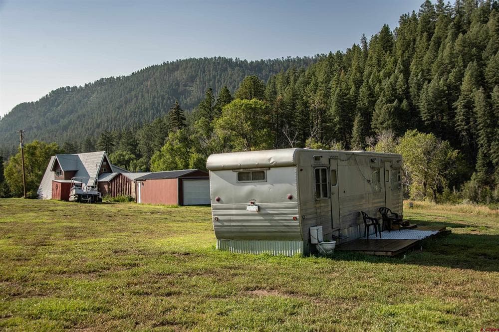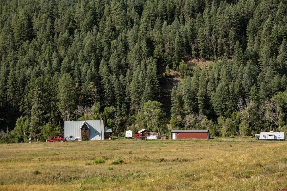 This property has it all, it fronts over 1,900 feet of the Rio Blanco, the San Juan National Forest and 16.8 acres of very usable land. Bring your horses and other livestock to enjoy the surrounding National Forest and your fly rods to fish this improved section of the Rio Blanco. The land comes complete with a 1,564 square foot main A-frame residence, a retro and remodeled 1956 early park model home and numerous outbuildings and loafing sheds. The classic 56 ABC park model residence has been fully remodeled and features a full bath, bedroom, retro kitchen and living area. Life is very quiet and relaxing just eleven short miles down Hwy. 84 away from the bustle of downtown, yet close to everything the community of Pagosa Springs has to offer. [BUYER BROKER COMPENSATION AVAILABLE]