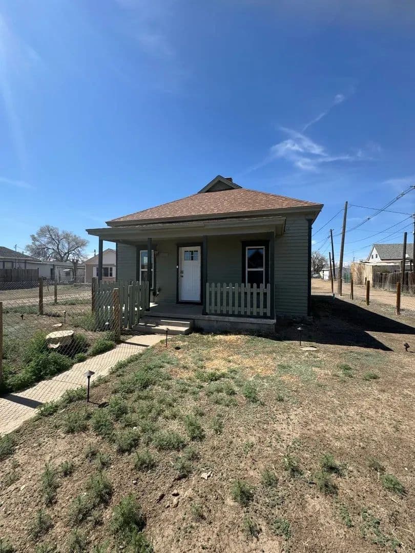 Newly remodeled 2 bedroom, 1 bathroom home located in Las Animas. Step into functionality with ring doorbells, security cameras at the front and back of the home, and voice-activated lighting. Many upgrades have been made to this home, including the roof, exterior/interior paint, wiring, flooring, light fixtures, and appliances. The bathroom has a walk-in tiled shower and an antifog mirror. The open concept floor plan creates plenty of space to situate your furniture for a functioning living/dining experience. The kitchen features brand new cabinets, countertops, and appliances. The laundry/utility room is directly off of the kitchen with a back door for outdoor access. This property also features a fully fenced front and back yard with additional parking at the back of the home. There is covered parking for 1 vehicle and a fully enclosed workshop/storage area perfect for yard tools or bikes. This upgraded home is move-in ready, looking for its new owner!