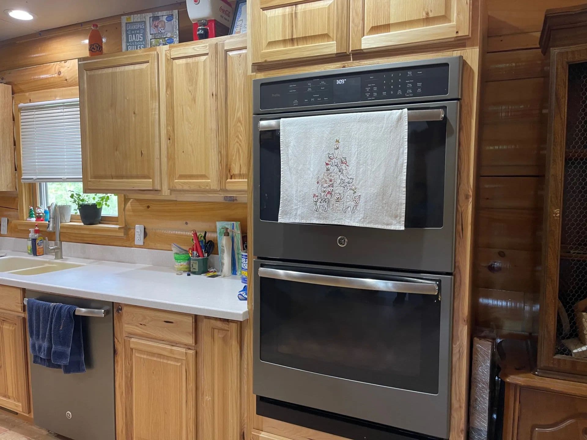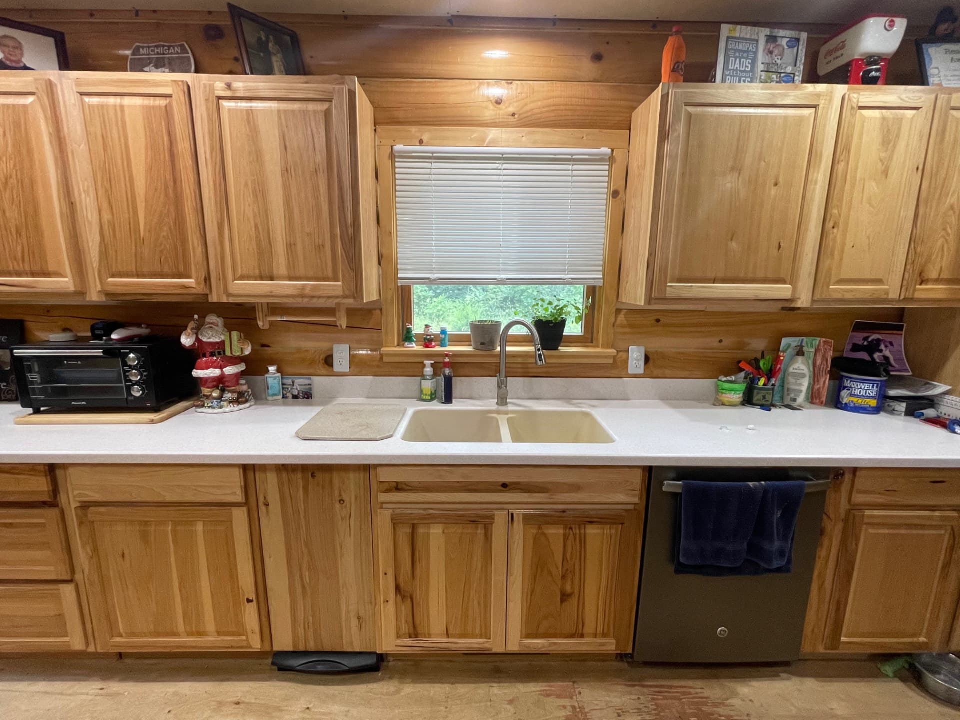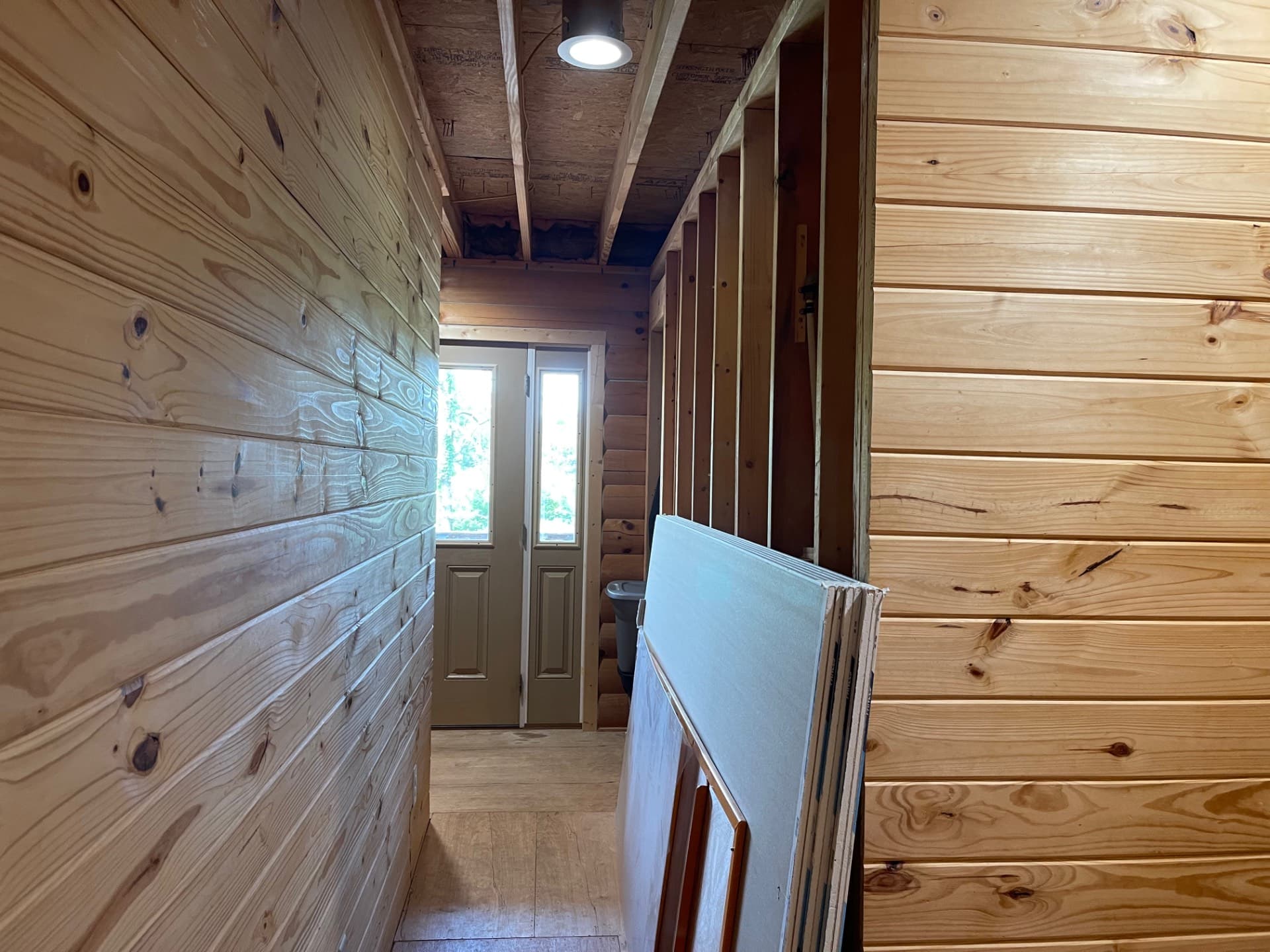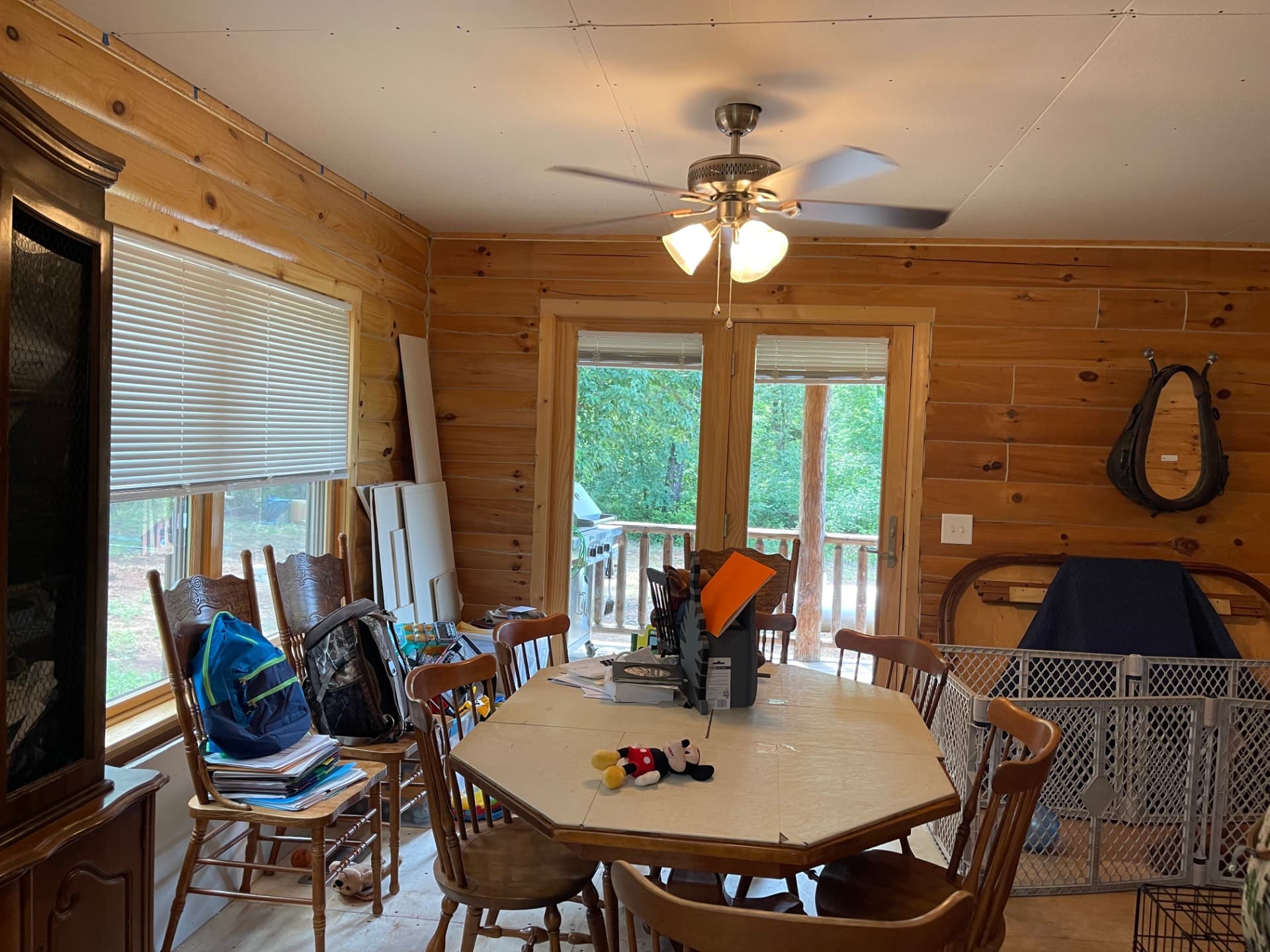 Beautiful Log Cabin on 67.77 wooded acres. Very peaceful and private with a long driveway. This is a custom built E-Log home that is currently about 85% finished. There are two bedrooms and a bathroom on the top floor that is only framed in. The home will need added insulation. A walk out basement is on the ground floor that has a poured concrete foundation. A stairway takes you up to the main floor where you will find a Living Room, open Kitchen, Dining Room, Bathroom with Laundry and the Master Bedroom with a master bath. French doors in the dining room lead you out to the wrap around covered porch for amazing views of the trees and pond with a little clearing of some overgrown brush. The counter tops in the open concept kitchen are Corian with GE appliances that stay, there is even a trash compactor. The laundry room is off from the kitchen with a bathroom in it also. Log homes are hard to come by because of the cost to build. This is a true log home! The outside will need to be treated and resealed. There is a lot of opportunity to finish this beautiful home and have a really nice place. The woods that surround hold many deer and wildlife and would make excellent hunting. The trees are mature and tall and Rock Creek runs through the property. It is Partially fenced with an automatic gate at the entrance. With some building material that was purchased but never used being left for the new owner, This home is ready to finish out your way!