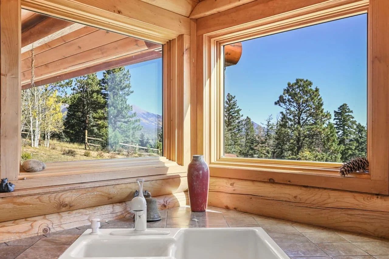 The home boasts both character and durability with hardwood floors and floor to ceiling windows overlooking the dramatic landscape.