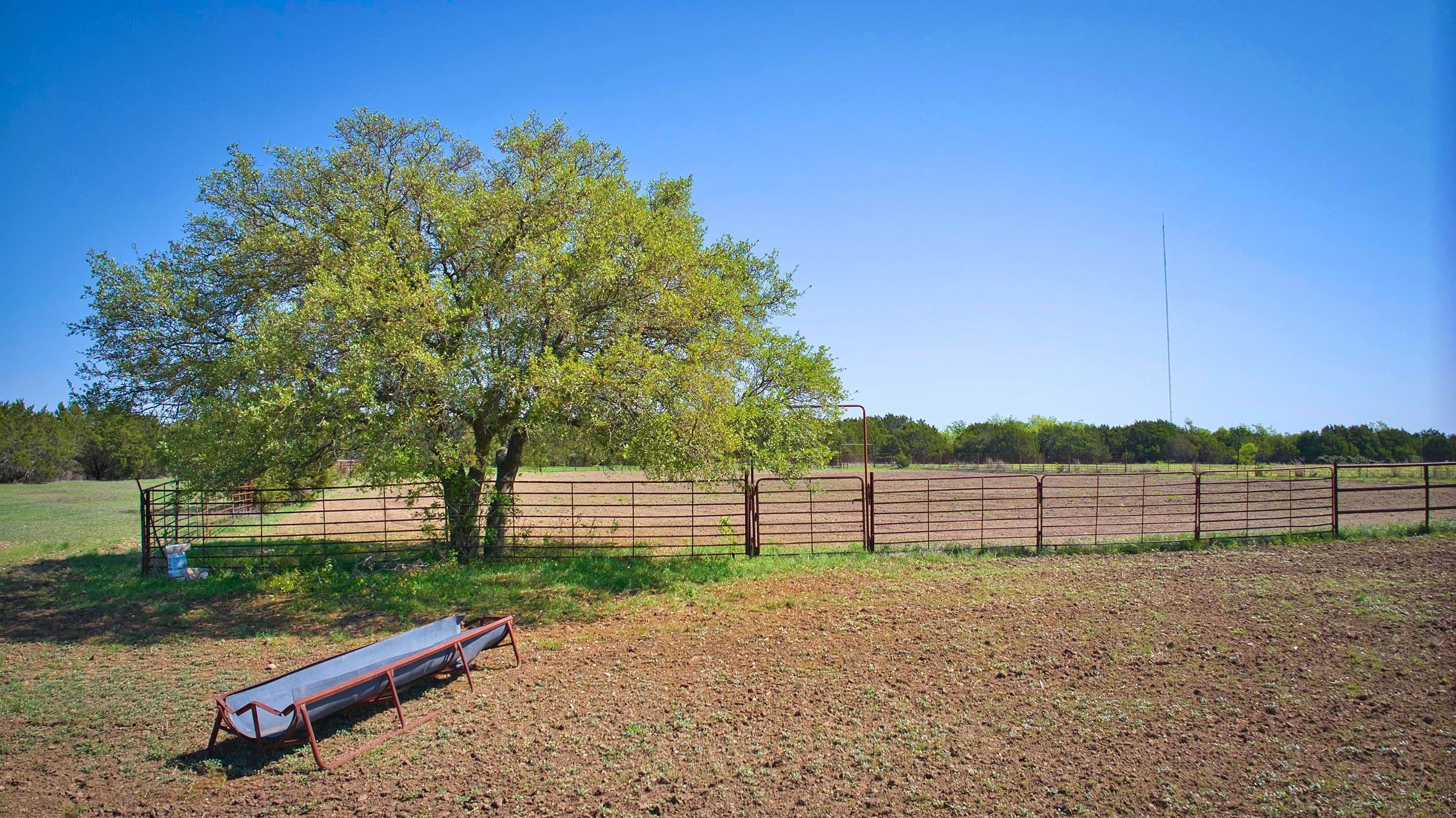 Mature oak trees surround the home, providing an abundance of shade and enhancing the peaceful setting. The back patio offers the perfect place to relax and enjoy the scenic views. The land itself features level terrain with a well-balanced mix of wooded areas and open pasture, ideal for livestock. The pastures are primarily covered in native grasses with clay-type soil. A gated entrance, boundary fencing, and cross-fencing ensure efficient land and livestock management, while the AG exemption, maintained through a cow/calf operation, provides significant property tax savings.