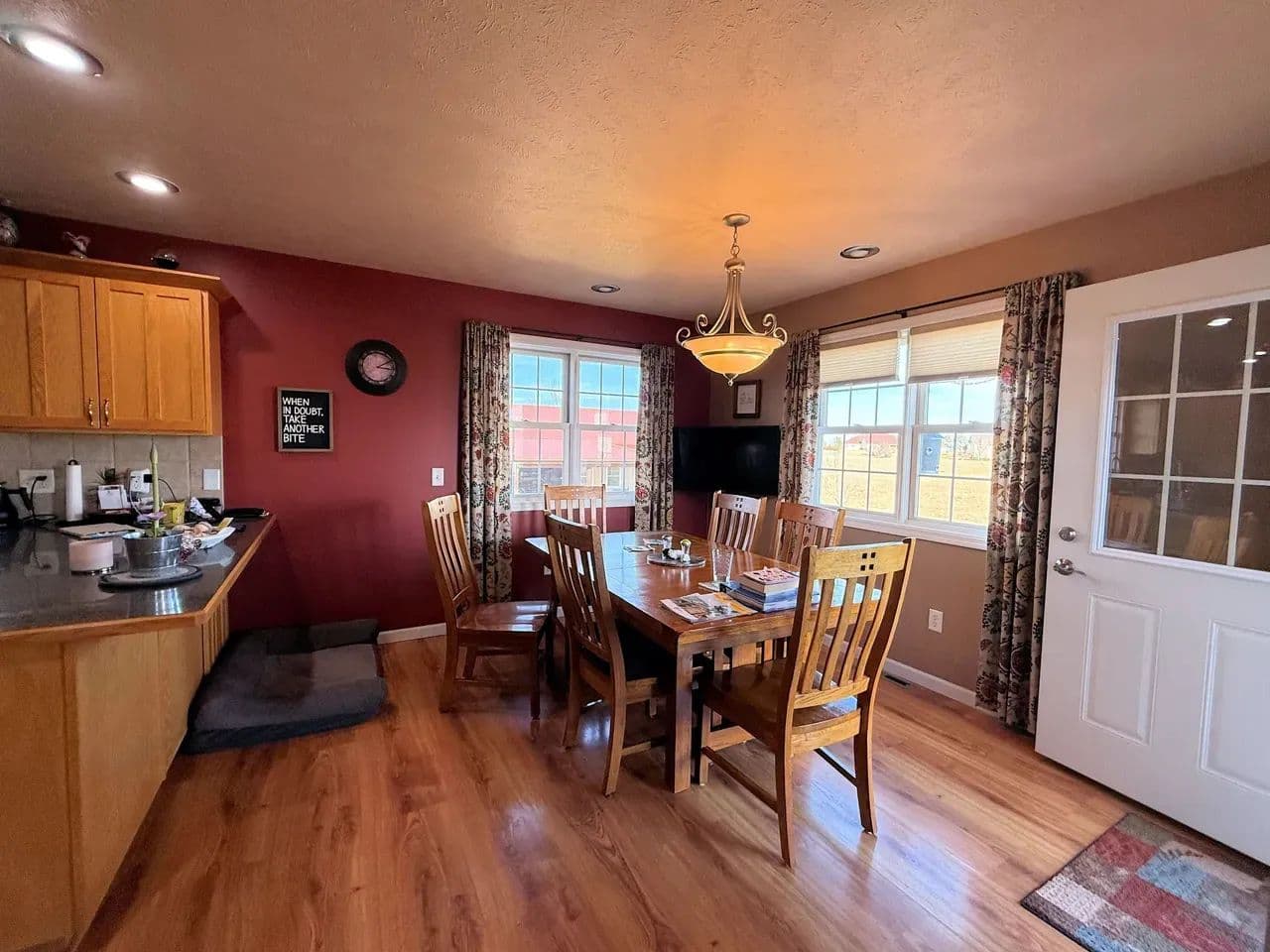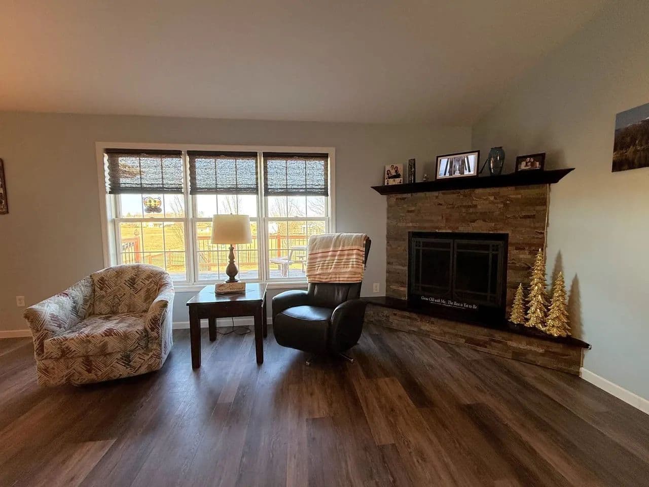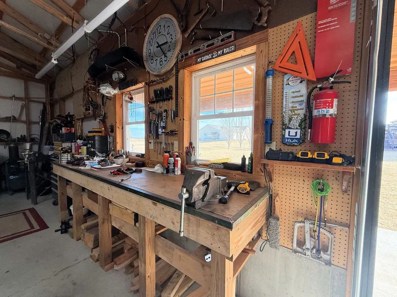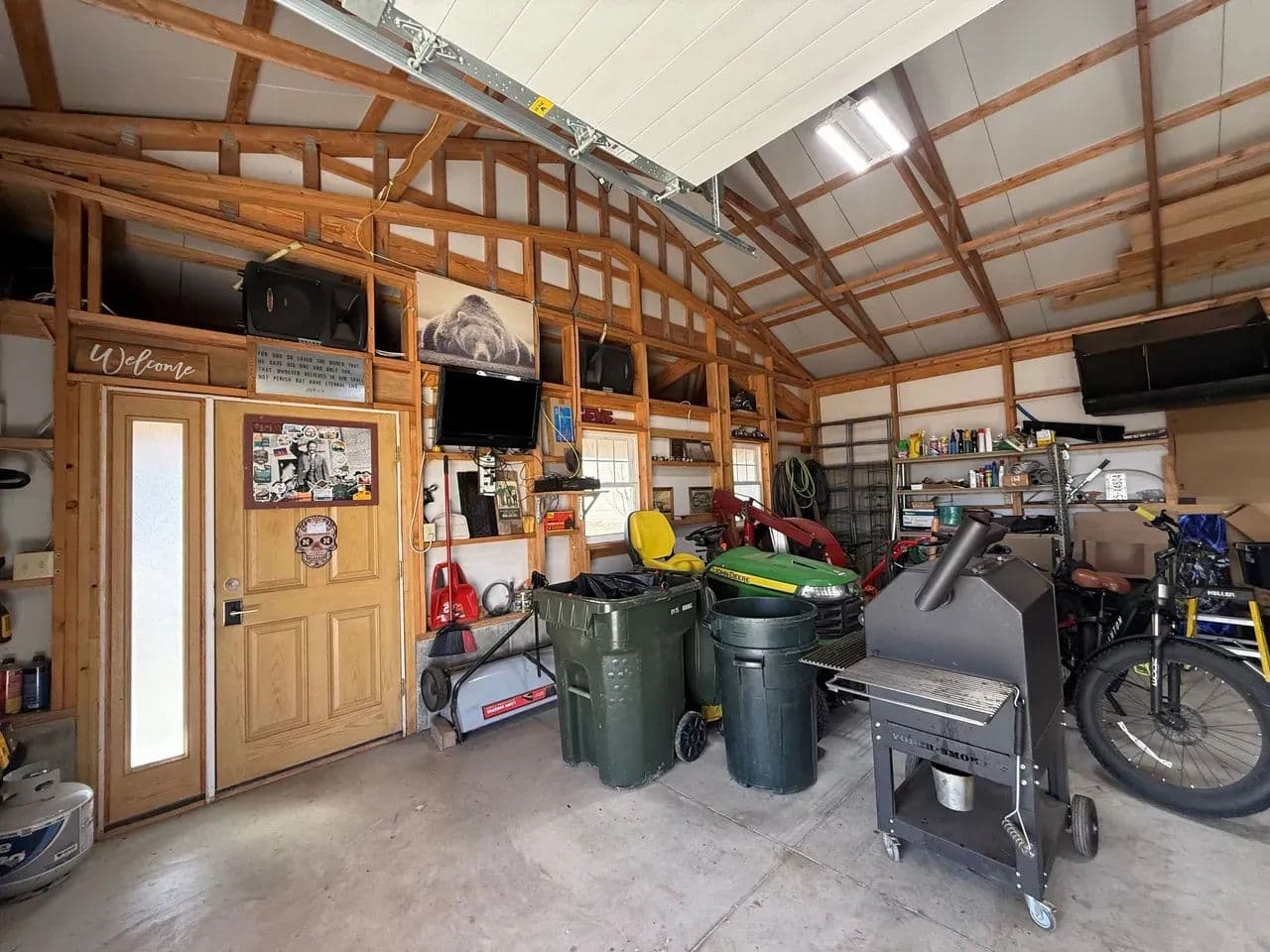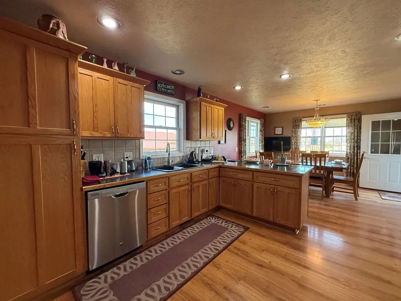 Here is a modern, move-in-ready home. The main level offers three large bedrooms and 2 1/2 baths. The master suite has a whirlpool tub, a shower, and a large walk-in closet. The spacious living room boasts vaulted ceilings and a gas fireplace. The kitchen offers stainless steel appliances, hardwood oak cabinets, a pantry, and a dining area ideally situated to watch the morning sunrise. Just off the kitchen you will find the main floor laundry room and a 1/2 bath. Exiting the kitchen you enter the oversized attached three-car garage, which is completely finished and includes a workshop area.The lower level of the home consists of a fully finished basement with a huge family room, two bedrooms with egress windows, a 3/4 bathroom, an expansive storage room, a storm shelter, and a wood stove that adds character and warmth. The home has an electric heat pump with central A/C, newly installed in 2024.