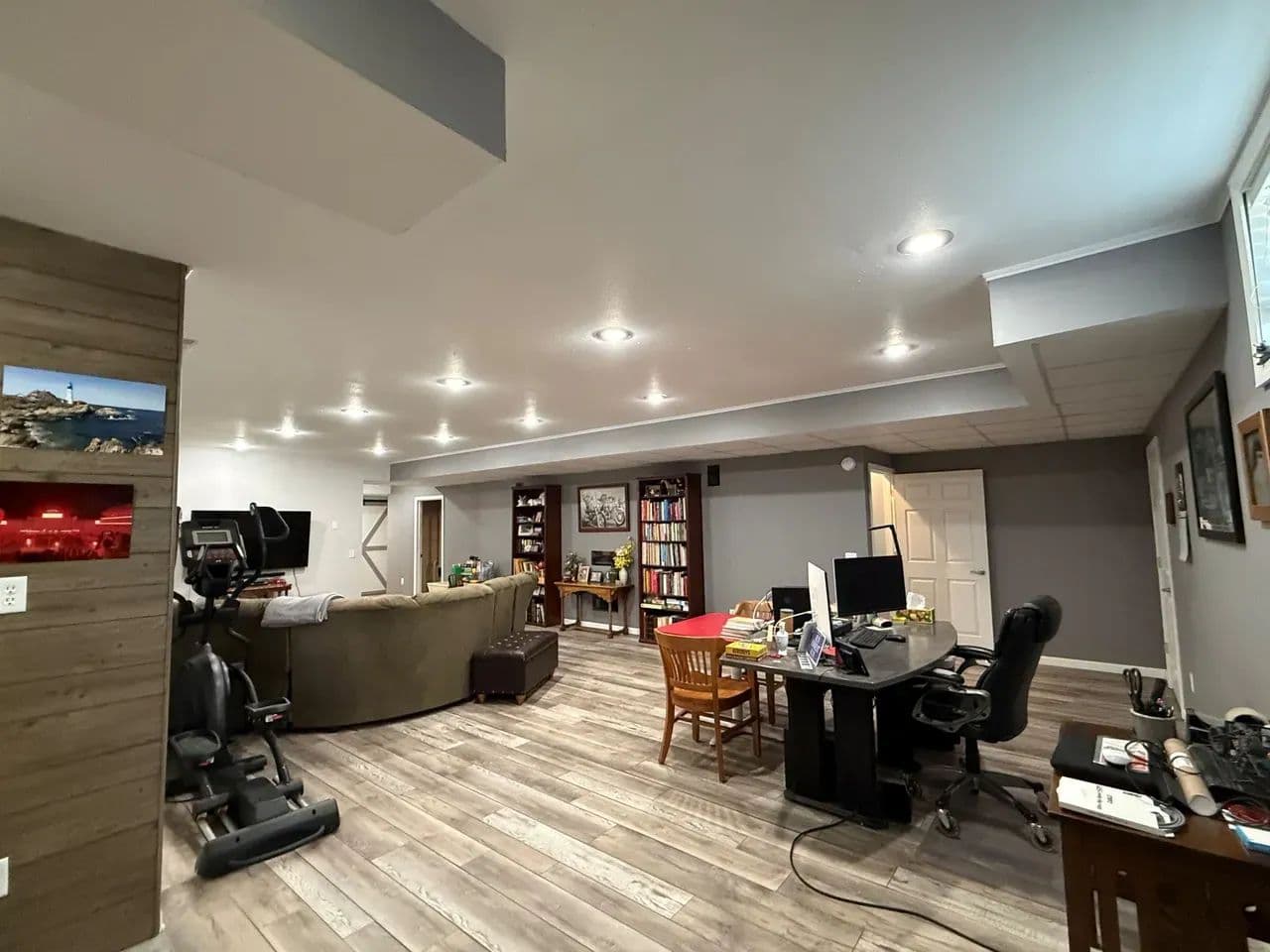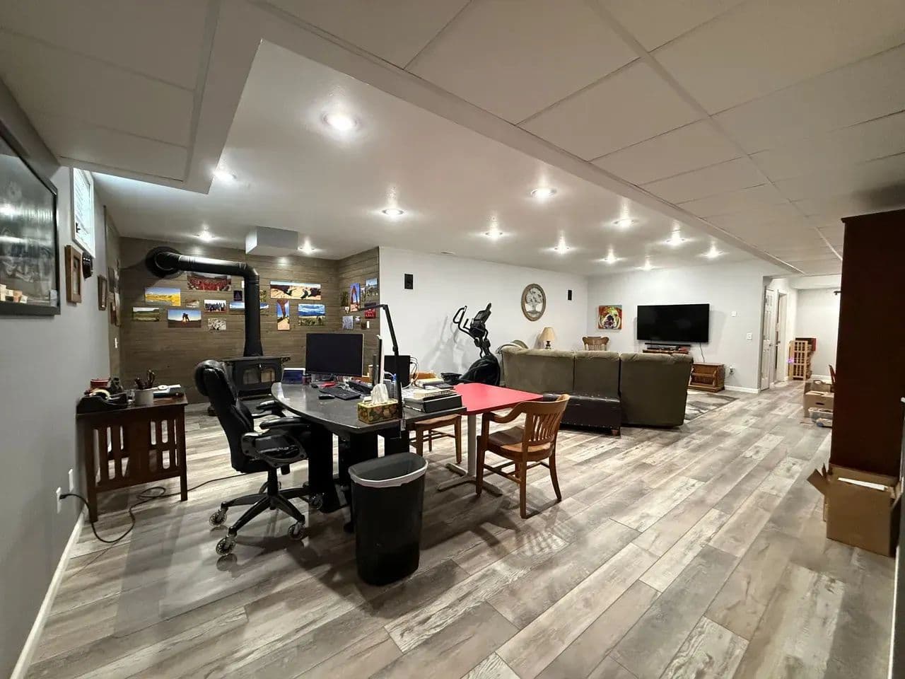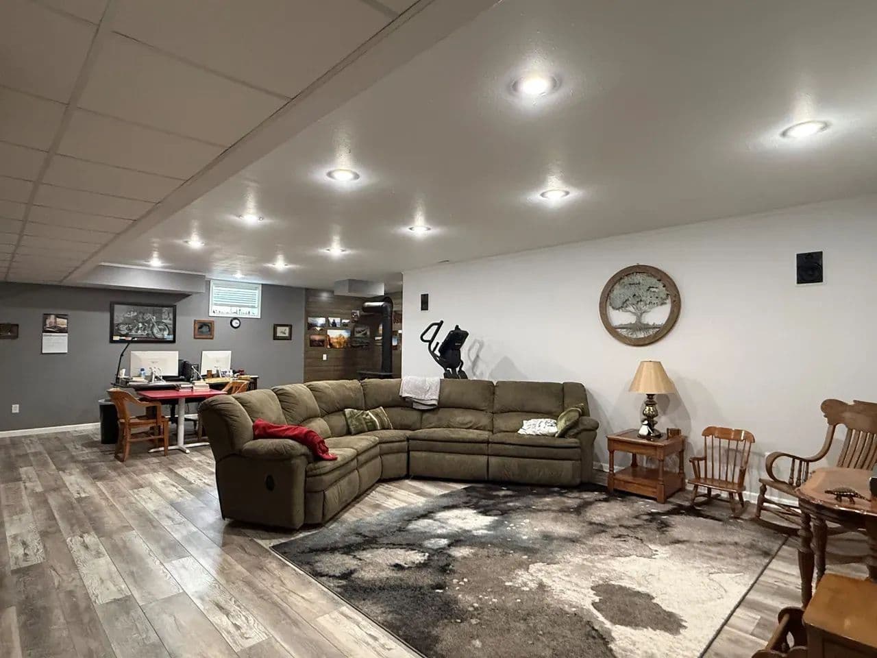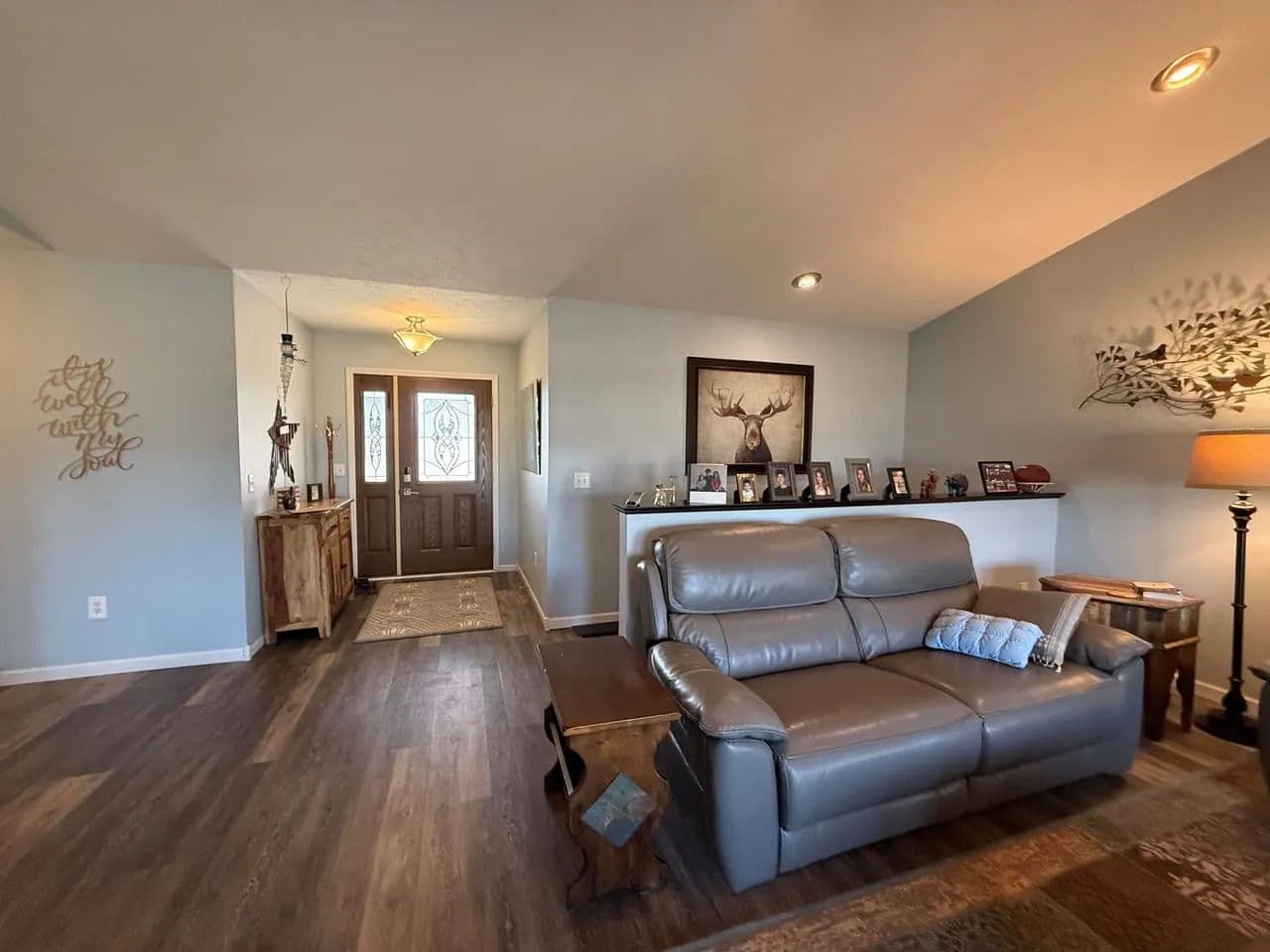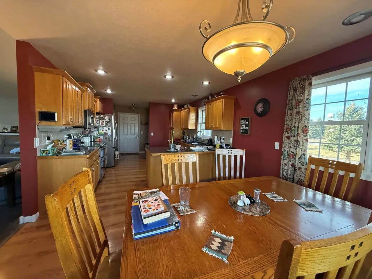 Here is a modern, move-in-ready home. The main level offers three large bedrooms and 2 1/2 baths. The master suite has a whirlpool tub, a shower, and a large walk-in closet. The spacious living room boasts vaulted ceilings and a gas fireplace. The kitchen offers stainless steel appliances, hardwood oak cabinets, a pantry, and a dining area ideally situated to watch the morning sunrise. Just off the kitchen you will find the main floor laundry room and a 1/2 bath. Exiting the kitchen you enter the oversized attached three-car garage, which is completely finished and includes a workshop area.The lower level of the home consists of a fully finished basement with a huge family room, two bedrooms with egress windows, a 3/4 bathroom, an expansive storage room, a storm shelter, and a wood stove that adds character and warmth. The home has an electric heat pump with central A/C, newly installed in 2024.