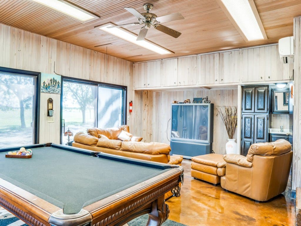 Motivated Sellers! Come enjoy true country living, in the beautiful Texas Hill Country. This amazing property totals approx. 23.6 acres and includes an updated brick home with three-car garage. The floor plan showcases an updated kitchen with granite counters, high-end appliances, and rich cabinetry as well as a formal dining room with stained concrete floors, vaulted ceiling, and wall of doors leading outside. Continue the entertaining within an enviable game room that features built-in storage, backyard access, and ample room for a pool/foosball table plus a sitting area. At day's end, retreat to the large master suite with beadboard ceiling, room for a sitting area or desk, plus spa-like private bath offering a chic, tile shower and clawfoot tub. Two large secondary bedrooms and a home office complete the interior. Outside is a spacious patio, fabulous pool with spa, and multiple seating areas. Bring all your animals to this property which also provides a large hay barn, workshop/barn, chicken coop, is completely fenced, and has a gated entrance. Just a few miles outside of Bandera, move in and experience a quiet, peaceful lifestyle.
