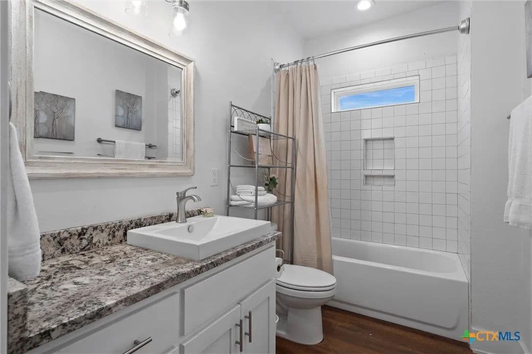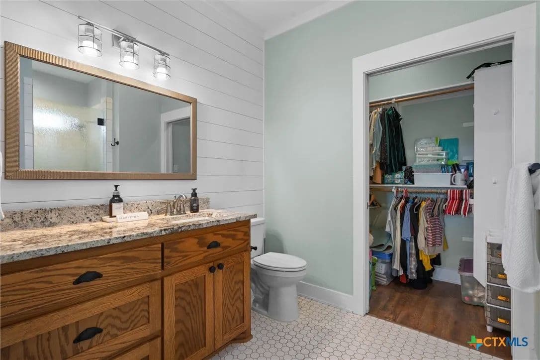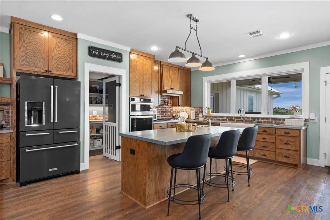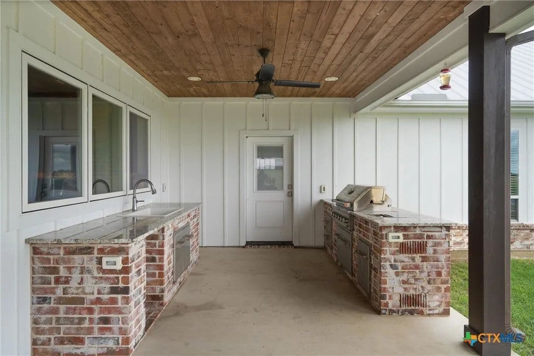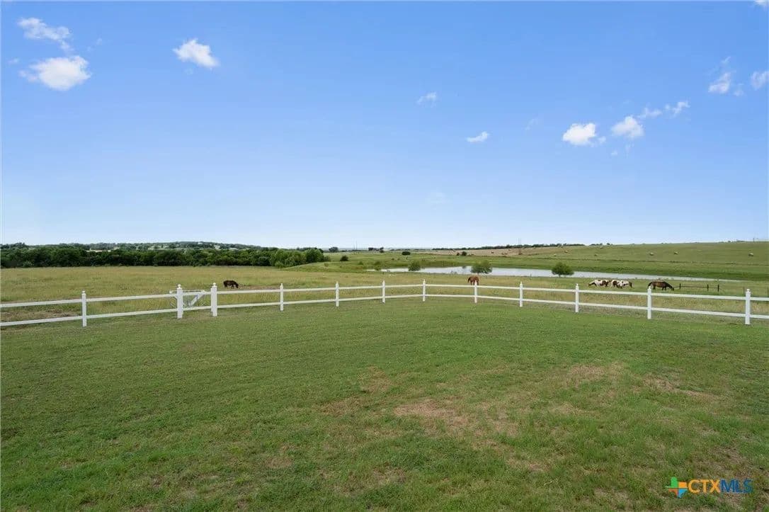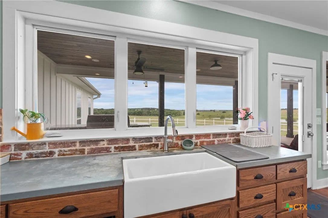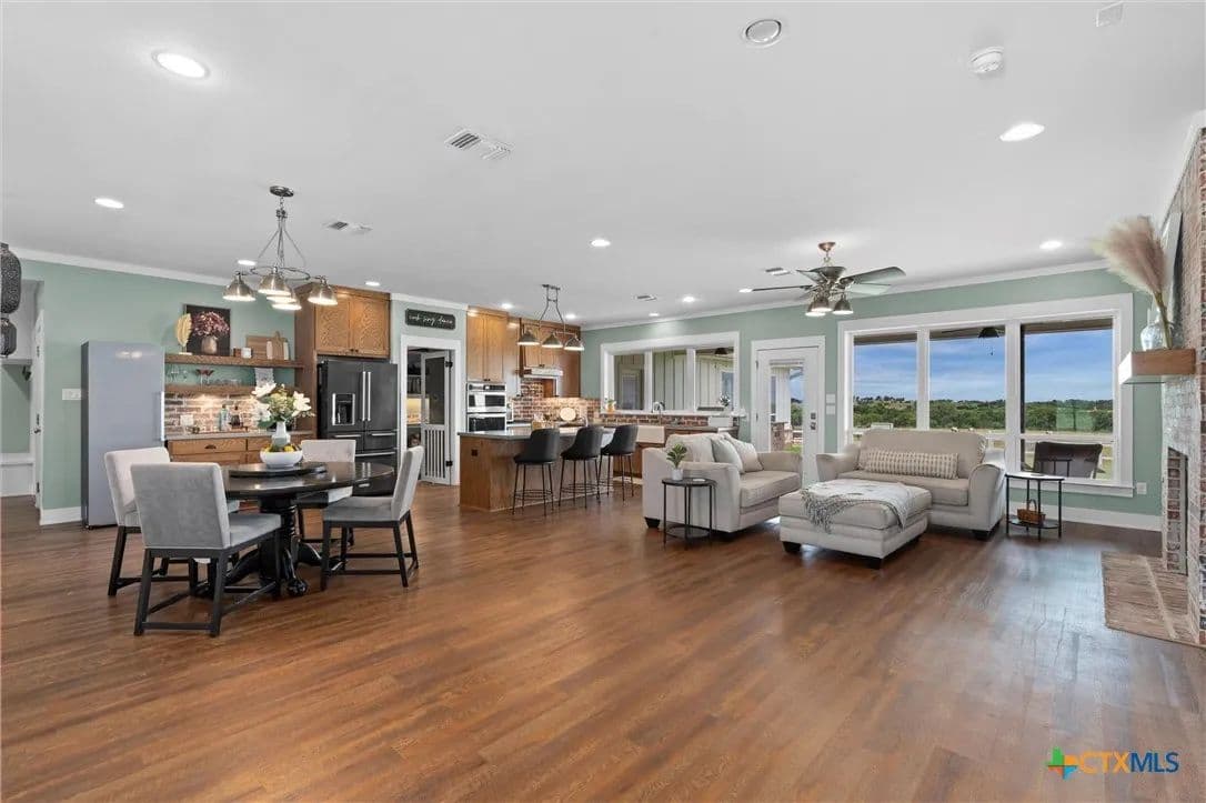 *No restrictions, per title company* For those looking to live life without limits, this one-of-a-kind Hill Country estate offers over 30 acres, a modern farmhouse, a 5-acre pond ideal for livestock, a private guest house, and a massive workshop with its own guest apartment—making it the perfect property for multigenerational living, entrepreneurs, tradespeople, or anyone craving space, flexibility, and freedom. The land is fully fenced and cross-fenced, ready for animals, expansion, or future agricultural use. The 3,121 sqft main home is wrapped in classic split-rail fencing, and thoughtfully designed to embrace the natural beauty of the property. Inside, the open-concept layout is framed by expansive windows, shiplap accents, and a dramatic floor-to-ceiling brick fireplace. The rustic-style kitchen features an exposed brick backsplash, large island with bar seating, stained wood cabinetry with pull-out drawers, a spacious butler’s pantry, and a sink window overlooking the rolling landscape. The primary suite includes patio access, a bay window, and an ensuite bath with dual vanities and a walk-in shower with seating. A second bedroom and full bath are on the main floor, along with two flex spaces or home offices with French doors. Upstairs adds even more room to grow with another bedroom, full bath, and large additional living area. Outside, the covered patio and full outdoor kitchen are ideal for entertaining or relaxing while taking in the serene views. A 3-car garage includes one bay that connects to a 622 sqft attached casita featuring a kitchen, living area, bedroom, walk-in closet, and full bath—perfect for guests or extended family. For hobbyists, tradespeople, or business owners, the 3,142 sqft workshop is a dream, and it includes a separate 739 sqft guest apartment with a full kitchen, living room, bedroom, bath, laundry, and oversized utility room. With ample space to add a pool, raise animals, cultivate gardens, or bring your vision to life.