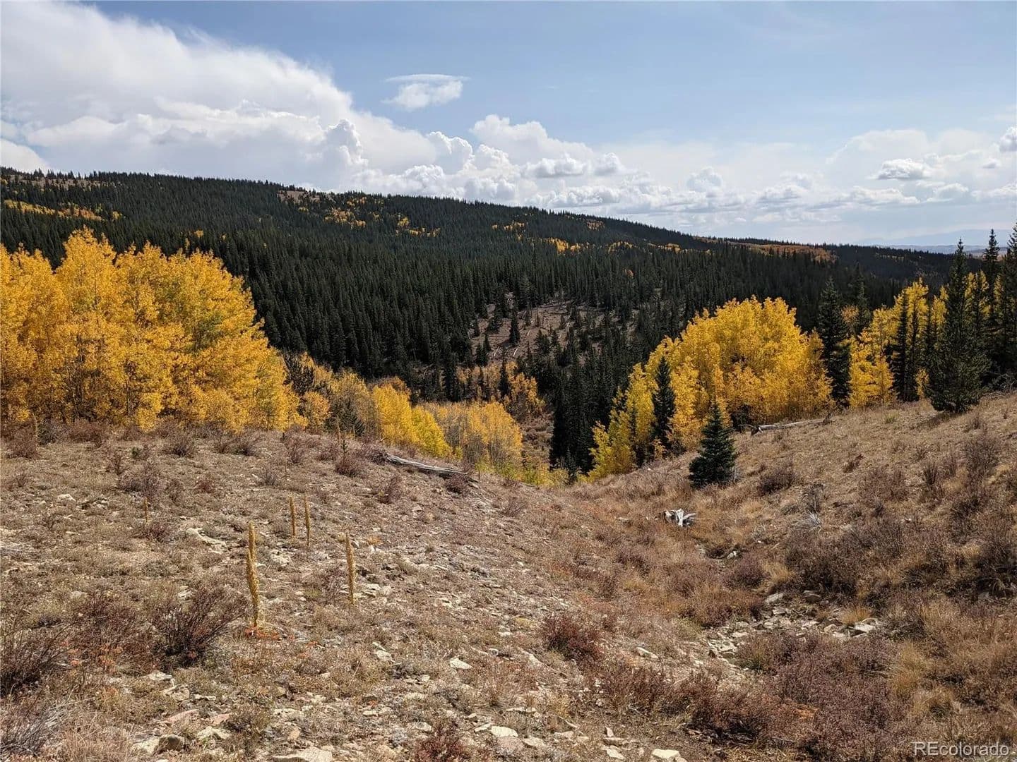 46 Acre mountain parcel in Breckenridge Mountain Estates, just outside Alma and Fairplay. Scenic and private with a mix of open meadows, mature pine and spruce, aspen groves, and young trees. Borders thousands of acres of National Forest with direct access to Beaver Creek and nearby beaver ponds just 200 yards below the property. Ideal for outdoor enthusiasts—back-country skiing, hiking, mountain biking, hunting, and camping right out the back door. Seasonal pond attracts wildlife and occasionally freezes over for ice skating or pond hockey. Mount Silverheels visible from the property. One of the few large, elevated parcels in Park County—this is not flatland. Access requires high-clearance 4x4 via Snow Cap Peak Road or short hike from FS Rd 655. Located approx. 2 hours from Denver, 25 minutes to Summit County, and 40 minutes to Buena Vista.