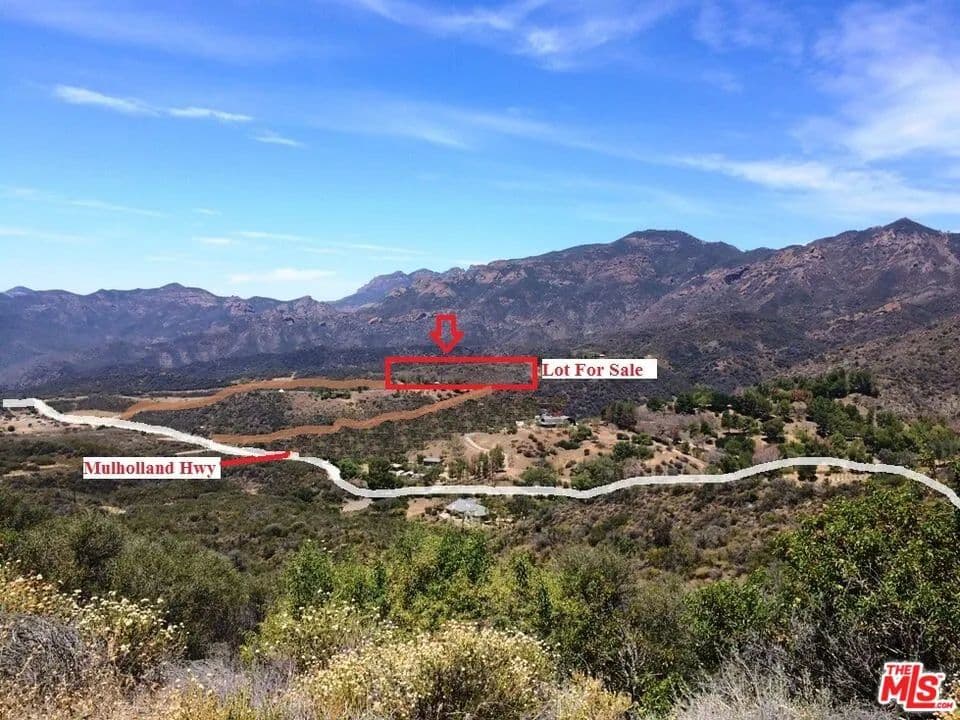 Malibu Country Lots - 9.5 Total Acres, divided into three lots for Only $350,000 ! Tremendous Opportunity with the possibility to build a 3 home family compound or build on one lot for yourself and build two more homes for investments! Extremely rare large flat building sites with amazing mountain and vista views in every direction. Water well on site - Please call agents for further instructions before viewing and follow the explicit directions and maps - Property is being sold as is. Coordinates to property; 34.0926981, -118.8960422 at this point look for red ribbon on the trees to the left of the gate. Those are an approximate boundary line that you can walk up to the ridge and down the property. Owner will finance with 30% cash downpayment @ 6 interest per anum, maximum of 5 years