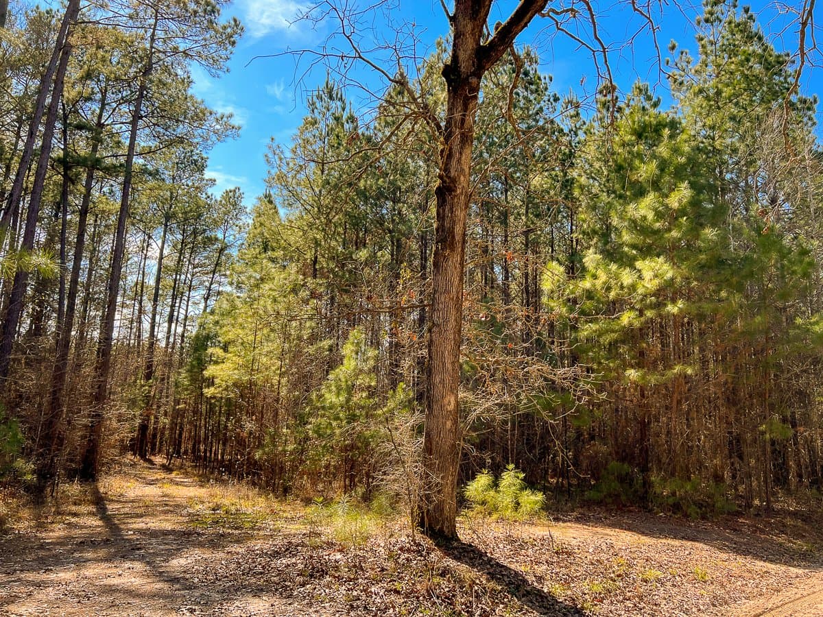 Hilltop in native bluestem and planted pines. Rolling Terrain, Tall Pines, Seclusion, Private Yet Easy Access. Wooded in Pine & Hard Wood. Great Home Or Cabin Site. Great Recreational Tract.
