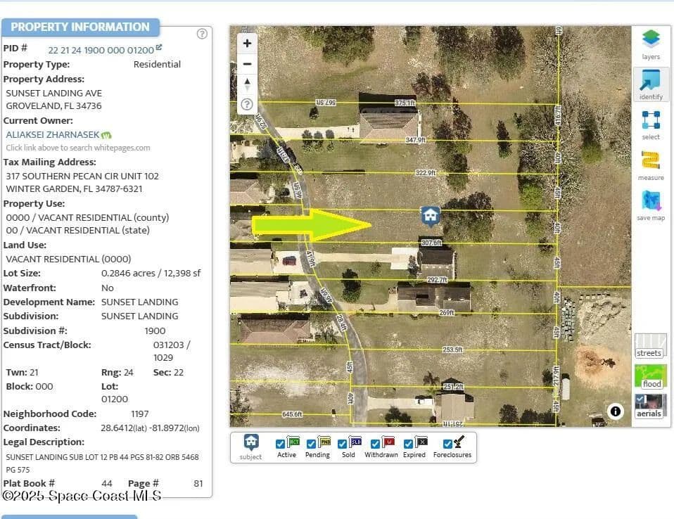 It's a 0.2846 acre buildable single family residential lot with direct road access and utilities available in the highly desired Sunset Landing Subdivision of Groveland in Lake County. Groveland, Florida is known for being a fast-growing suburb west of Orlando, with a history rooted in citrus production and a present-day focus on its numerous lakes, natural beauty, and status as a certified Dark Sky Community. It offers activities like visiting farms and blueberry picking, enjoying outdoor recreation on its lakes, and exploring its rural feel with many residents owning homes. From FL-33, go west on Sunset Lake Boulevard for .2 miles, and left on Sunset Landing Avenue. The lot will be on your left.