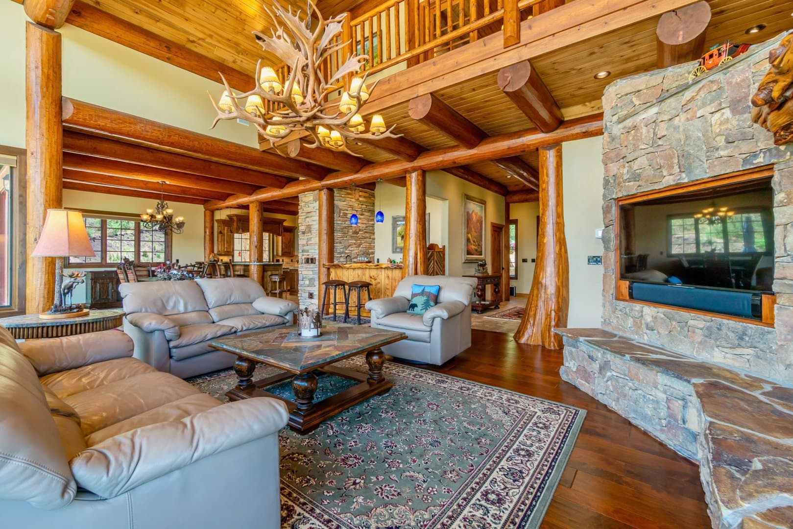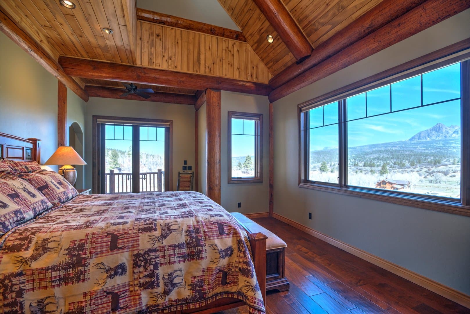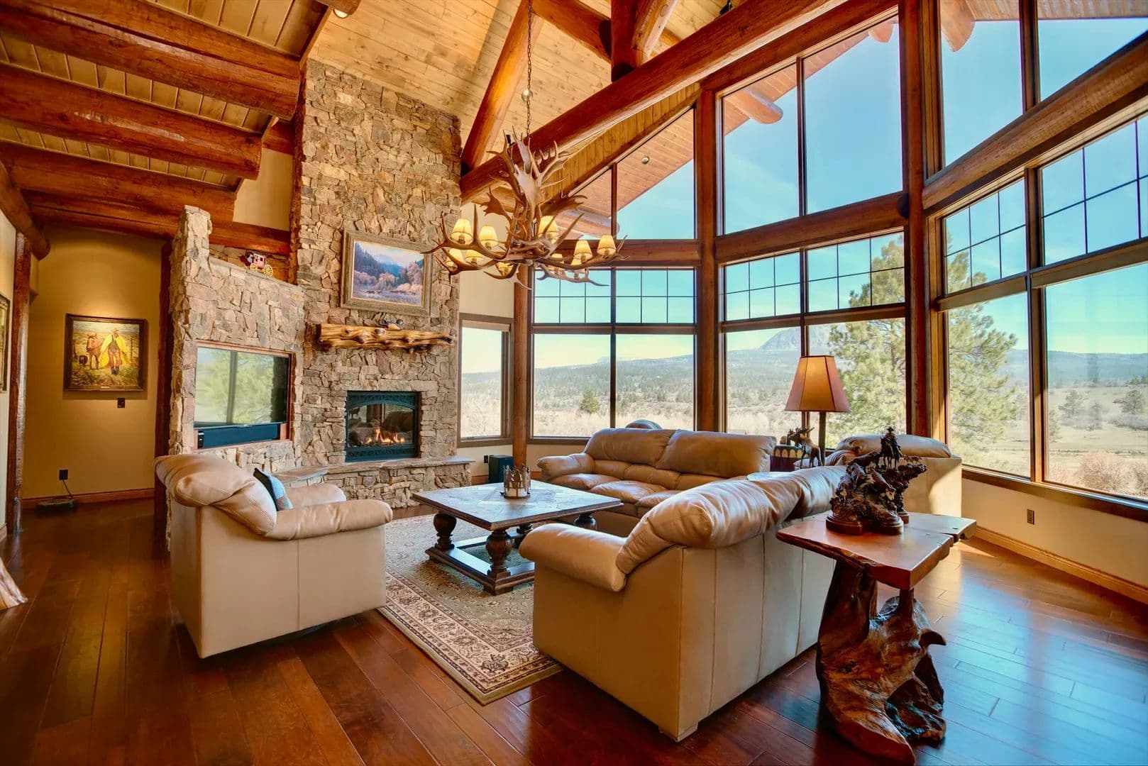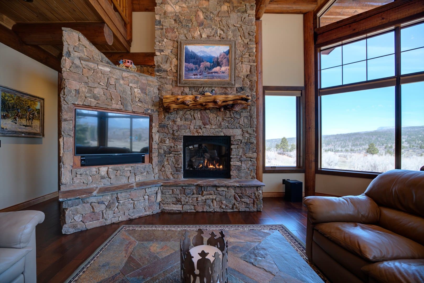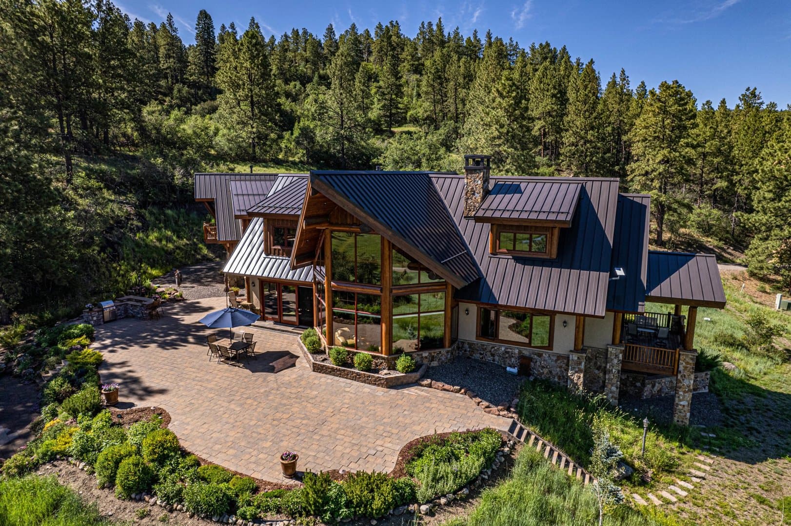 The timber frame and stone home was positioned to view the South San Juan Wilderness while also keeping an eye on the fenced and cross-fenced meadows for horses, cattle, elk, and deer, allowing for the most privacy imaginable. Master-level construction comes to mind with a huge great room featuring a 17’ Montana moss-rock fireplace complimenting the cathedral ceiling to maximize the Continental Divide views. Relax at the wine bar w/refrigerator while operating the “smart-system” technology which allows for the operation of the automatic shades, security cameras, doors, thermostats and in-floor radiant-heat systems.