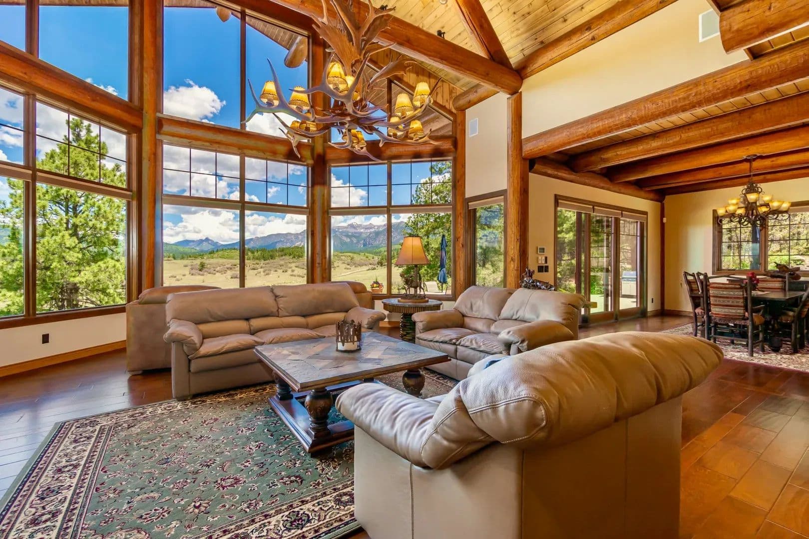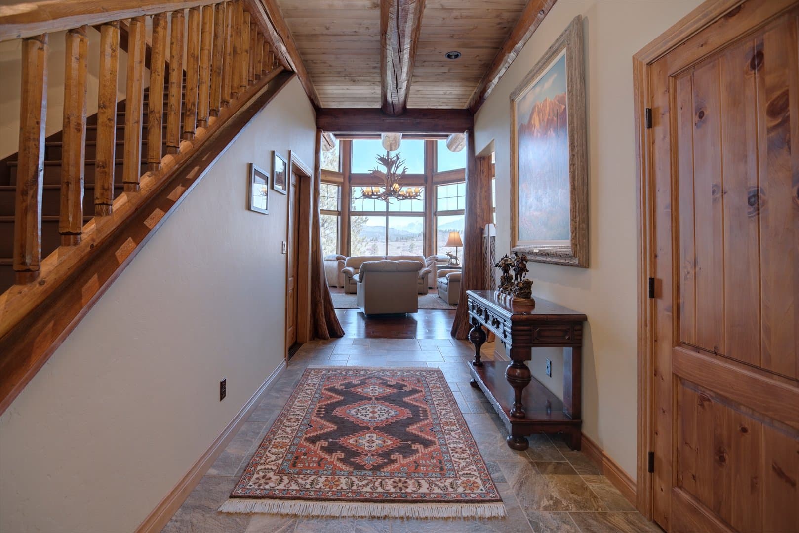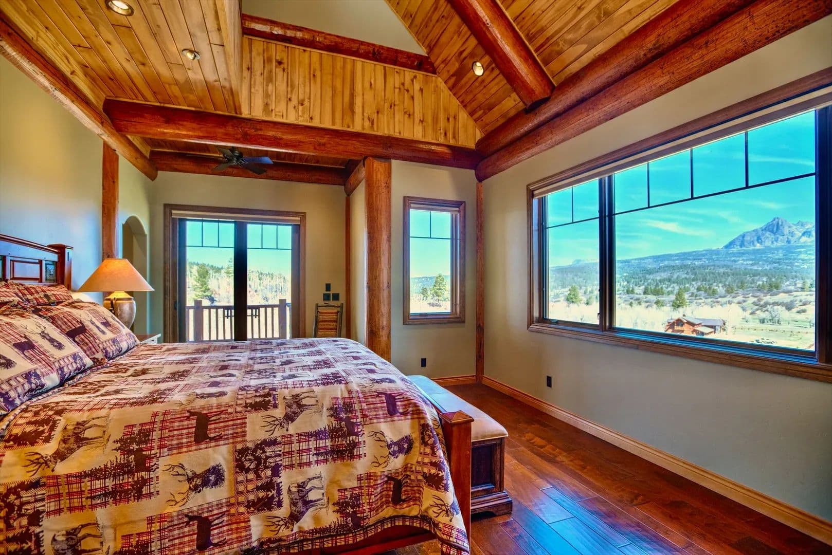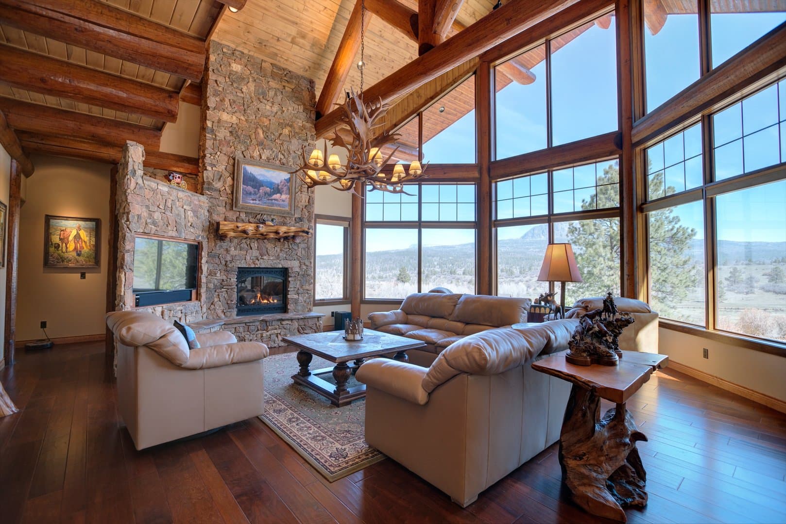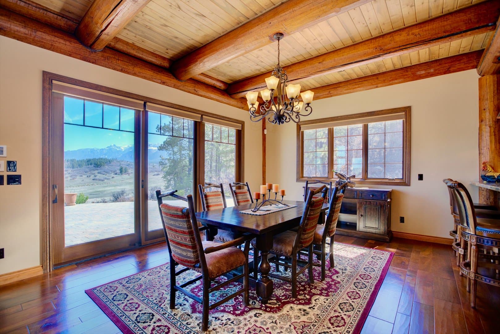 The timber frame and stone home was positioned to view the South San Juan Wilderness while also keeping an eye on the fenced and cross-fenced meadows for horses, cattle, elk, and deer, allowing for the most privacy imaginable. Master-level construction comes to mind with a huge great room featuring a 17’ Montana moss-rock fireplace complimenting the cathedral ceiling to maximize the Continental Divide views. Relax at the wine bar w/refrigerator while operating the “smart-system” technology which allows for the operation of the automatic shades, security cameras, doors, thermostats and in-floor radiant-heat systems.