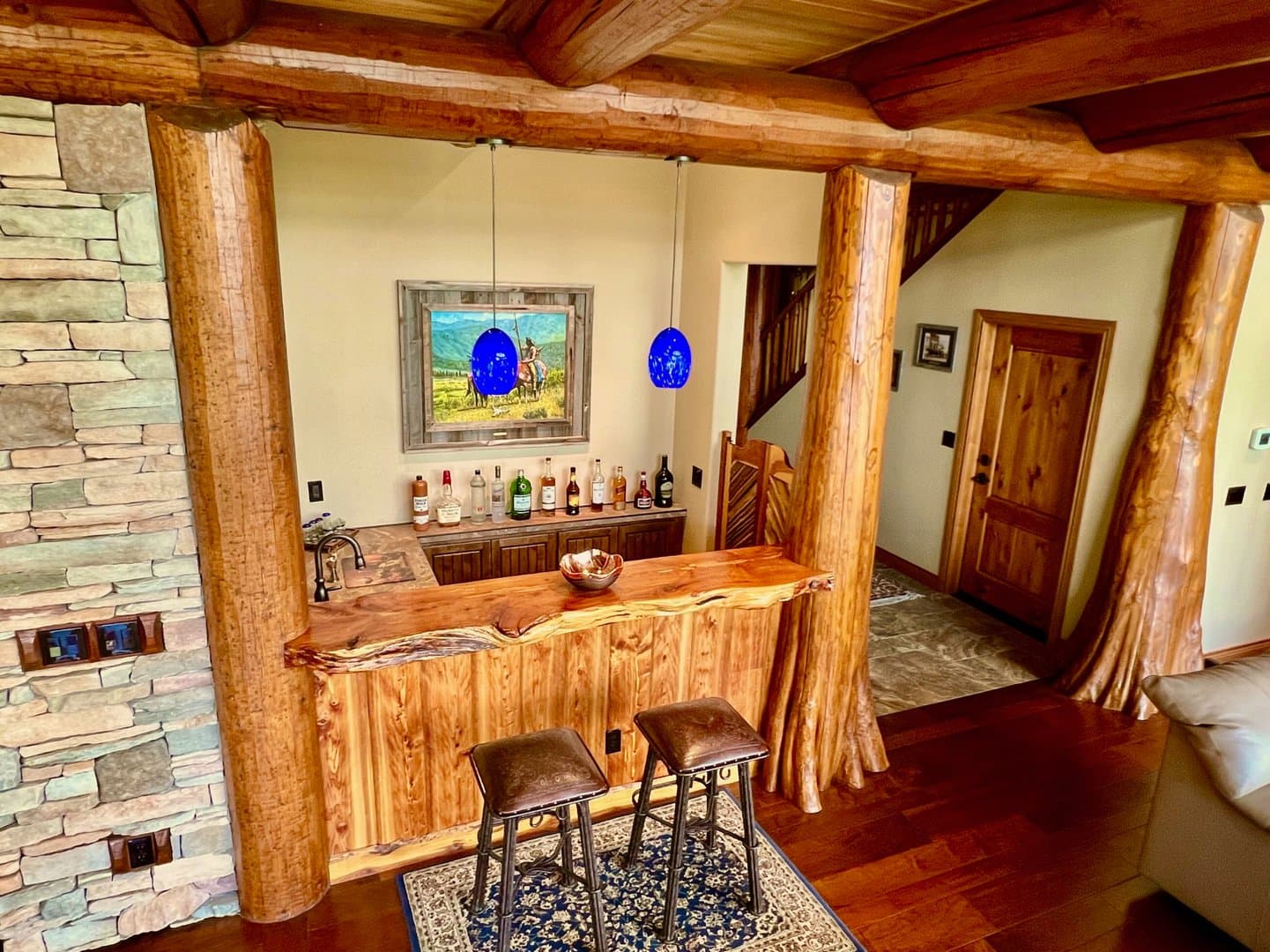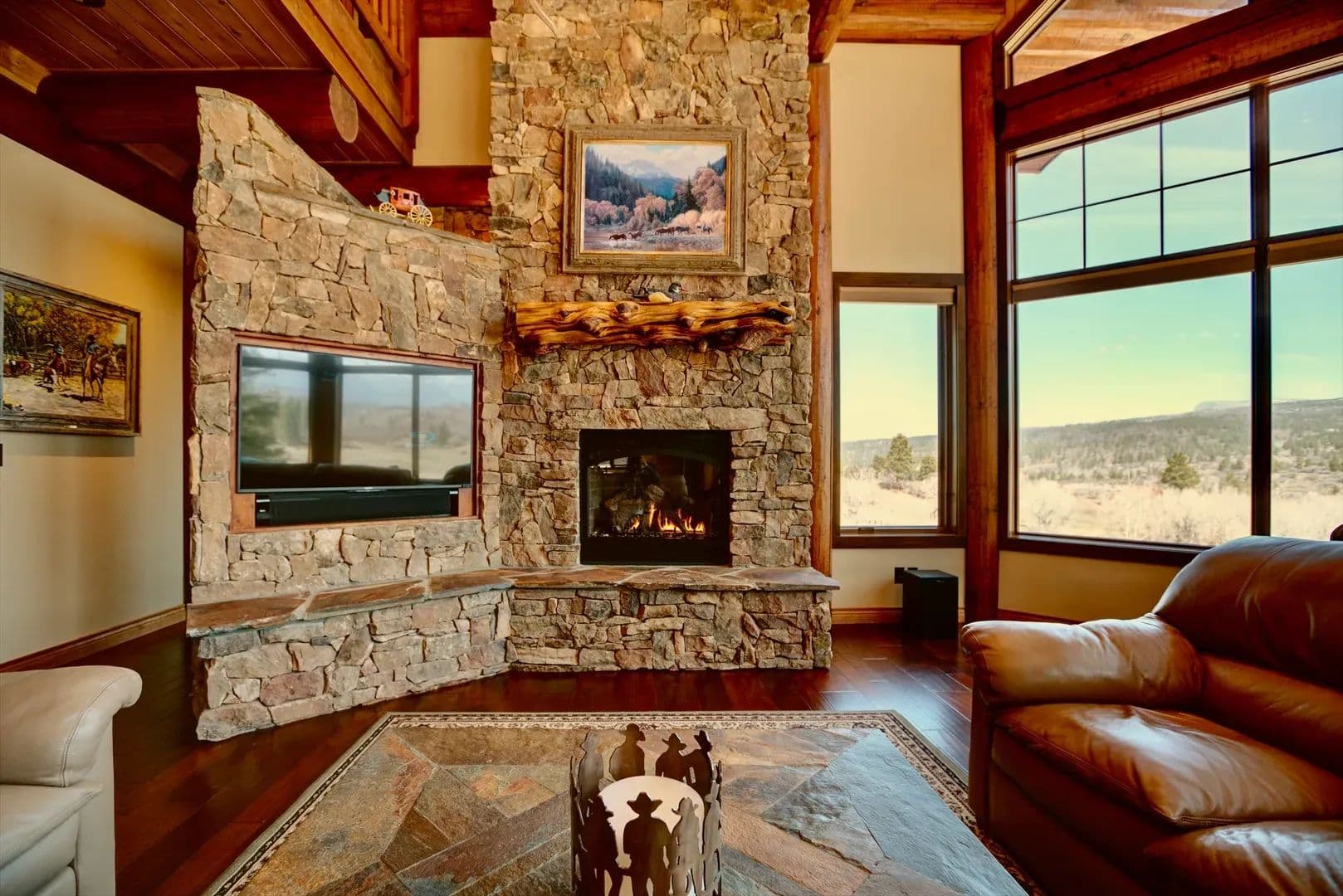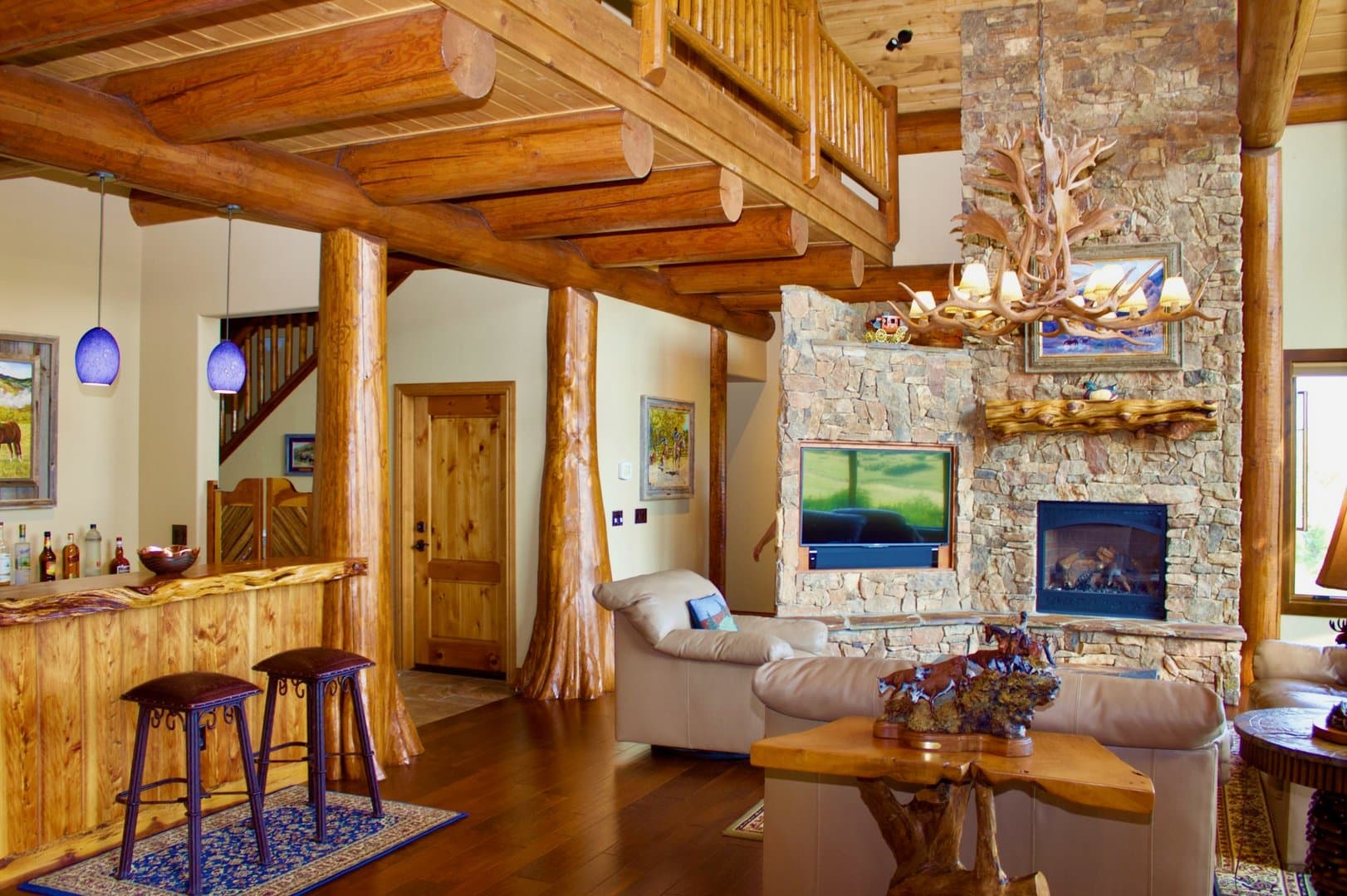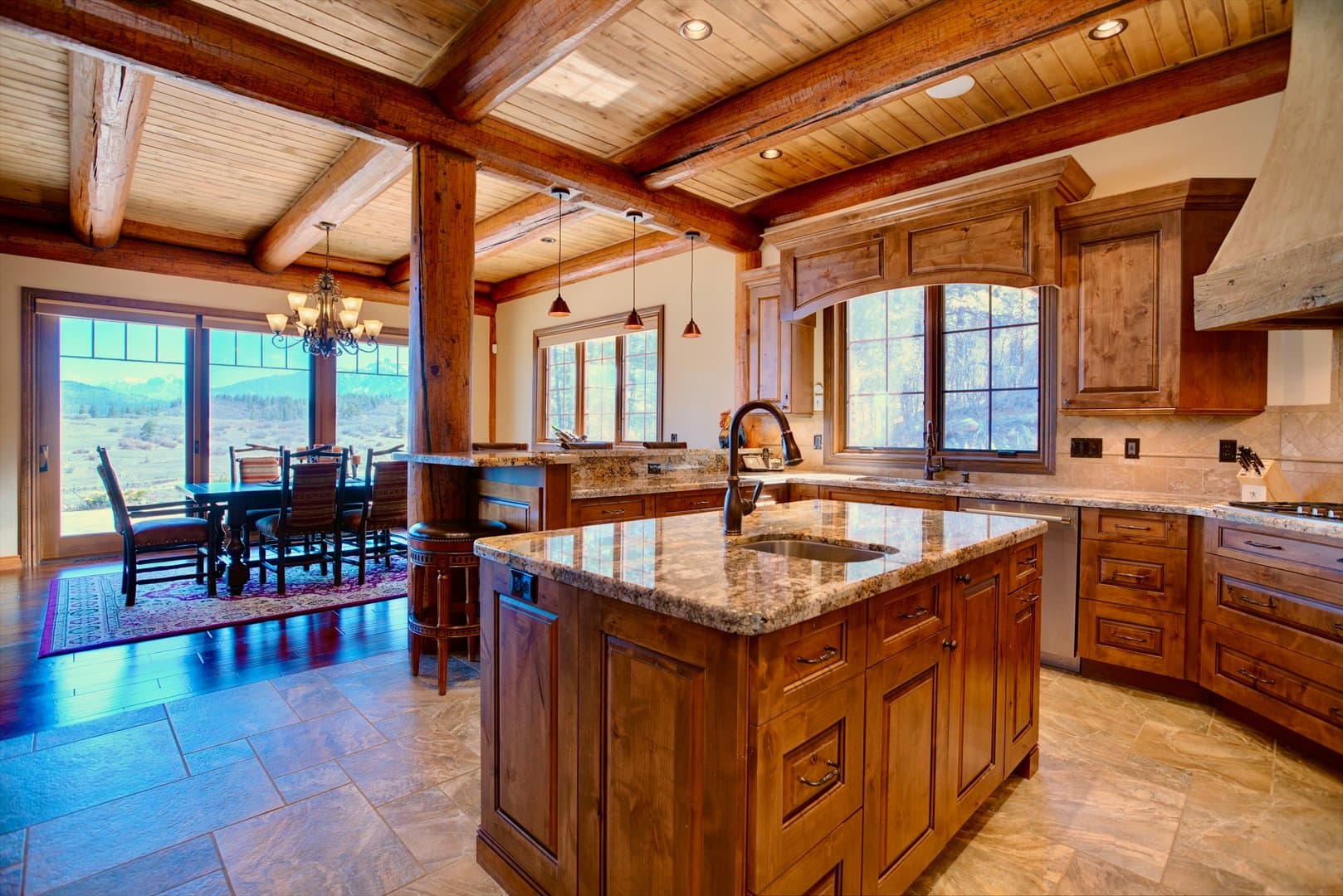 The timber frame and stone home was positioned to view the South San Juan Wilderness while also keeping an eye on the fenced and cross-fenced meadows for horses, cattle, elk, and deer, allowing for the most privacy imaginable. Master-level construction comes to mind with a huge great room featuring a 17’ Montana moss-rock fireplace complimenting the cathedral ceiling to maximize the Continental Divide views. Relax at the wine bar w/refrigerator while operating the “smart-system” technology which allows for the operation of the automatic shades, security cameras, doors, thermostats and in-floor radiant-heat systems.