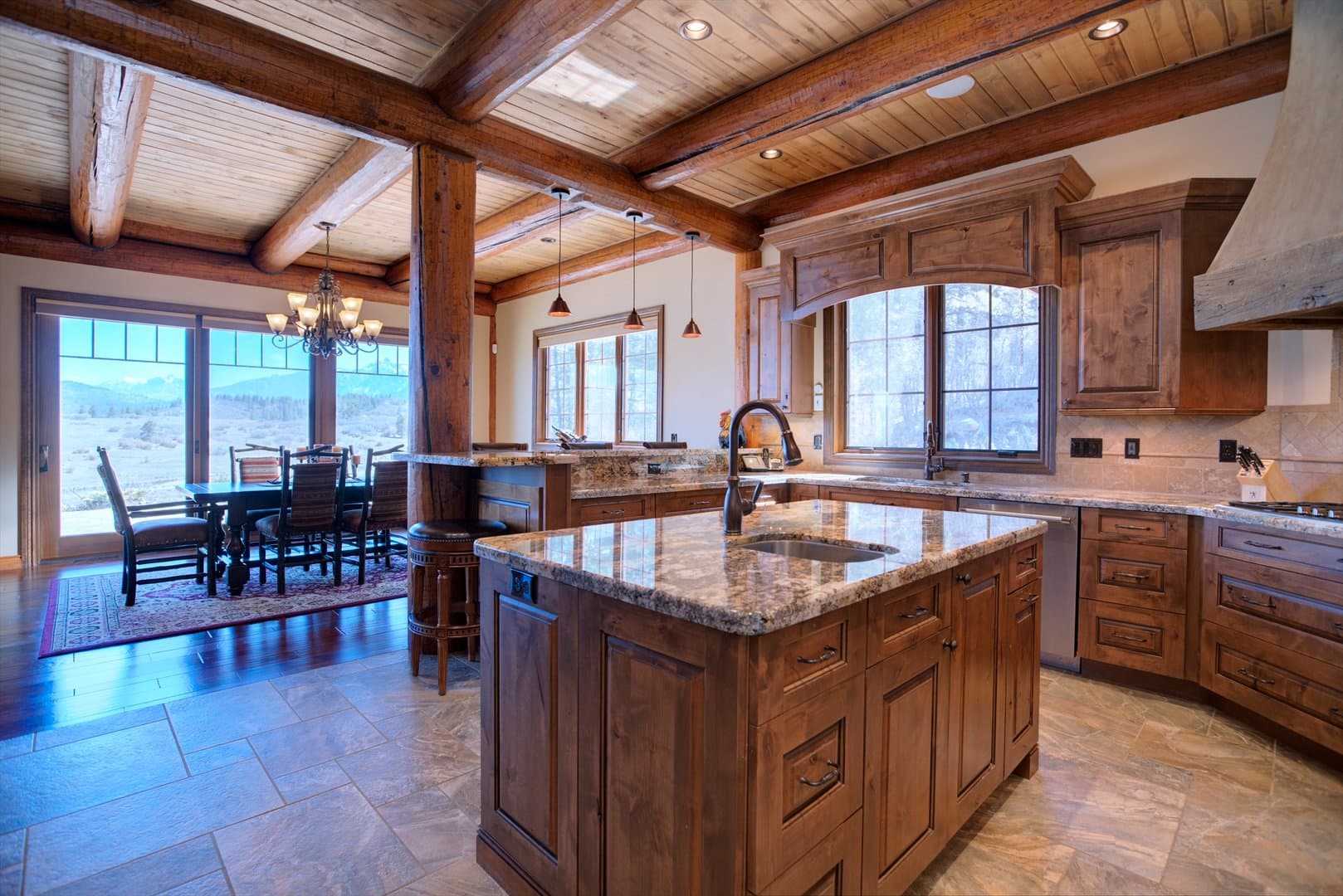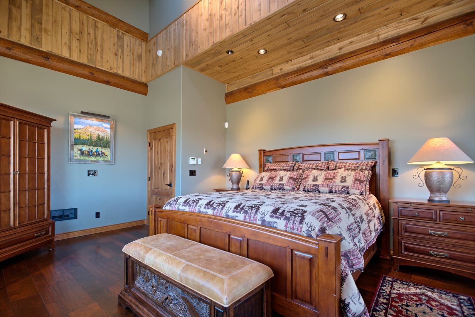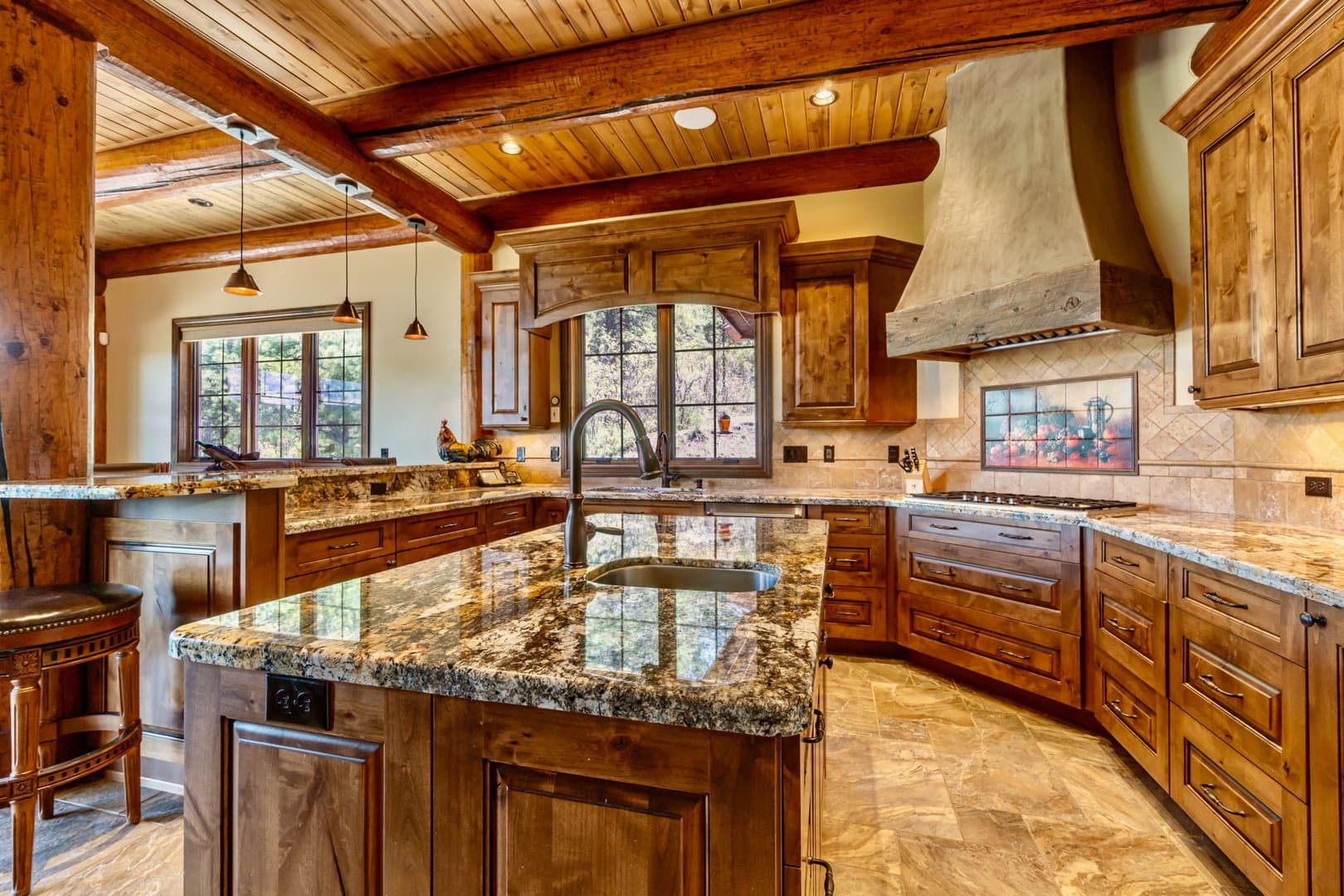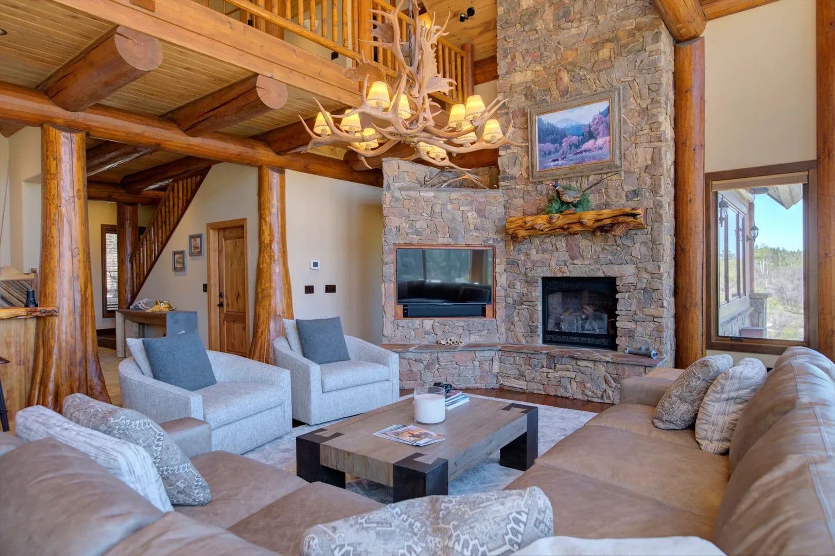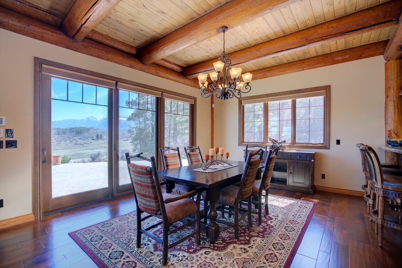 The timber frame and stone home was positioned to view the South San Juan Wilderness while also keeping an eye on the fenced and cross-fenced meadows for horses, cattle, elk, and deer, allowing for the most privacy imaginable. Master-level construction comes to mind with a huge great room featuring a 17’ Montana moss-rock fireplace complimenting the cathedral ceiling to maximize the Continental Divide views. Relax at the wine bar w/refrigerator while operating the “smart-system” technology which allows for the operation of the automatic shades, security cameras, doors, thermostats and in-floor radiant-heat systems.