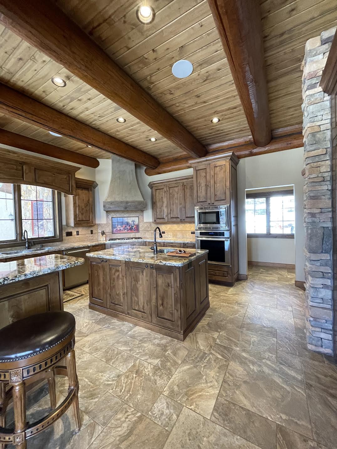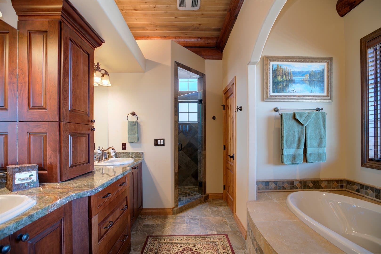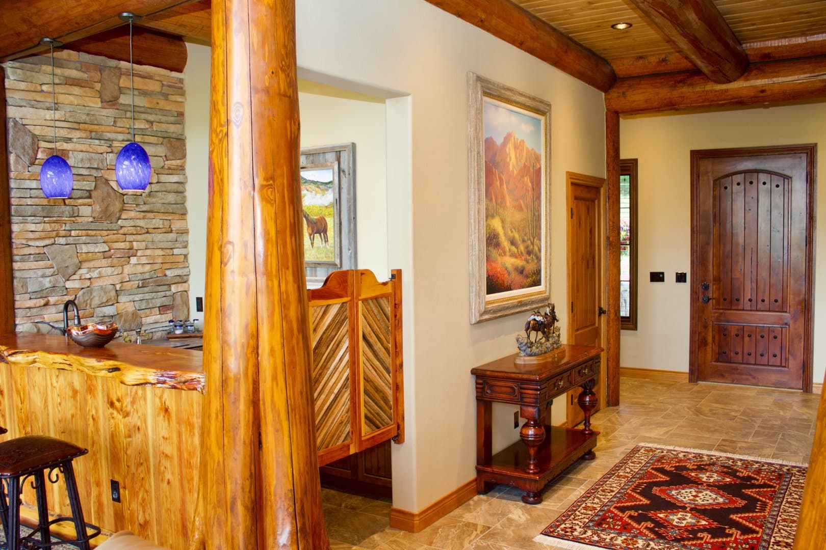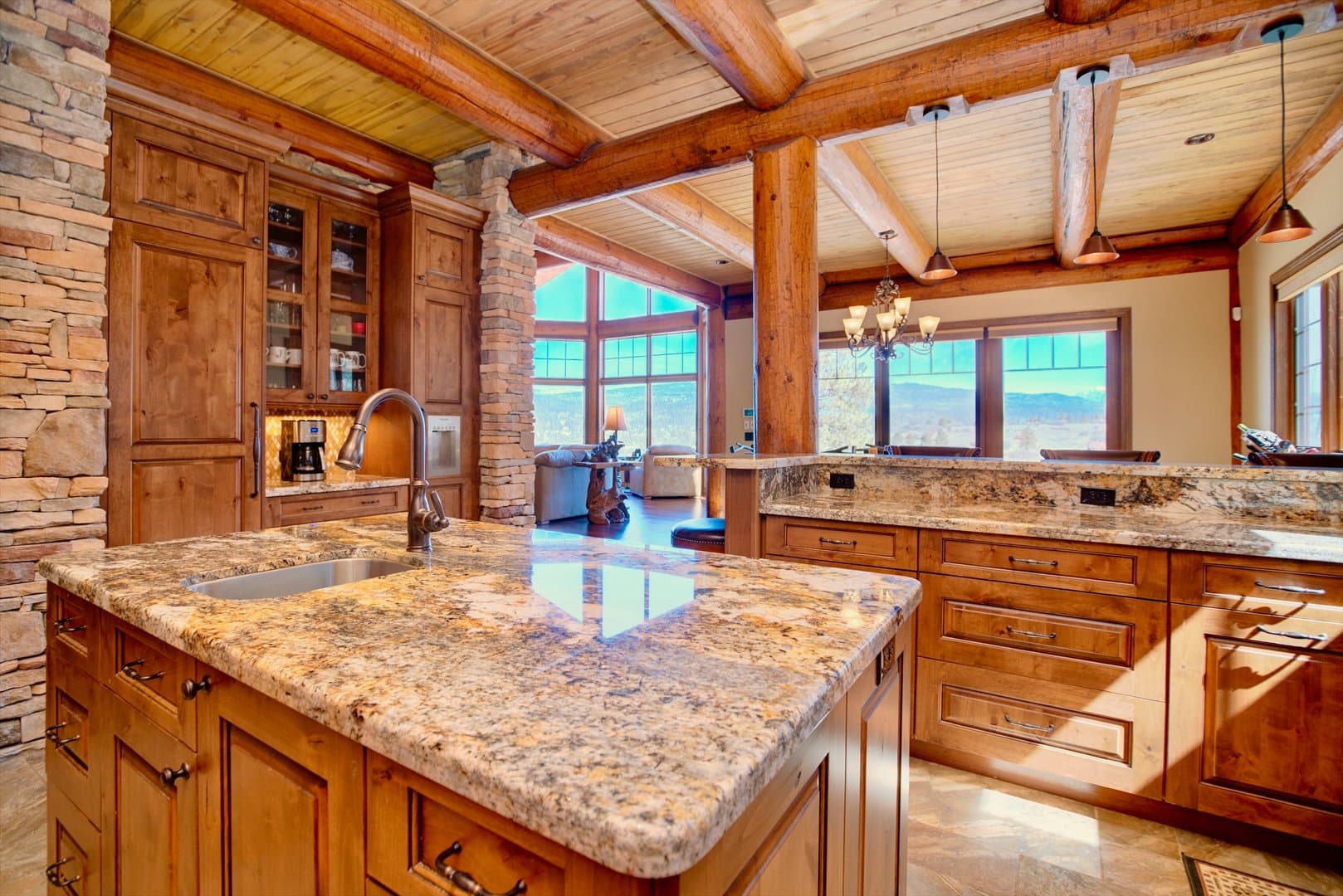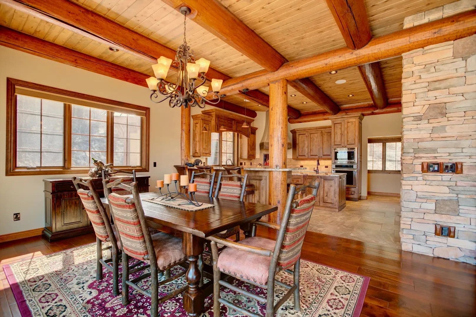 The timber frame and stone home was positioned to view the South San Juan Wilderness while also keeping an eye on the fenced and cross-fenced meadows for horses, cattle, elk, and deer, allowing for the most privacy imaginable. Master-level construction comes to mind with a huge great room featuring a 17’ Montana moss-rock fireplace complimenting the cathedral ceiling to maximize the Continental Divide views. Relax at the wine bar w/refrigerator while operating the “smart-system” technology which allows for the operation of the automatic shades, security cameras, doors, thermostats and in-floor radiant-heat systems.