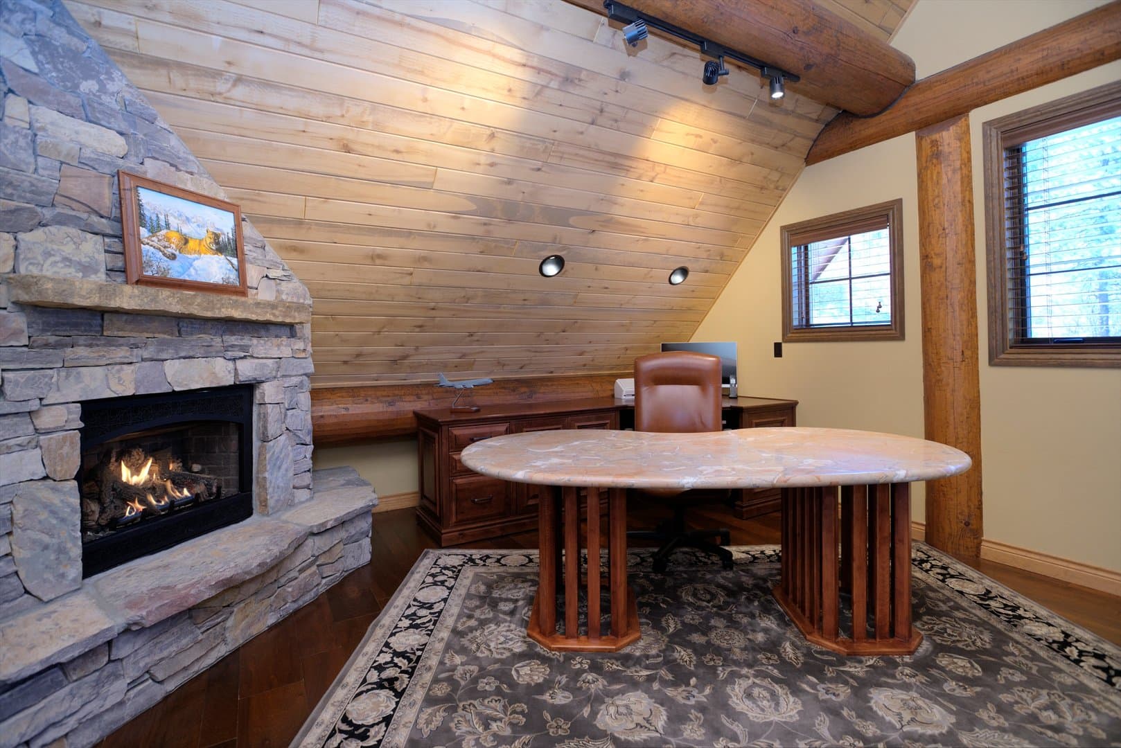 The master suite enjoys its own private deck overlooking the pond. The upstairs private office includes a fireplace, workout area and home theatre. It’s perfect for those that want to work from home and is ready for your personally designed equipment. Starlink is the current internet service.