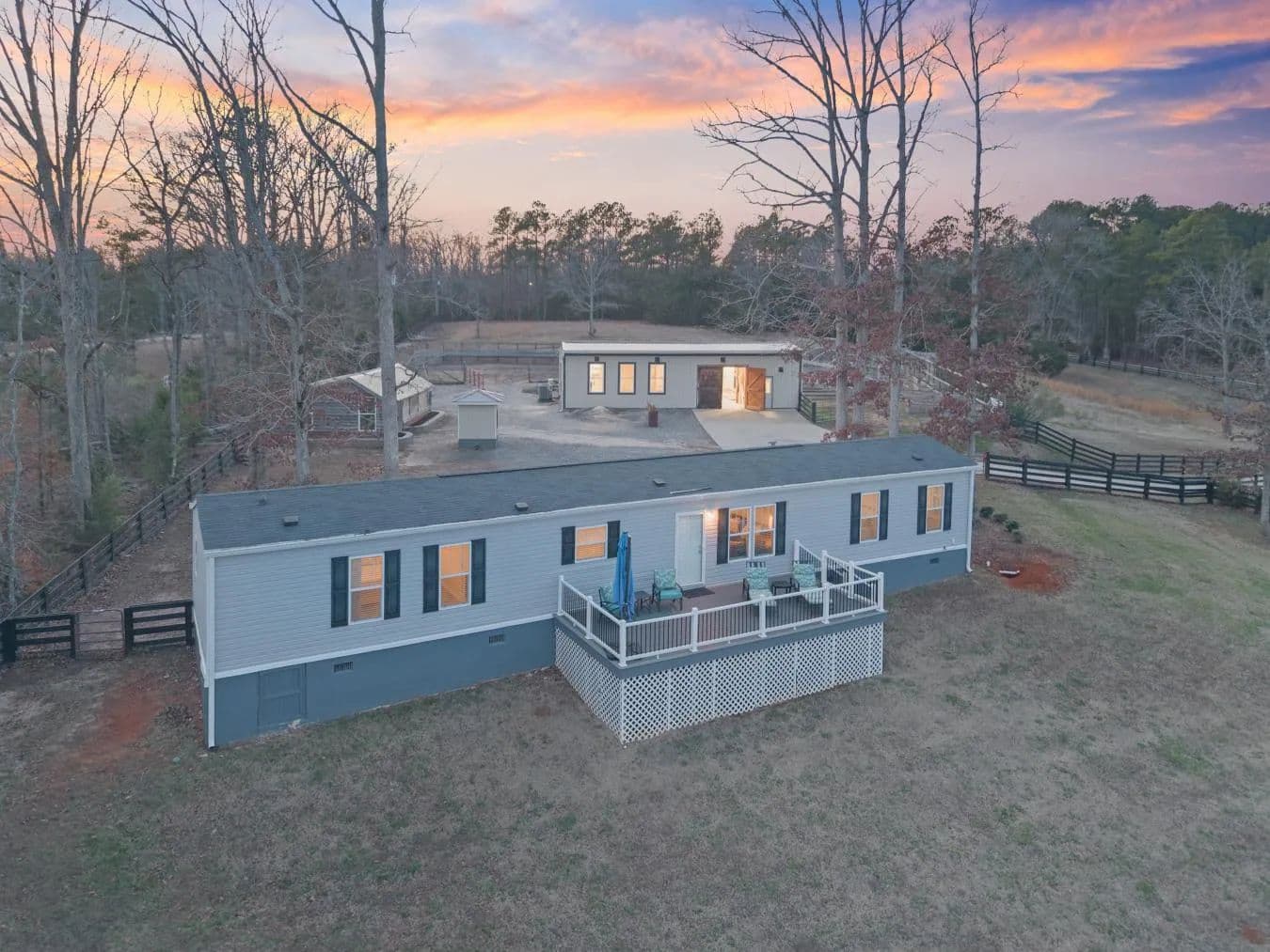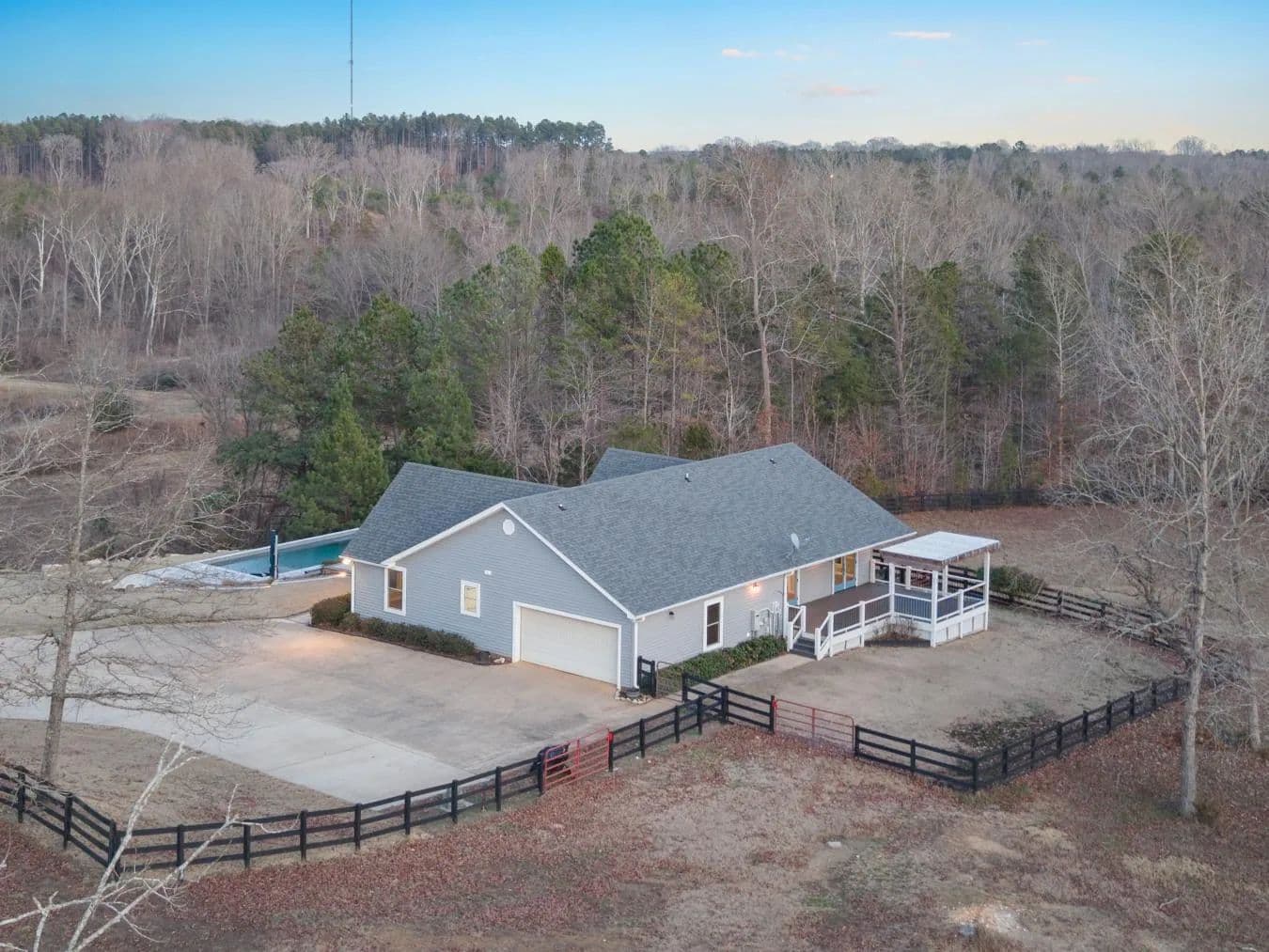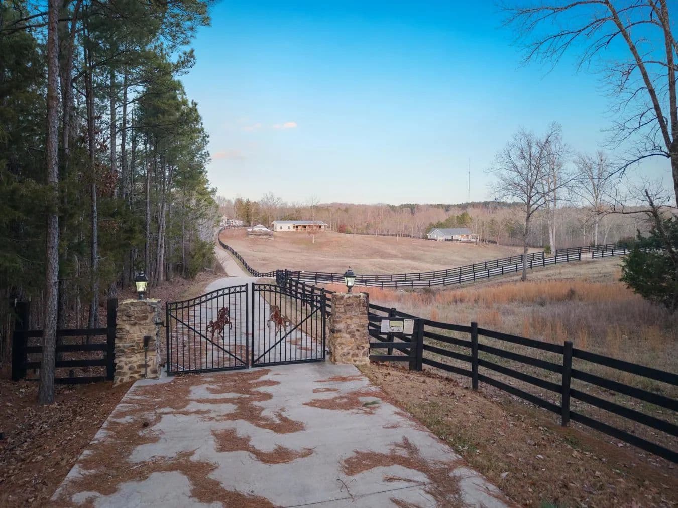 Set on 12.8 rolling acres with sweeping views of Lake Caldwell, this equestrian estate is the total package-designed for horse people who want it all. Ride, train, and entertain from your own backyard with a 60' x 120' arena, a 4-stall barn with power, water, and front and rear overhangs, plus ample tractor and equipment storage. The main home overlooks the lake with a heated saltwater pool that serves up sunset views that never get old. A 1,200 sq ft guest house offers ideal space for trainers, caretakers, multigenerational living, or income potential. The massive climate-controlled workshop steals the show-complete with an entertainment room and kitchenette overlooking the arena (because watching horses work is half the joy). Add in a boathouse and dock, gated entry, fully concrete drive, stunning greenhouse, and raised garden beds-and you've got a property that works as hard as you do while living like a private retreat. Train at home. Entertain in style. Live the farm life without compromise. This is the kind of place equestrians wait years to find.