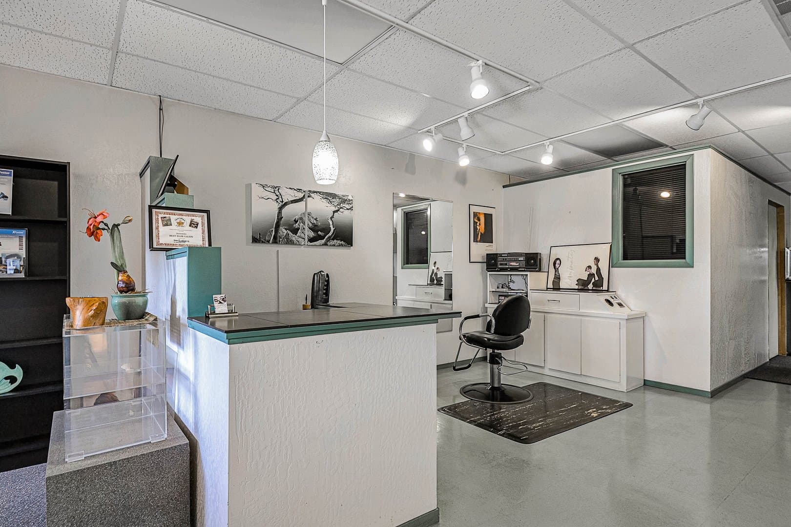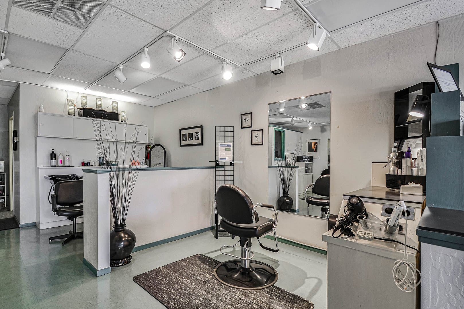 has four separate units, three at 800 sqft and the largest 4250 sqft with an attached roll up door and loading dock. Tenants and their clientele will find plenty of parking in the huge private paved lot directly off of Hwy 49. Each unit has their own bathroom and heat/air. Currently three of the four units have tenants, the available unit is 800 sqft which is currently designed as a full service 2 station salon, salon trade fixtures can transfer with the sale of property.