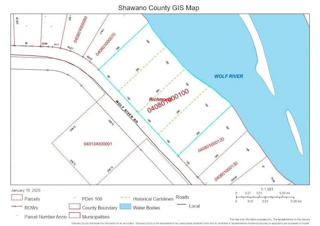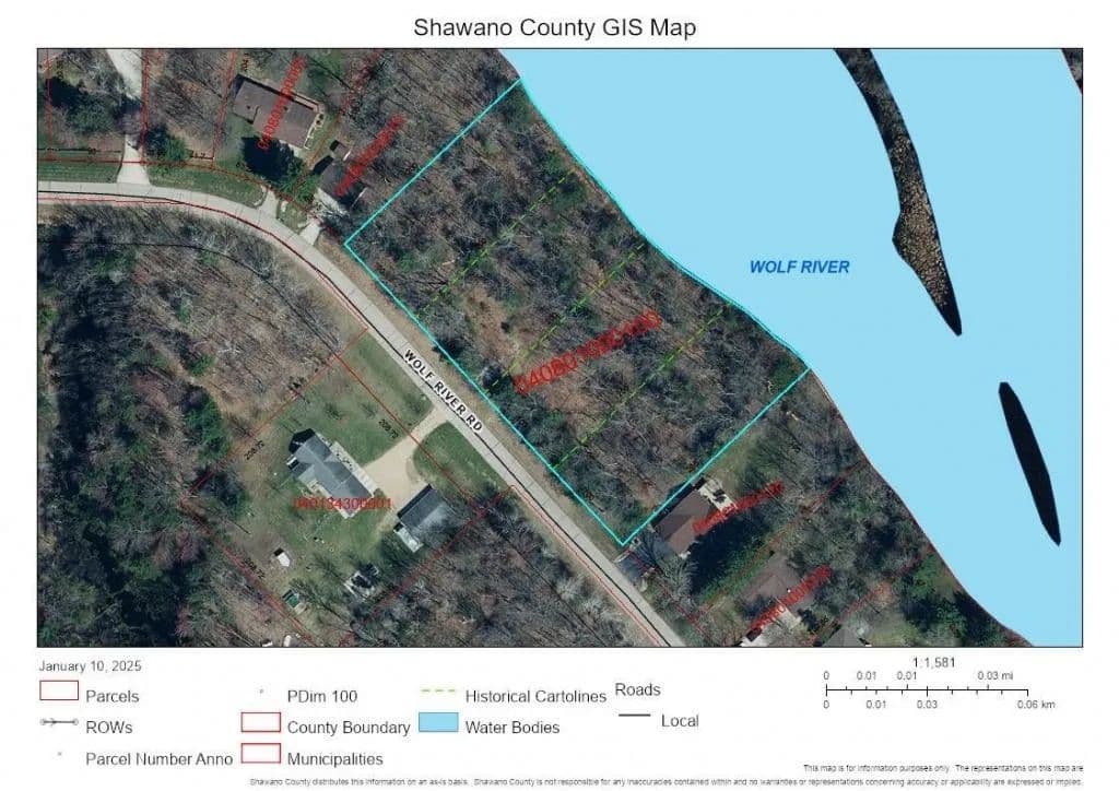 Wolf River Vacant lot with access to Shawano Lake!!! Great opportunity at one of the few building lots available on the Wolf River. Almost 2 acres with approximately 400 ft. of water frontage and creek running through the property. Property does have some wet areas, but is buildable. Bring your creative mind to create a one of a kind parcel.