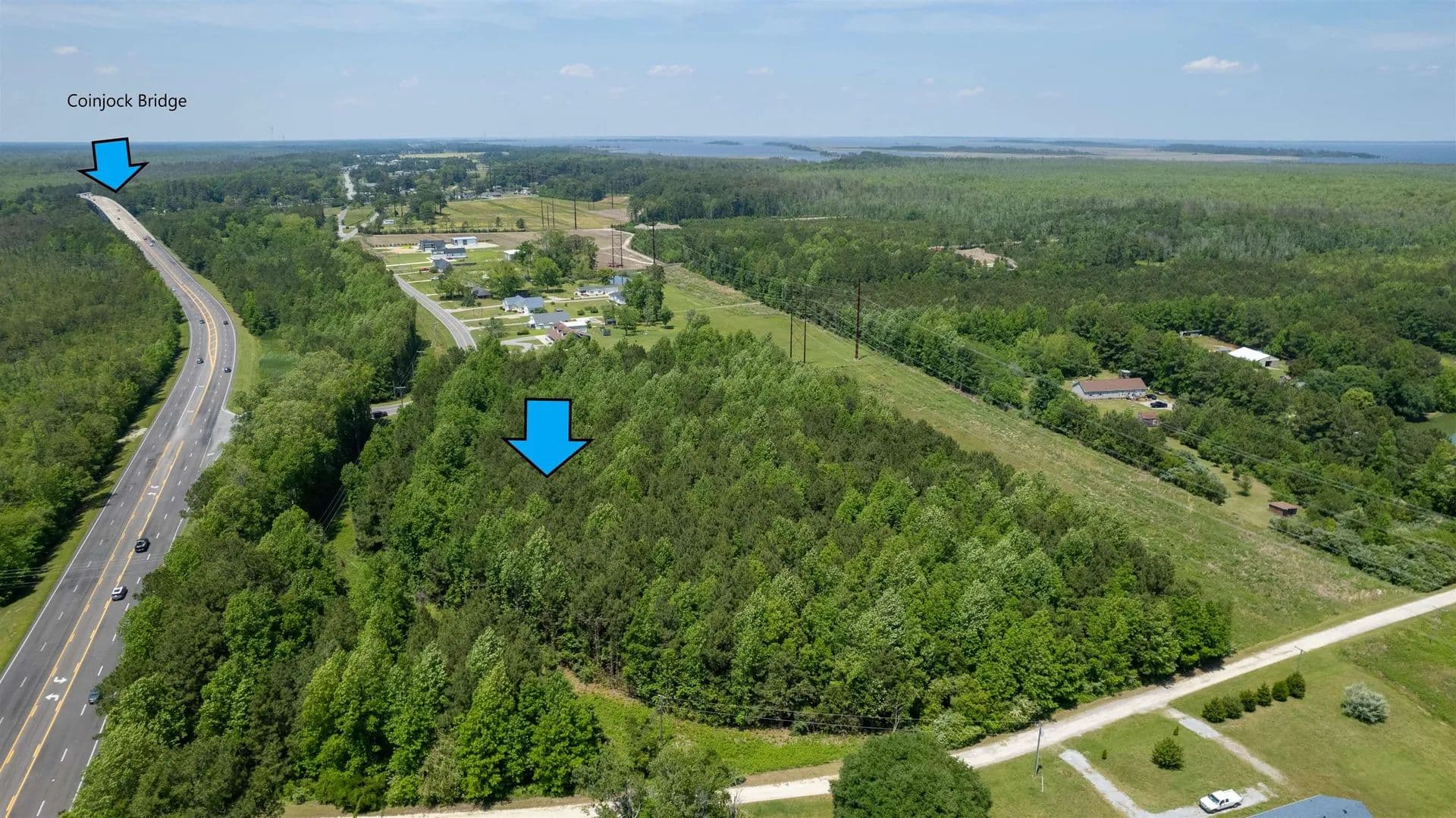 Opportunities Abound in this high traffic area by the Coinjock Bridge. Over 6 acres zoned General Business. Some day, service road to new bridge may run along this area, a great opportunity for catching tourist traffic! See multiple documents, maps and information in the listing for more details. UPDATE: NCDOT has notified Seller that there is a possibility that the property could have a service road coming through that would split the acreage. Working to confirm if this is actually an approved project and if so, when. See last map in associated docs.