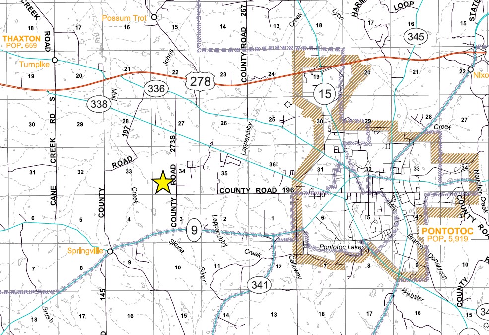Lot 13 of Chickasaw Meadows, an established residential subdivision in Pontotoc County, Mississippi, containing +/- 10.75 acres. This large, beautiful lot is wooded with pine and young hardwood understory, and offers privacy and room to roam. With access from Chickasaw Trail Road, a 60 foot wide gray rocked road, this property is easily accessed. Water, electricity and gas are available. This property offers the tranquility of country living, with city amenities only 6 miles away at Pontotoc. Oxford and Tupelo, Mississippi are located within 30 miles or less, while New Albany, Mississippi is only 21 miles away. Take a look at this lot today – it’s waiting for you and your dream home!