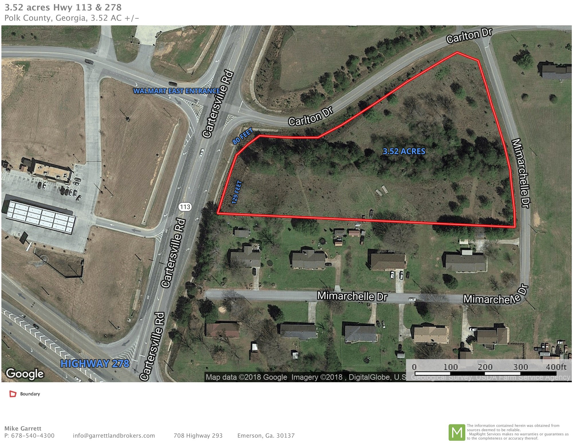 3.52 acres located at the main retail intersection in Rockmart at Highway 278 & Hwy 113. All utilities available. Property is zoned C-2 Neighborhood Commercial in the City of Rockmart. The property is situated across from the WalMart Supercenter and conveniently near all other commercial entities in Rockmart. This area would support a hotel, medical offices, freestanding retail and more.