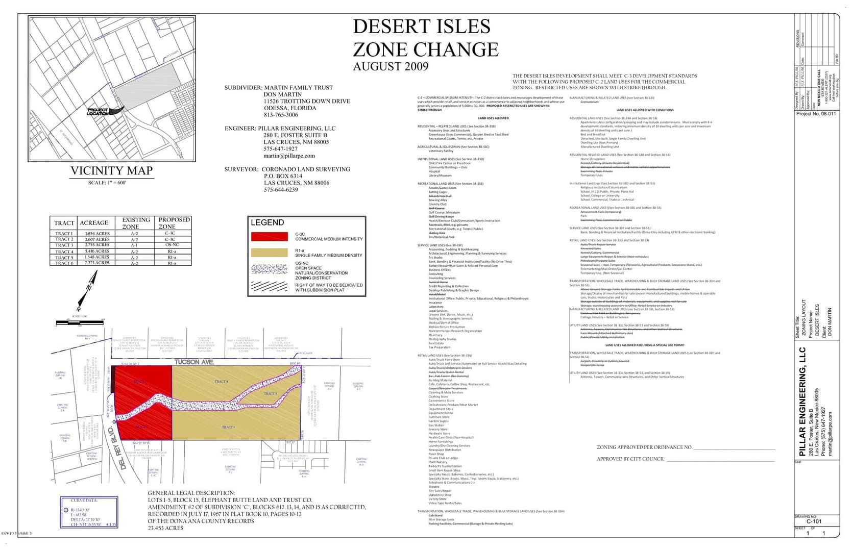 SUBDIVISION DEVELOPMENT OPPORTUNITY! Location, location, location - convenient and central to both commercial services and residential subdivisions! This raw land parcel is chock full of potential and has flexibility within the many scenarios of opportunity it provides! It was once a previously-approved residential subdivision named Desert Isles, consisting of 69 lots, approximately 1/3-acre in size. Potential development as a townhouse subdivision utilizing 145 lots has also been discussed. Drive by and take a tour at the corner of Del Rey Blvd and Tucson Avenue (on East side of Del Rey).