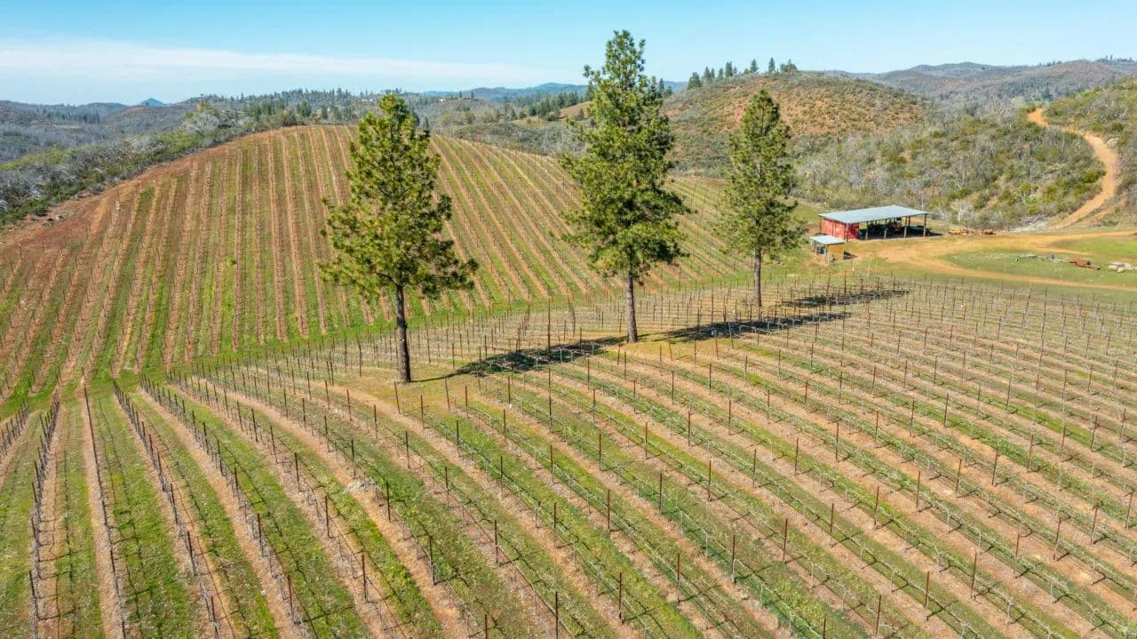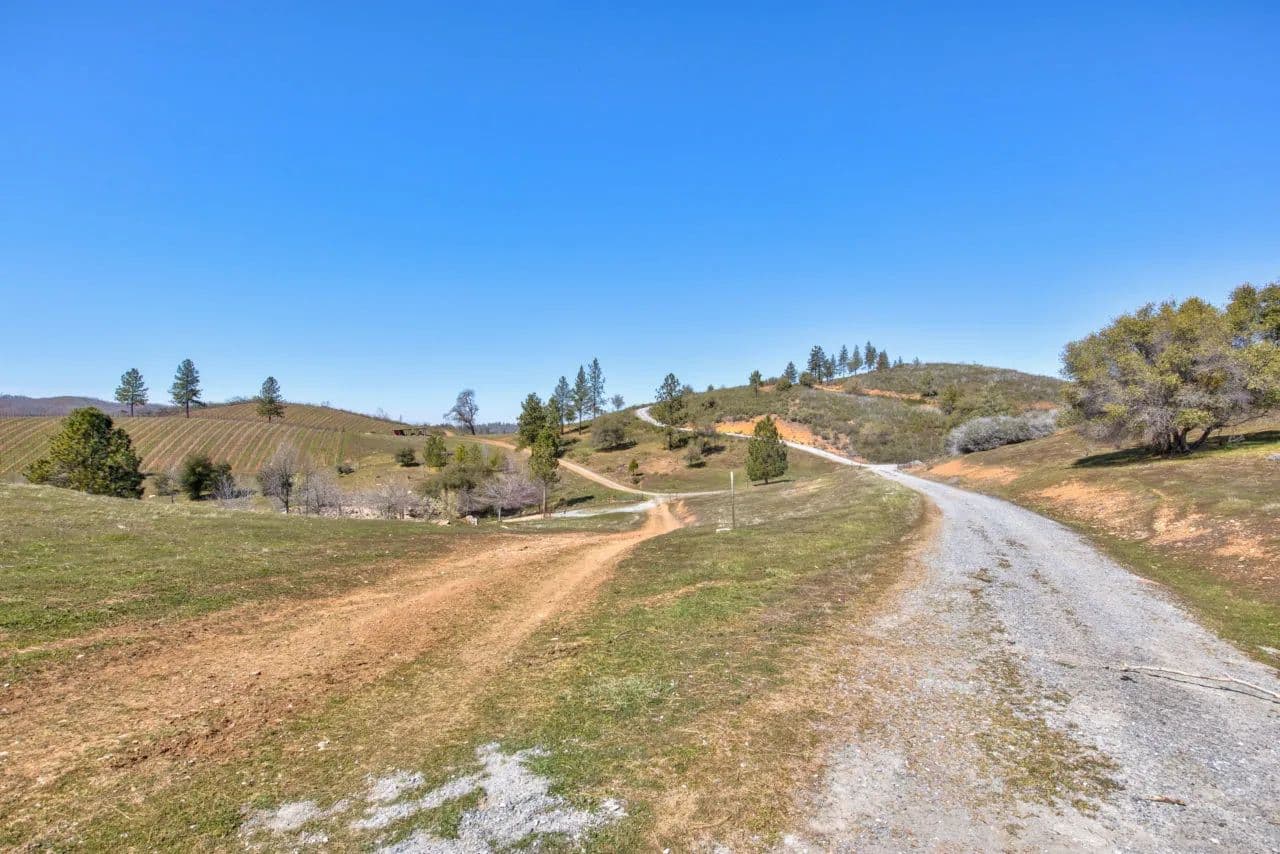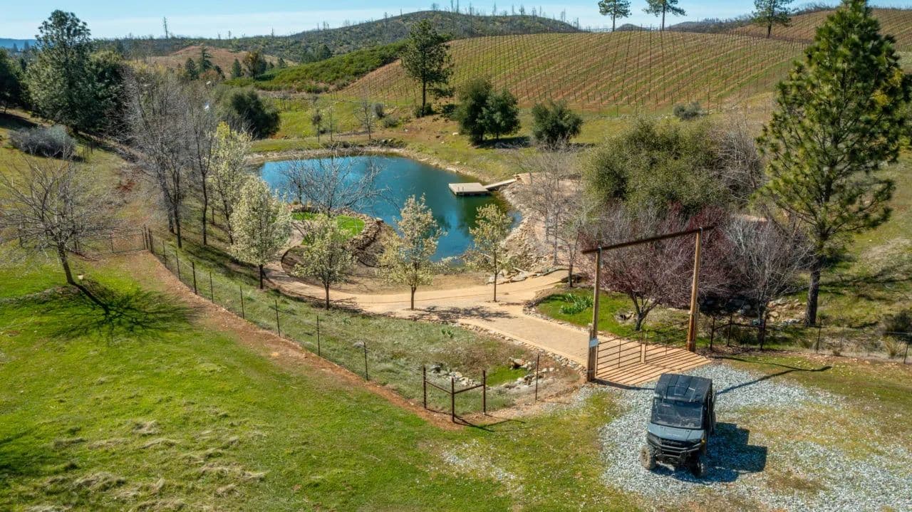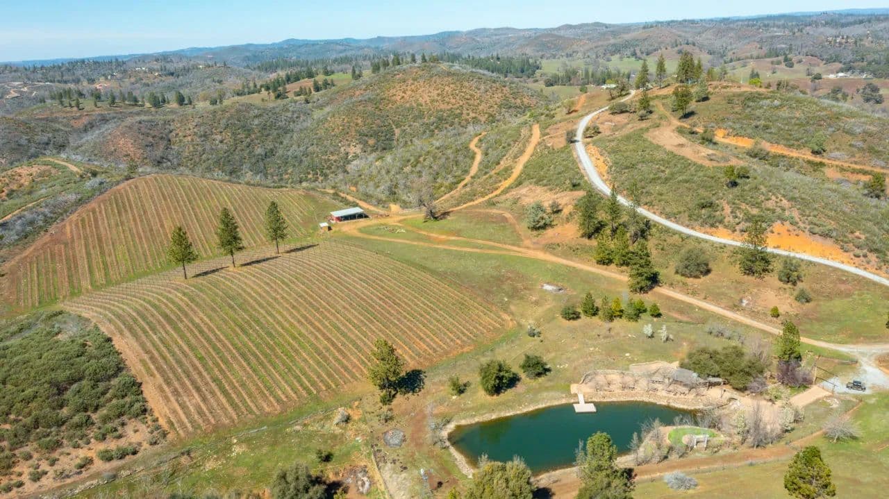 Welcome to Tailem Bend Ranch & Vineyard, a rare and breathtaking 126-acre estate just 1 mile from Mountain Ranch, CA offering both natural beauty and investment potential in the thriving wedding and event industry. This exceptional property is the ideal canvas for a high-end wedding venue, retreat center, or boutique winery experience. At its heart lies a serene private pond and 5 acres of flourishing, Zinfindel Grapes. It sets a romantic stage for unforgettable gatherings. The vineyard not only enhances the ambiance but offers exciting potential for private label wine or tasting experiences adding value and a unique draw for event clients. Surrounded by rolling hills, with 360 degree views, mature oaks, and the tranquil flow of El Dorado Creek, Tailem Bend delivers the peaceful seclusion yet is conveniently located just 1.5 hours from Sacramento and 2.5 hours from the Bay Area, making it easily accessible. Already equipped with strong infrastructure including multiple building sites, a large pole barn, sheds, three wells, two septic systems, and RV hookups. Teeming with wildlife for those who hunt with 2 miles of fencing for pasture. PGE is on site and the property is in the Williamson Act. Tailem Bend offers unmatched versatility, natural beauty, and income potential.