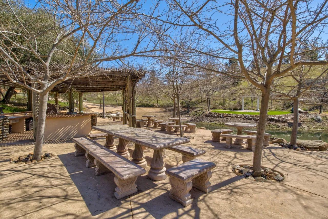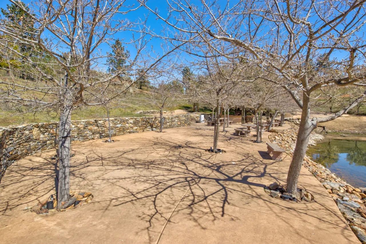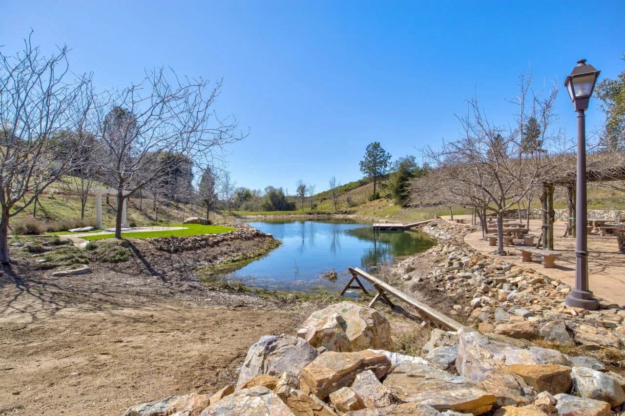 Welcome to Tailem Bend Ranch & Vineyard, a rare and breathtaking 126-acre estate just 1 mile from Mountain Ranch, CA offering both natural beauty and investment potential in the thriving wedding and event industry. This exceptional property is the ideal canvas for a high-end wedding venue, retreat center, or boutique winery experience. At its heart lies a serene private pond and 5 acres of flourishing, Zinfindel Grapes. It sets a romantic stage for unforgettable gatherings. The vineyard not only enhances the ambiance but offers exciting potential for private label wine or tasting experiences adding value and a unique draw for event clients. Surrounded by rolling hills, with 360 degree views, mature oaks, and the tranquil flow of El Dorado Creek, Tailem Bend delivers the peaceful seclusion yet is conveniently located just 1.5 hours from Sacramento and 2.5 hours from the Bay Area, making it easily accessible. Already equipped with strong infrastructure including multiple building sites, a large pole barn, sheds, three wells, two septic systems, and RV hookups. Teeming with wildlife for those who hunt with 2 miles of fencing for pasture. PGE is on site and the property is in the Williamson Act. Tailem Bend offers unmatched versatility, natural beauty, and income potential.