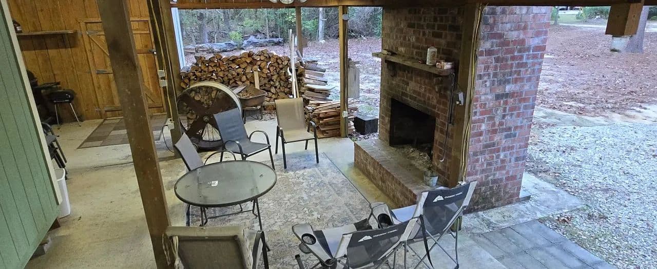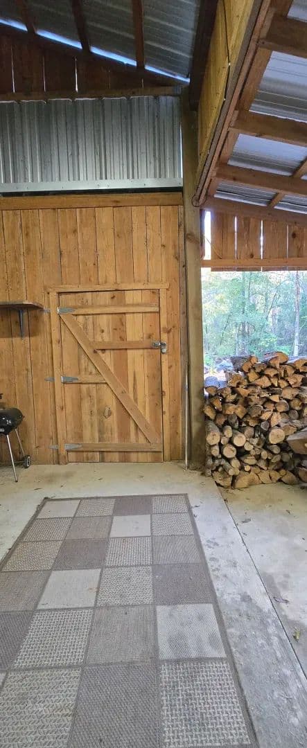 handles overflow gear and yard items. The oversized carport offers covered parking for both a