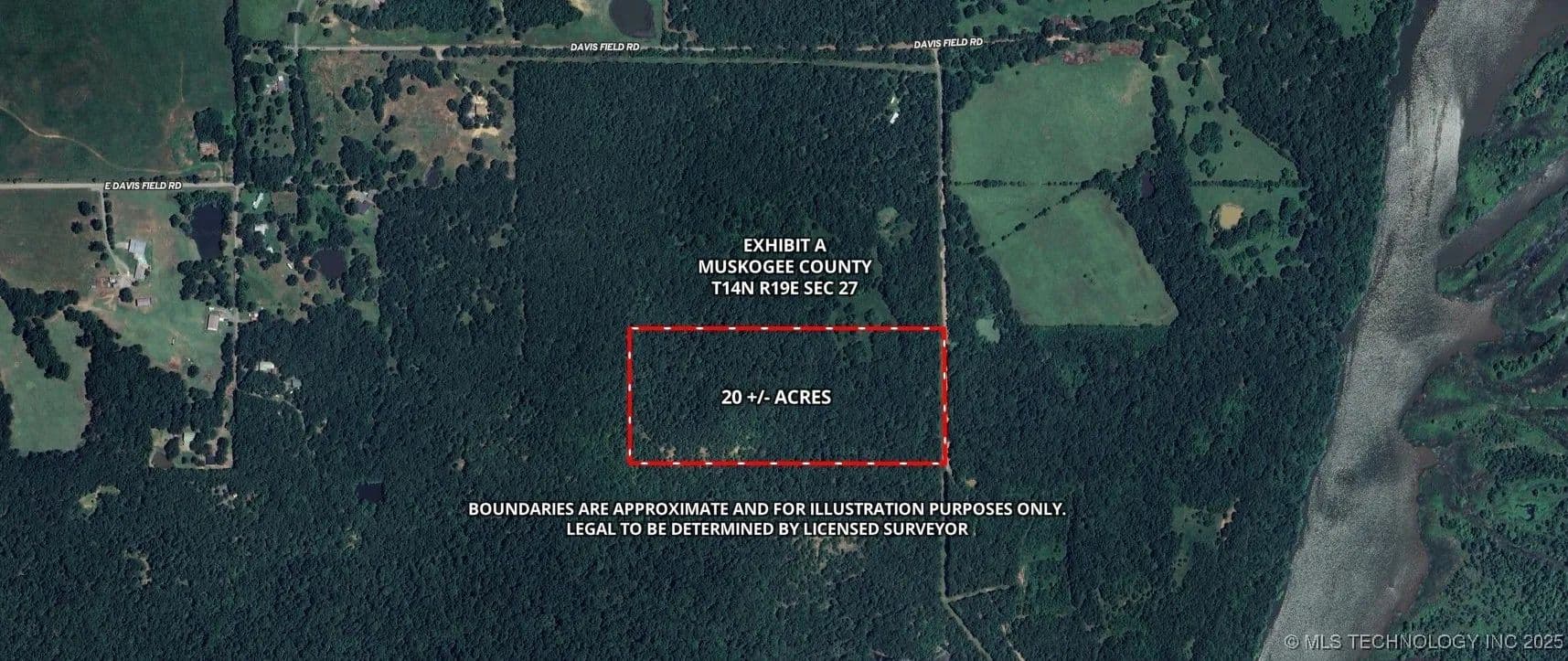 MARVELOUS 20 +/- ACRES OF PRISTINE LAND--LESS THAN 1/2 MILE FROM THE ARKANSAS RIVER AND JUST 7 MILES FROM DOWNTOWN MUSKOGEE AND ALL ITS CONVENIENCES, INCLUDING WALMART, LOWE'S, BUFFALO WILD WINGS, CHICK-FIL-A, AND MUCH MORE! This impressive 20 +/- acre property is a hunter's dream, positioned southeast of Muskogee, near the banks of the Arkansas River. Mature trees, interspersed clearings, and immediate water access create an ideal habitat for abundant wildlife and big game, making it an excellent hunting or recreational site. Its prime location offers unparalleled convenience, situated only 2 miles from the Muskogee Turnpike, 8 miles from HWY 69, and just 12 miles from I-40.