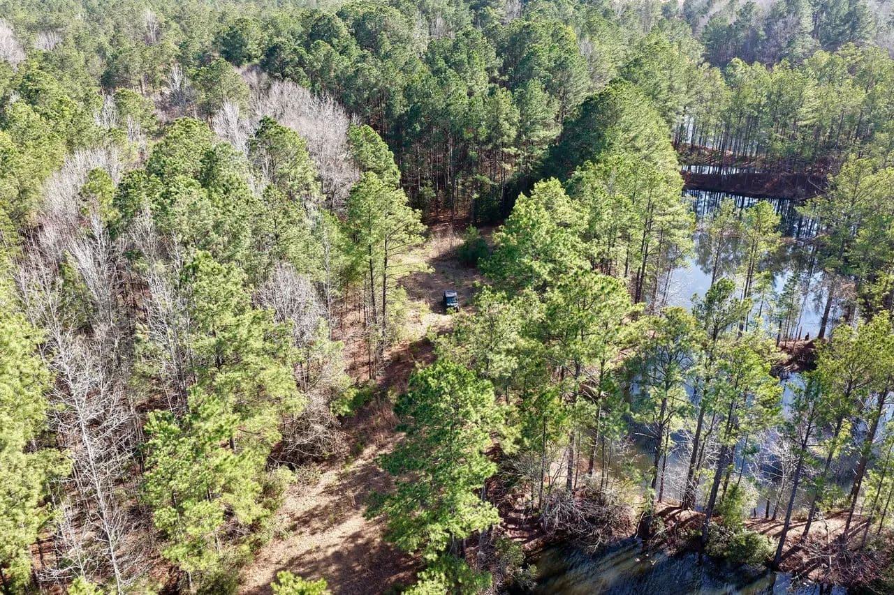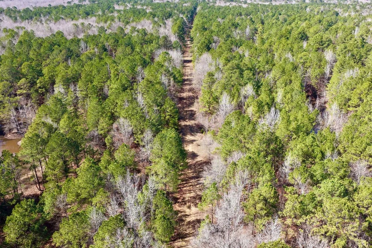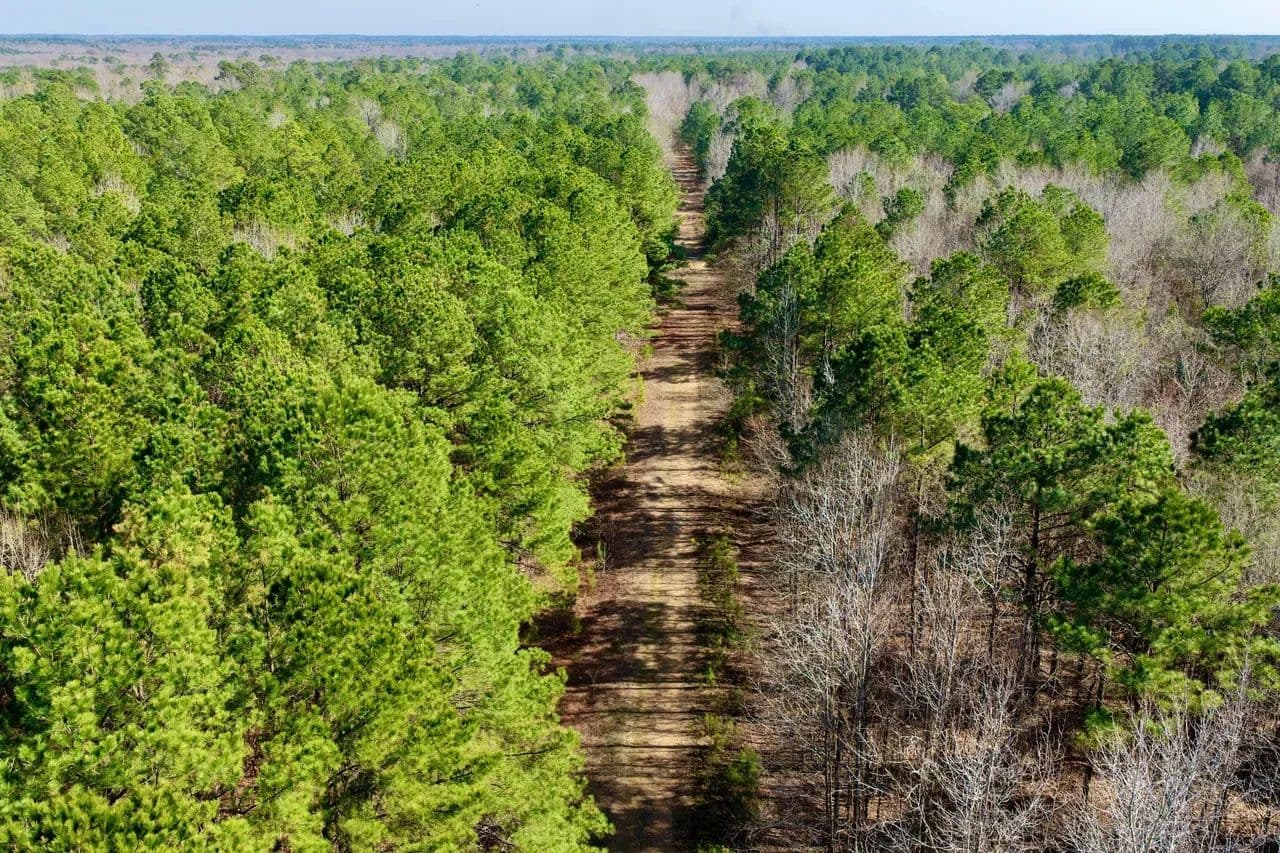 The ranch is predominantly wooded in a productive mix of pine and mature hardwoods, with approximately 40 feet of gentle elevation change across the tract. A well-established internal road system provides reliable access throughout, making the property easy to navigate for hunting, land management, or future improvements. Paved frontage along Stateline Road secures convenient year-round entry.