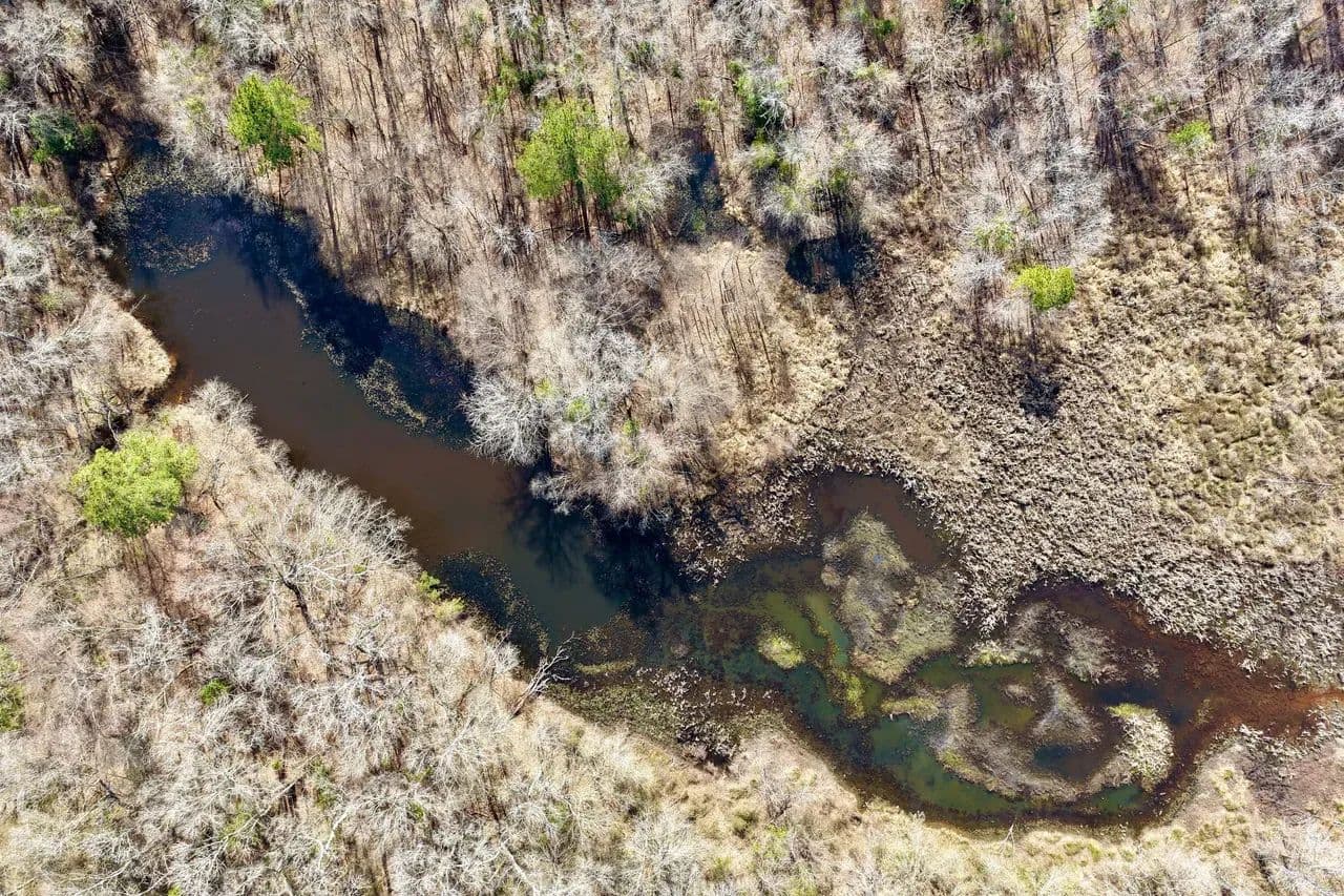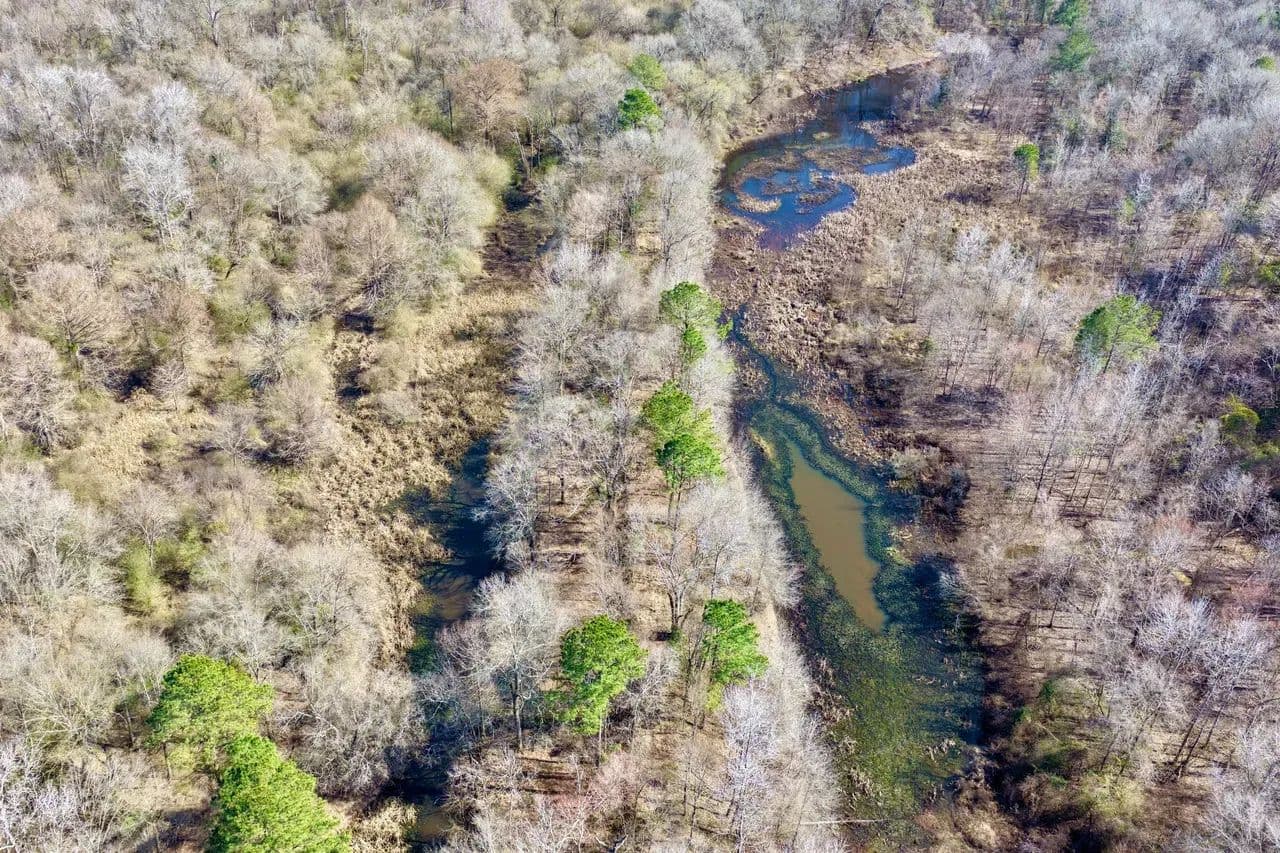 Approximately one-third of the tract lies within the 100-year floodplain where Days Creek meanders through fertile bottomland. Existing natural sloughs within this area already provide excellent waterfowl habitat and hunting setups, suitable for both traditional blinds and flooded timber hunting scenarios. These low areas hold seasonal water, concentrate birds, and offer opportunities for enhancement or active management while preserving natural drainage patterns.