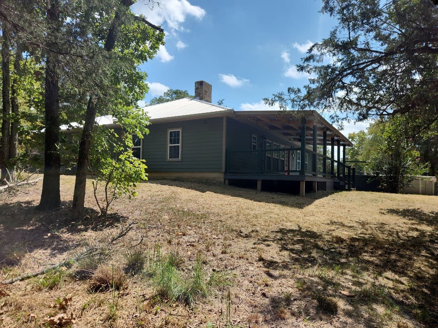 Home in highly desirable area of One Creek in Finley Oklahoma situated secluded on 2 wooded acres. Property is completely fenced with livestock 2"×4"fence to help the uninvited little skunks go somewhere else. Another close access could be made straight from highway if buyer chooses. This custom-built solid home with 3 beds 2 3/4 baths come with some solid built furnishings that were built by builder. Home is 1803 sq' built in 2015. Metal roof with large covered deck and ceiling fans, solid railings and a gate. There's a 2-auto roll door connected garage with concrete drive, with lots of shelving for storage. There's a small front covered porch with double door entry into a gorgeous entry that has Kiamichi River rock embedded in floor. Home has luxury wood look vinyl , ceramic tile throughout and solid wood molding support.Master bath has double sinks. Rural water and electric bill during 100 degree month $170. Above ground pool needs liner but posibilities are endless. Would be a great place for Jacuzzi or a Gazebo. Kitchen is modern and open to dining with all appliances.Granite countertops. Lots of light with modern drop in windows for easy cleaning. Rugs even stay if desired by new owners. Kitchen has a large walk-in pantry. Large stainless steel drop-in sink with sprayer pulls down faucet. Stainless appliances all come with the kitchen. A BIG bonus room that goes out to covered deck has lots of possibilities. Could be a game room or a 4th guestroom. Recessed lighting and modern lighting throughout the home. The 3/4 bath with shower is easily accessible from utility room to outside side door and to kitchen area. Nice floorplan. Lots of woods, wildlife and solitude.Deer, Turkey and all native species spotted on this property. Don't wait. Priced right with everything you could want. Please call Kevin or Debra Gann team for personal viewing. 580-271-0449 or 580-298-7277.