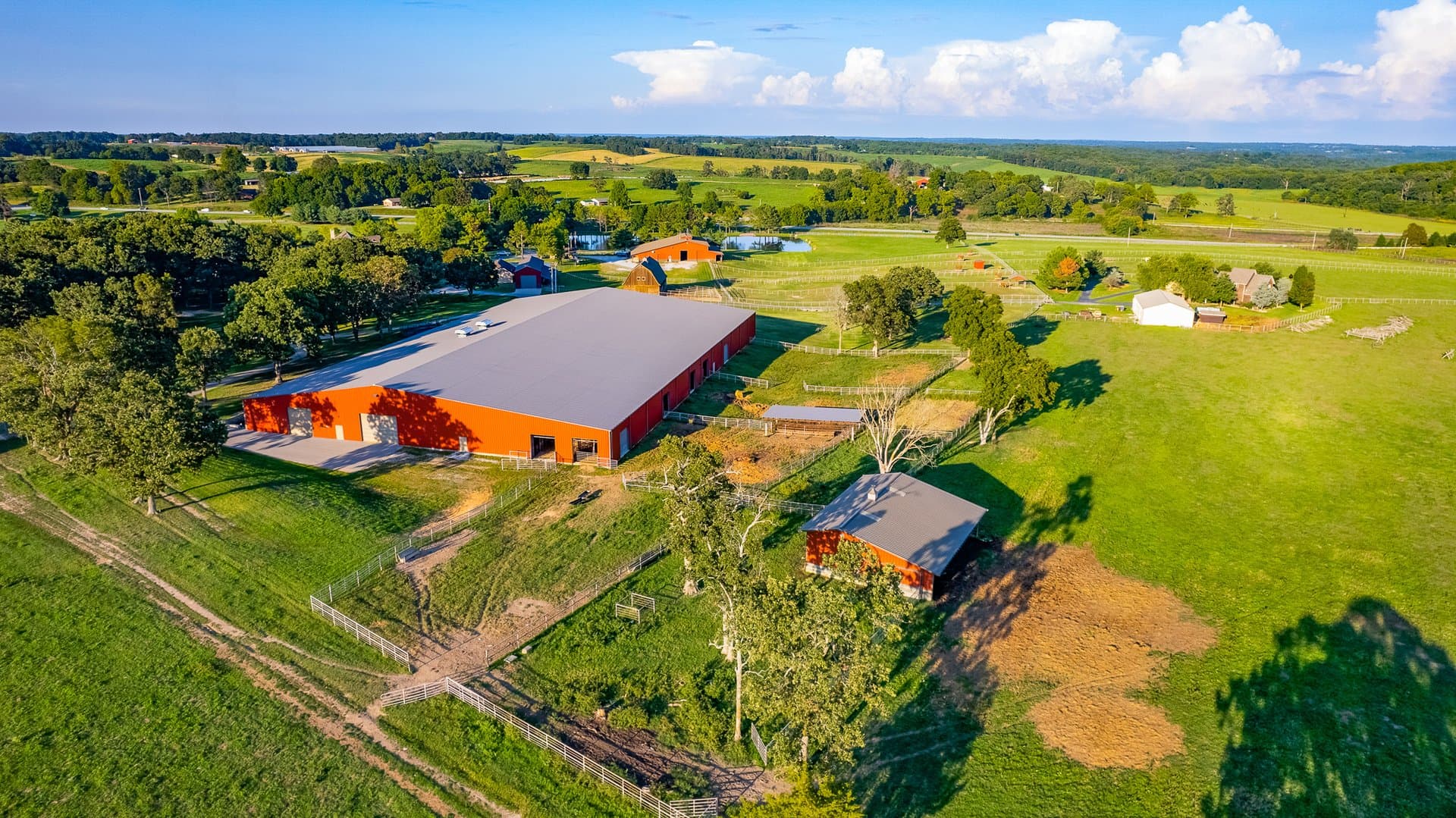 The Double Down Ranch is an exquisite luxury equestrian property located in the beautiful rolling hills of Missouri. Entering through the grand entrance, it becomes apparent you are in a special place. This incredible property showcases world-class craftsmanship, pristinely manicured grounds, and methodically planned equestrian facilities. The main residence, riding arena, barns, caretaker home, and equestrian facilities are on 164 acres.